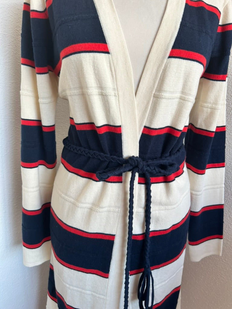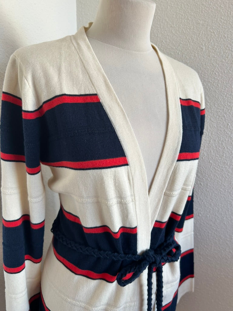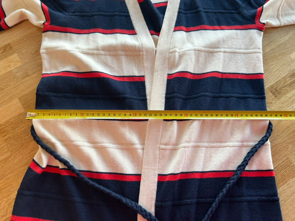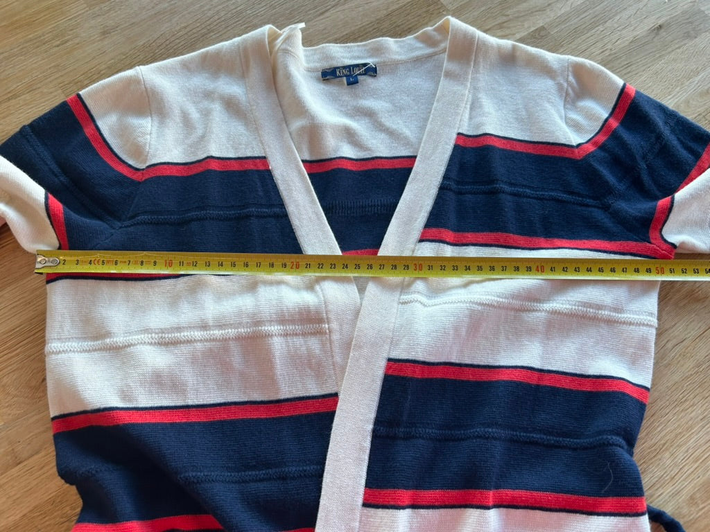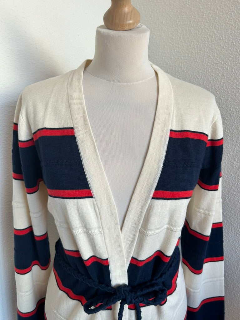 - Creme wit met rood en donkerblauw/marine blauw gestreept patroon