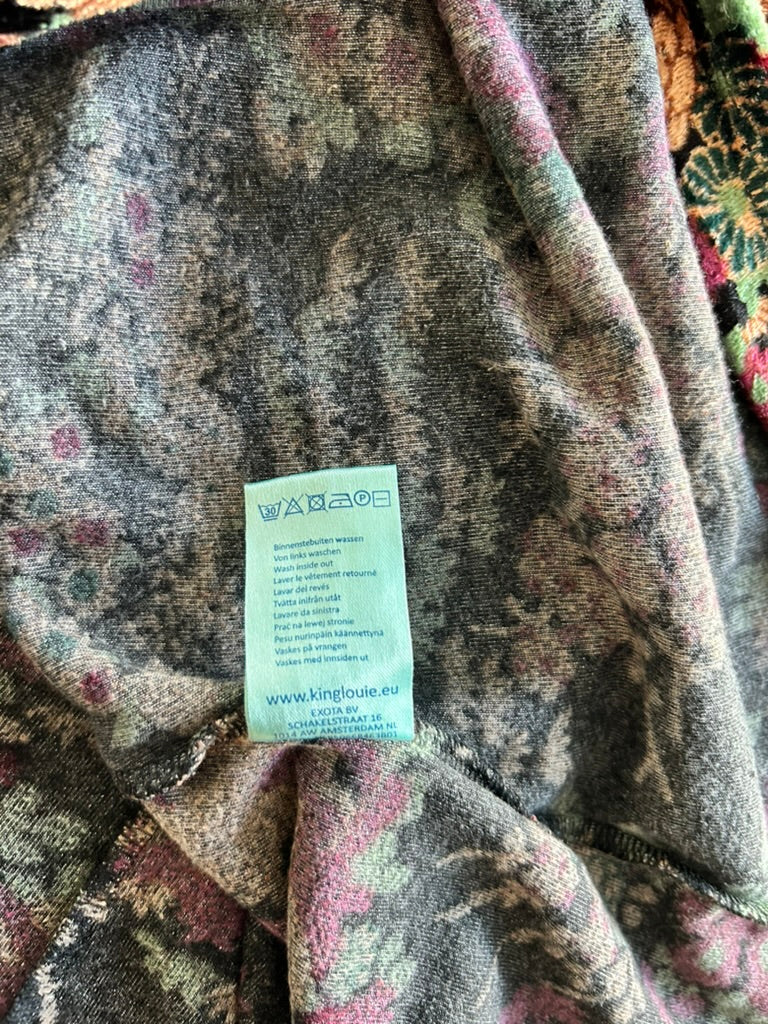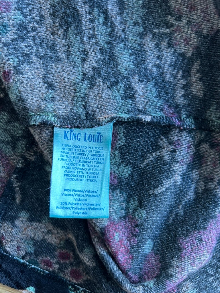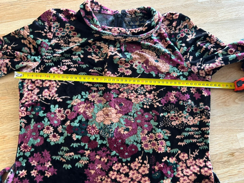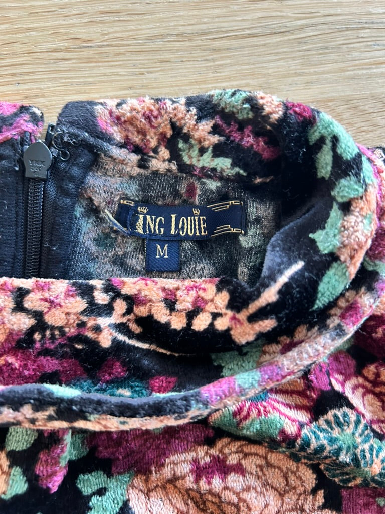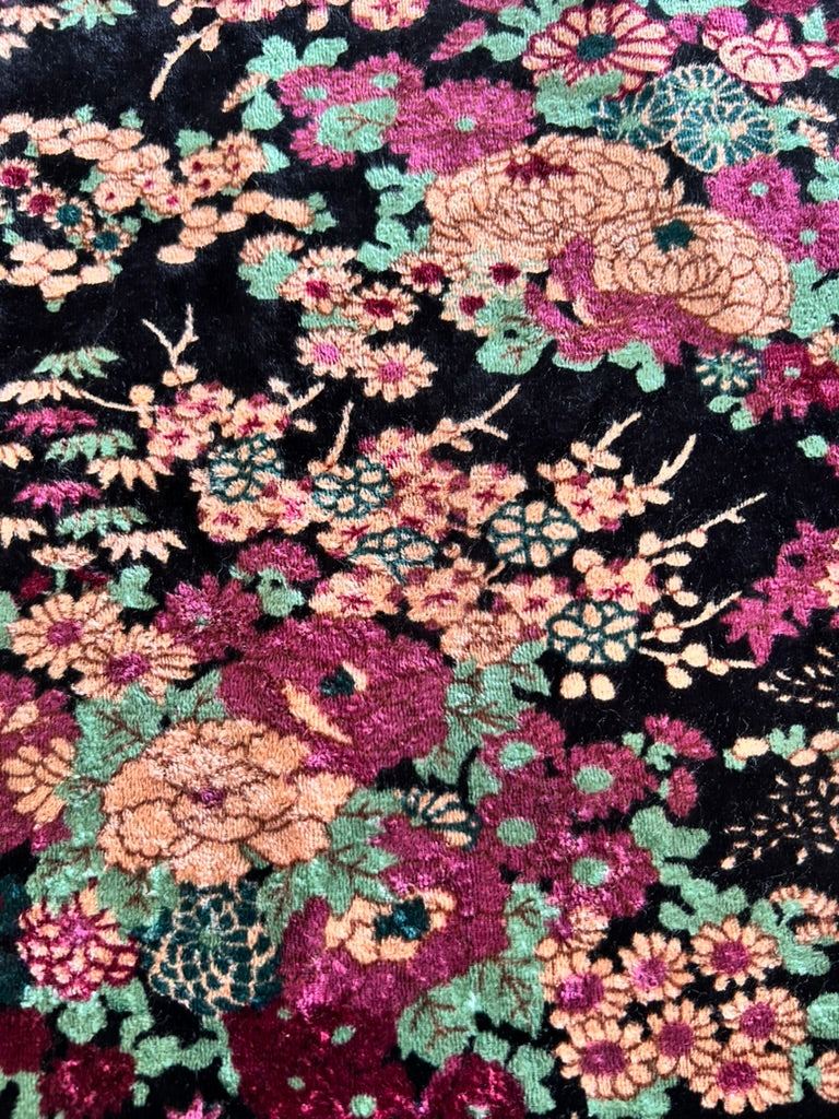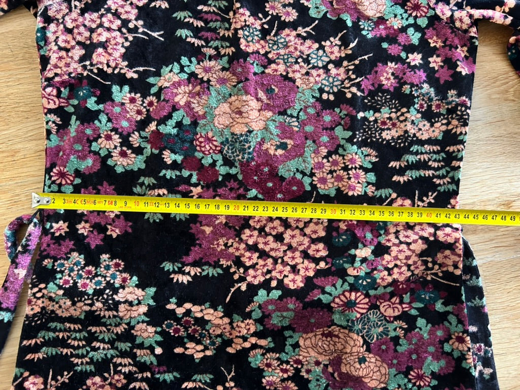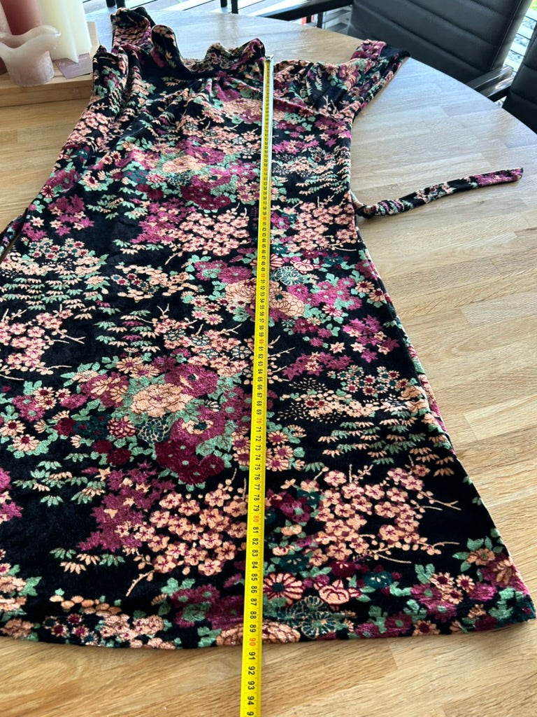 - Leuke jurk in zwart met Aziatische retro bloemen print in roze paars blauw wit en mosterd geel