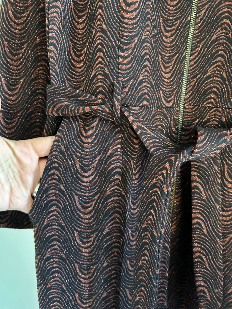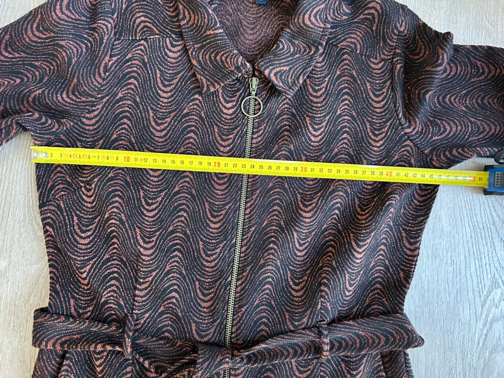 - Zwart met grafische glitter en glans print in koper/brons/bruin