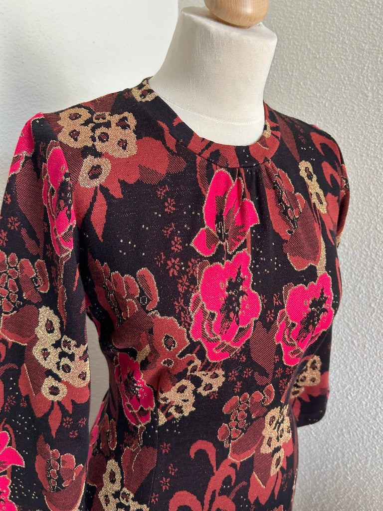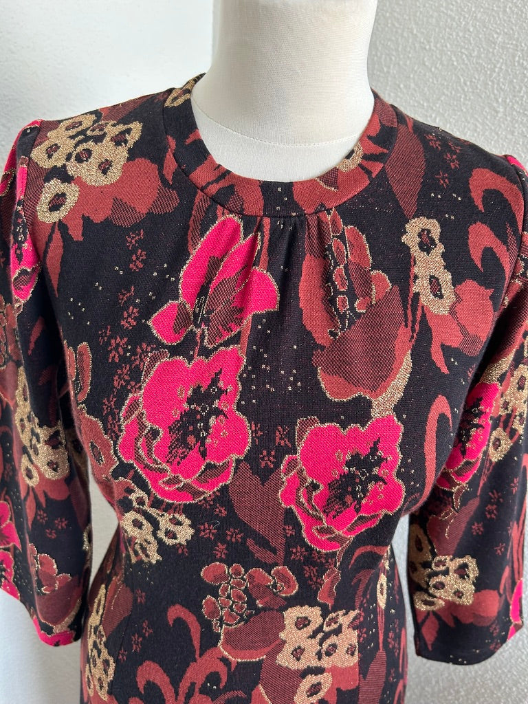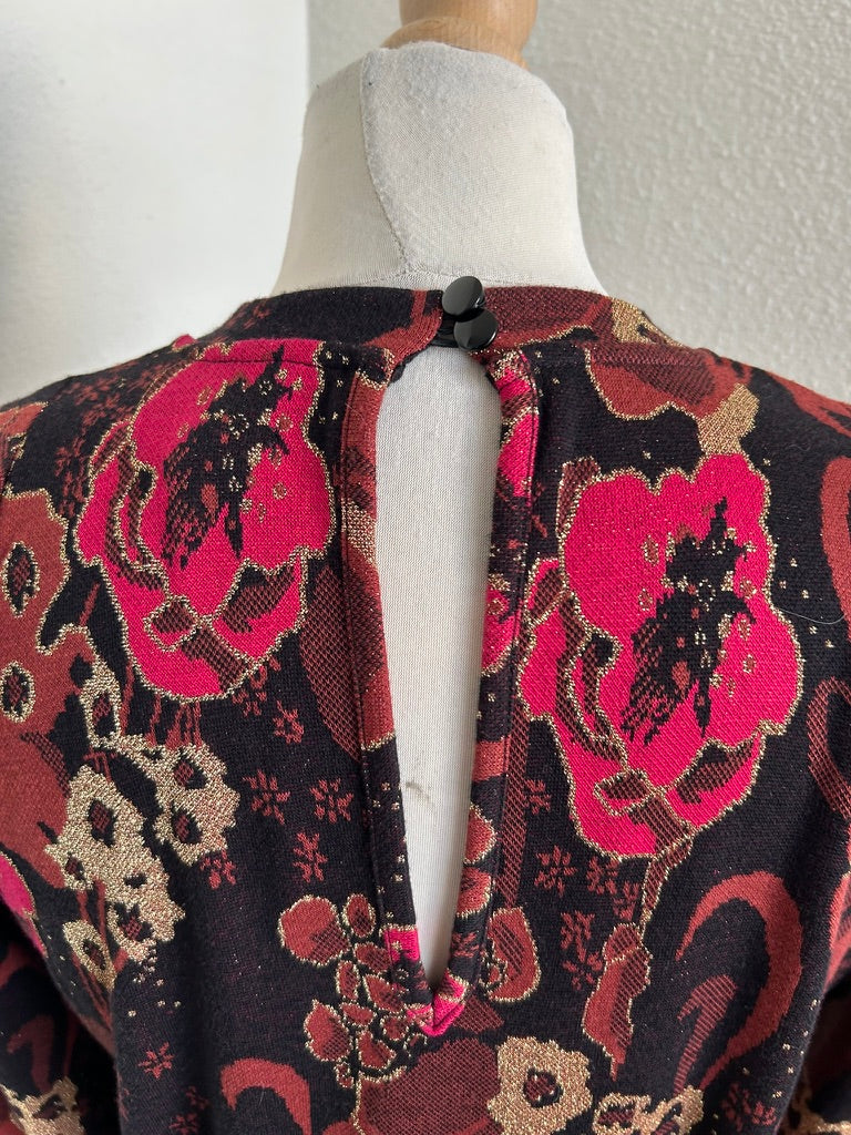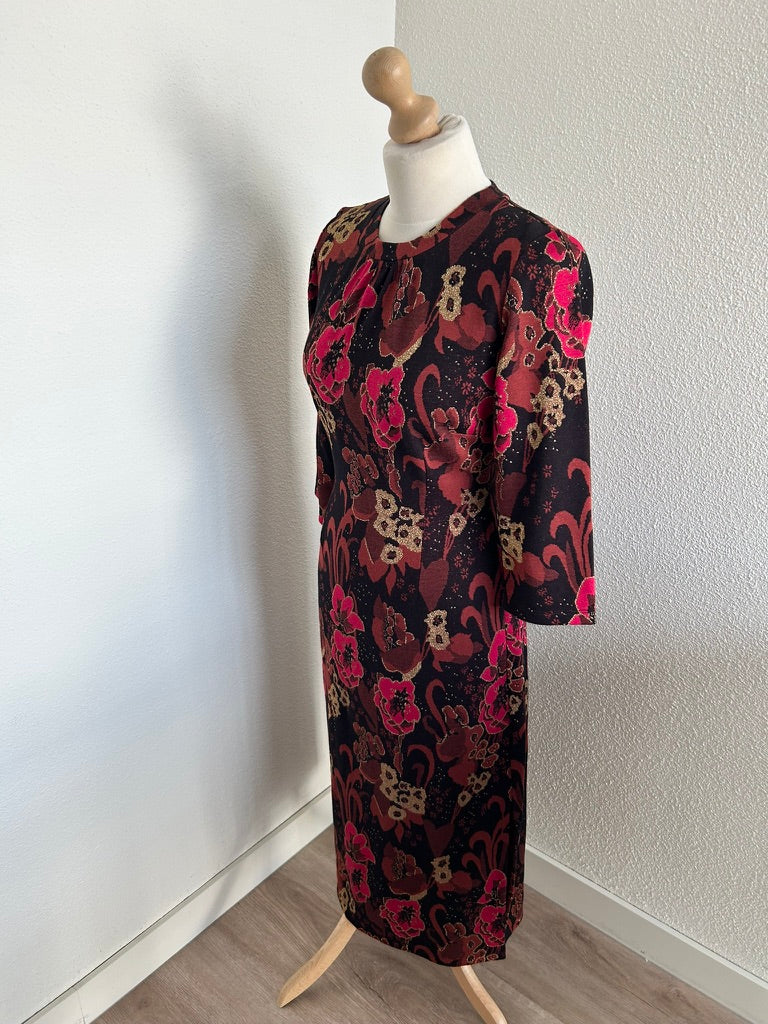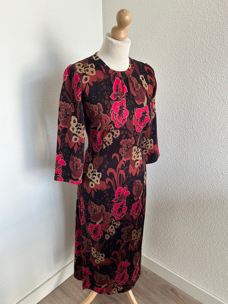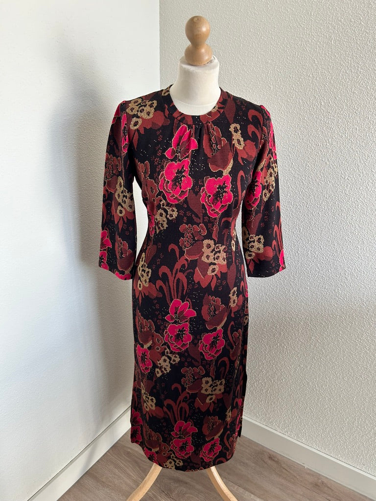 - Leuke halslijn met kraagje, lange mouwen, open rug met knopen, getailleerd model, midi lengte