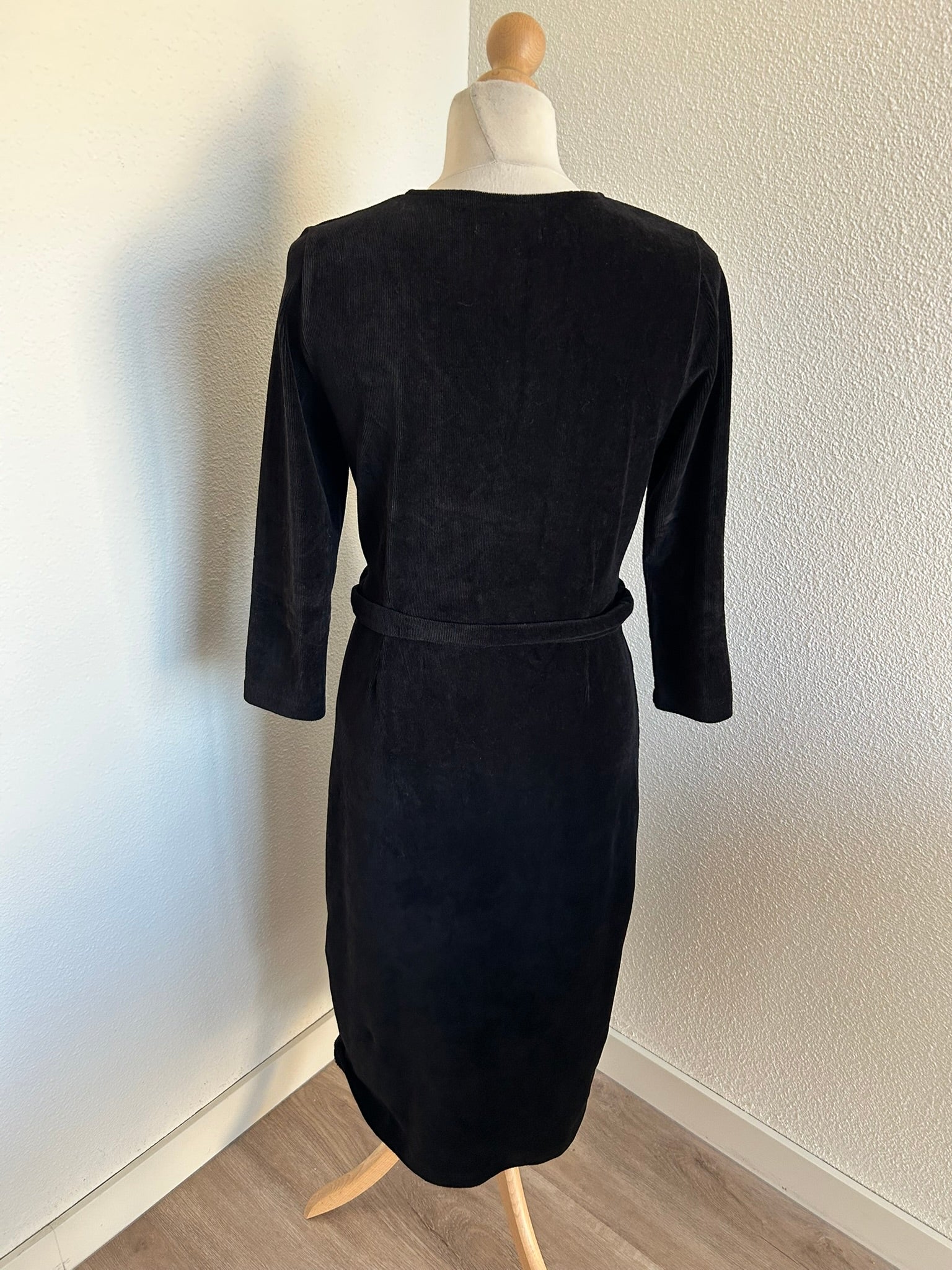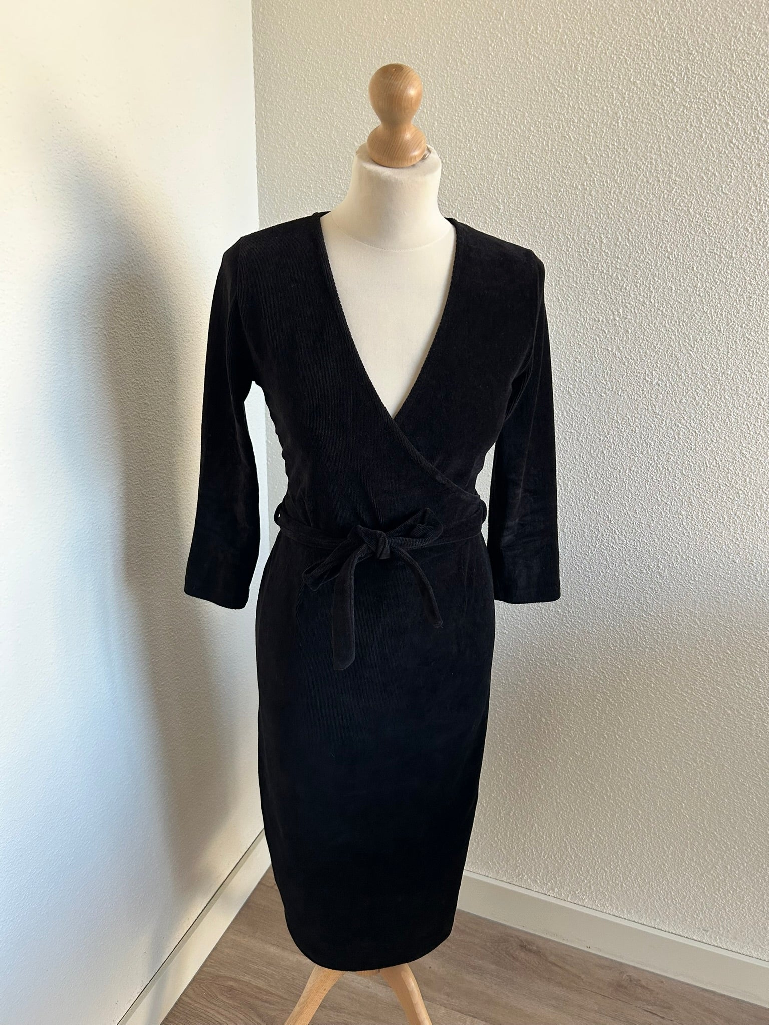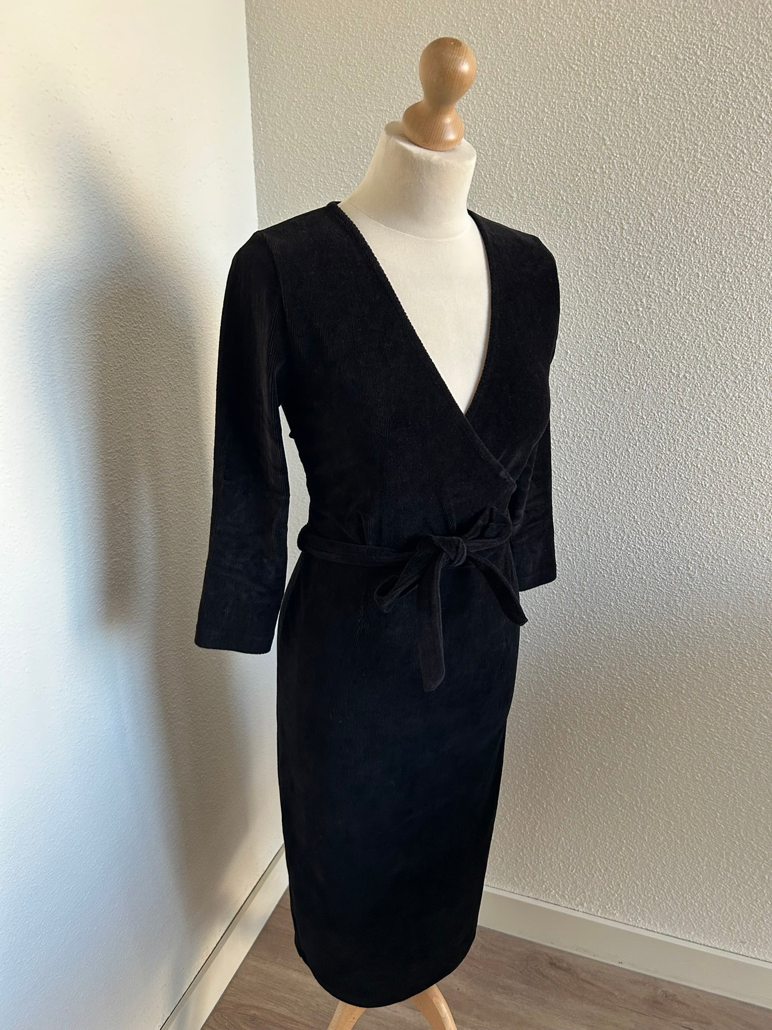 - Mooie halslijn met overslag op de borst, 3/4 mouwen, getailleerd door brede tailleband en knooplint