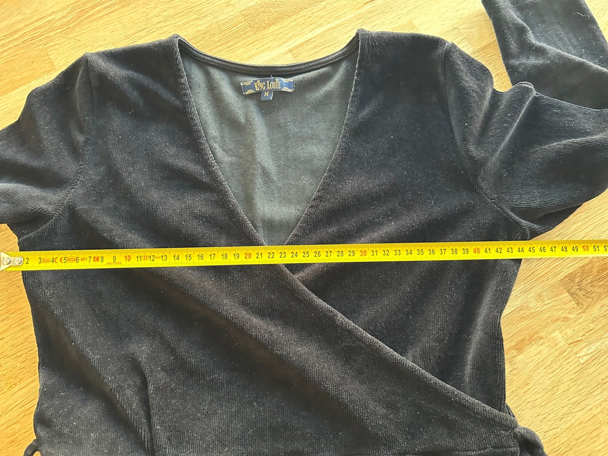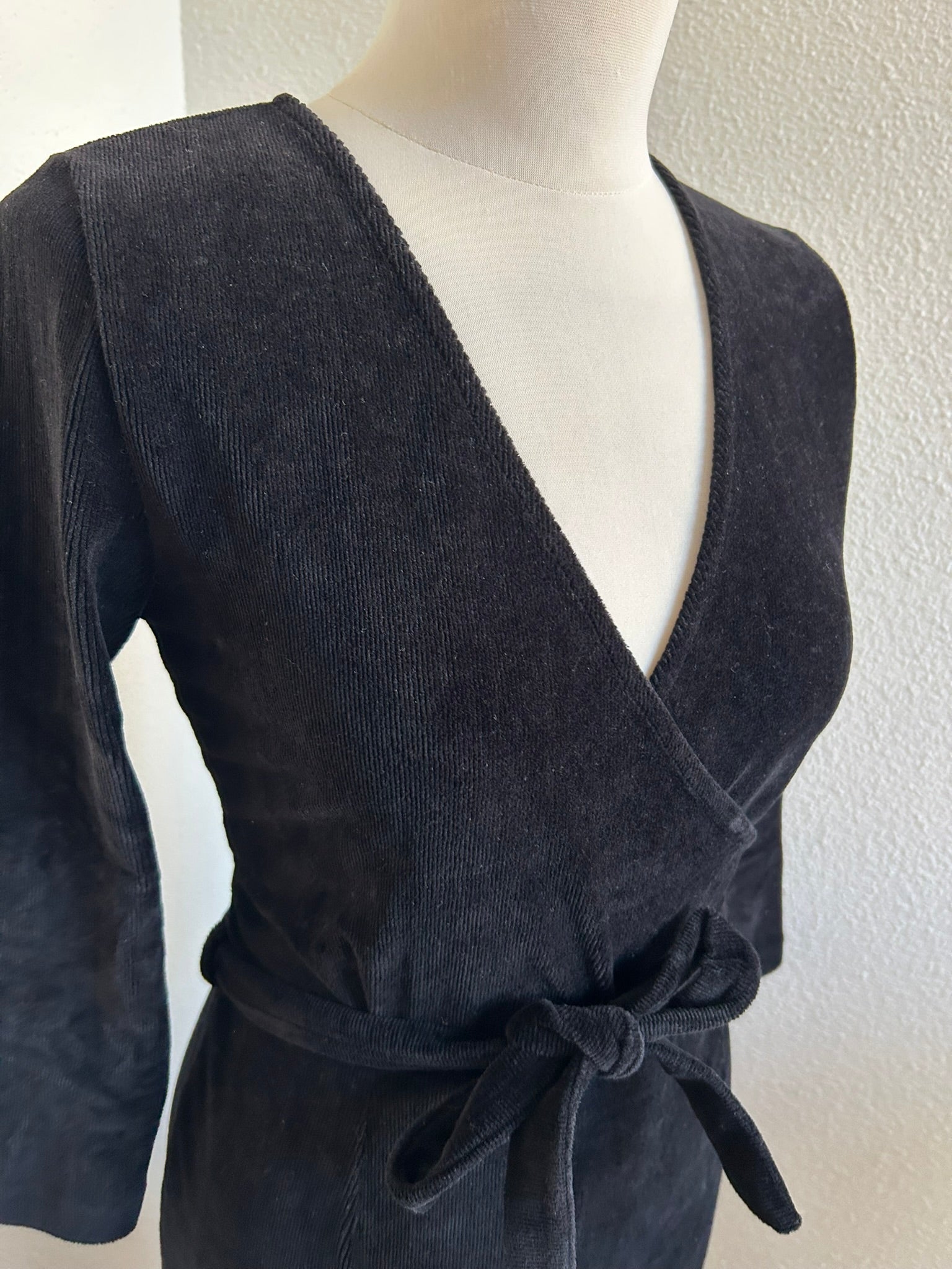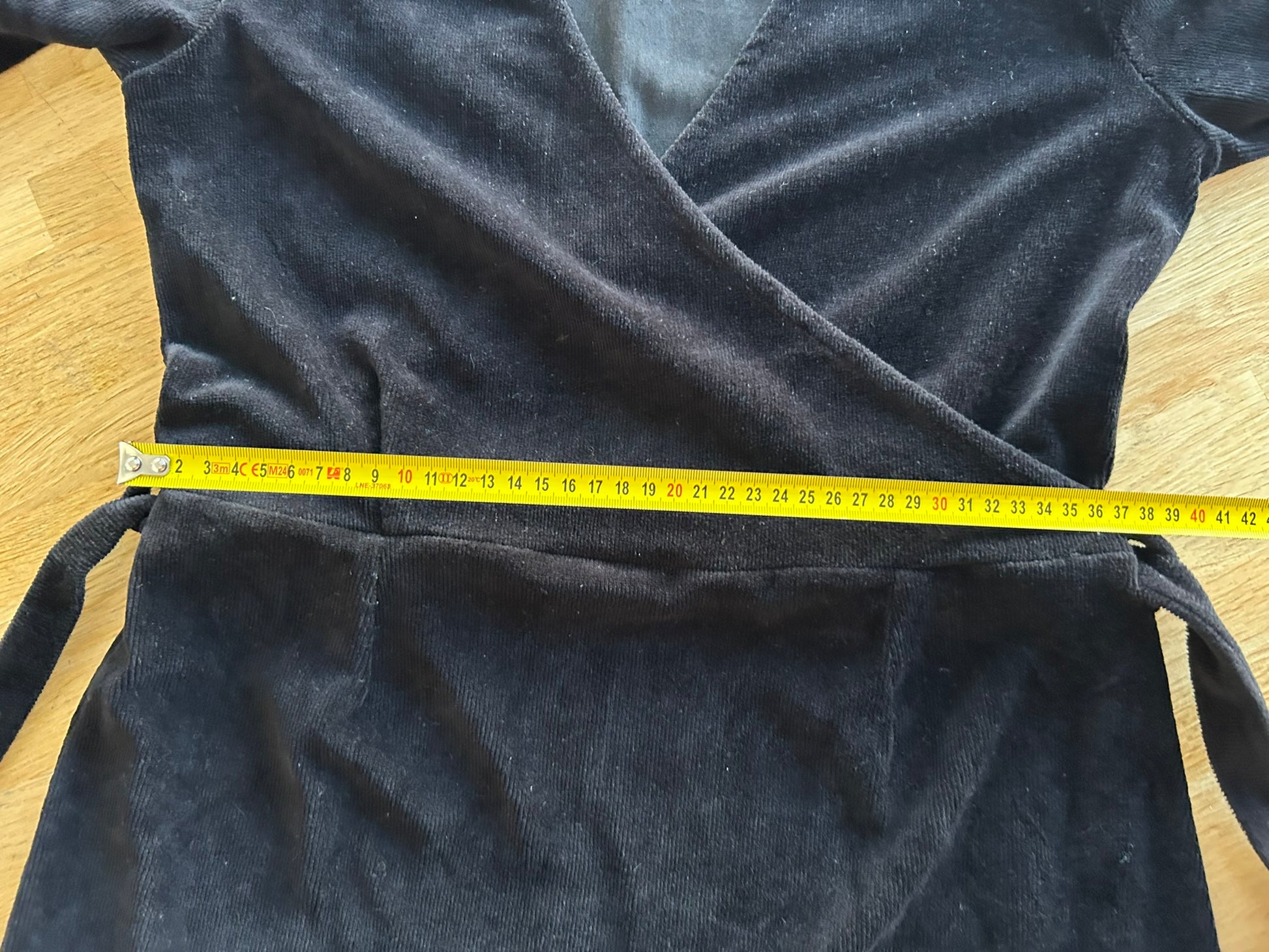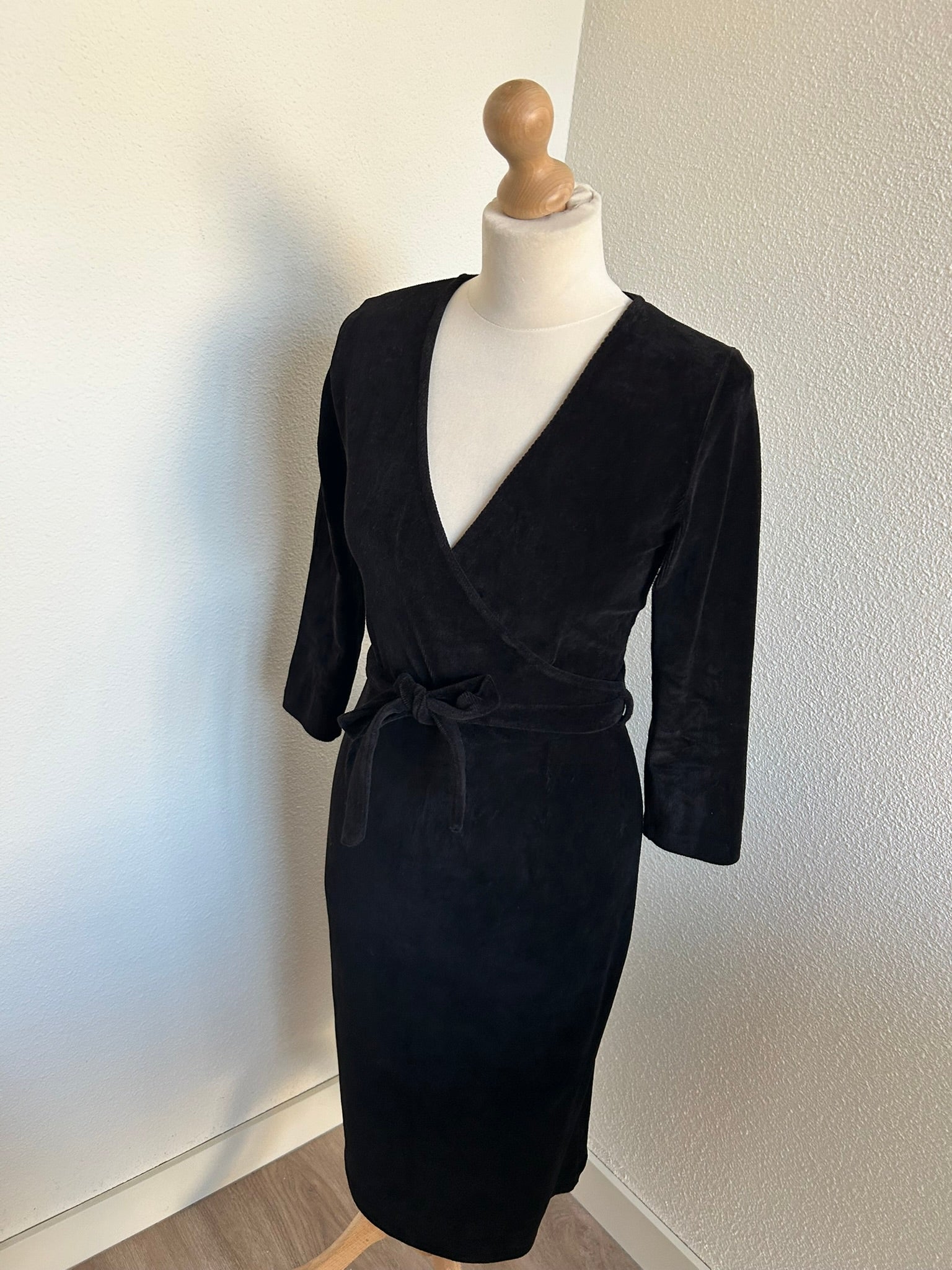 - Mooie halslijn met overslag op de borst, 3/4 mouwen, getailleerd door brede tailleband en knooplint