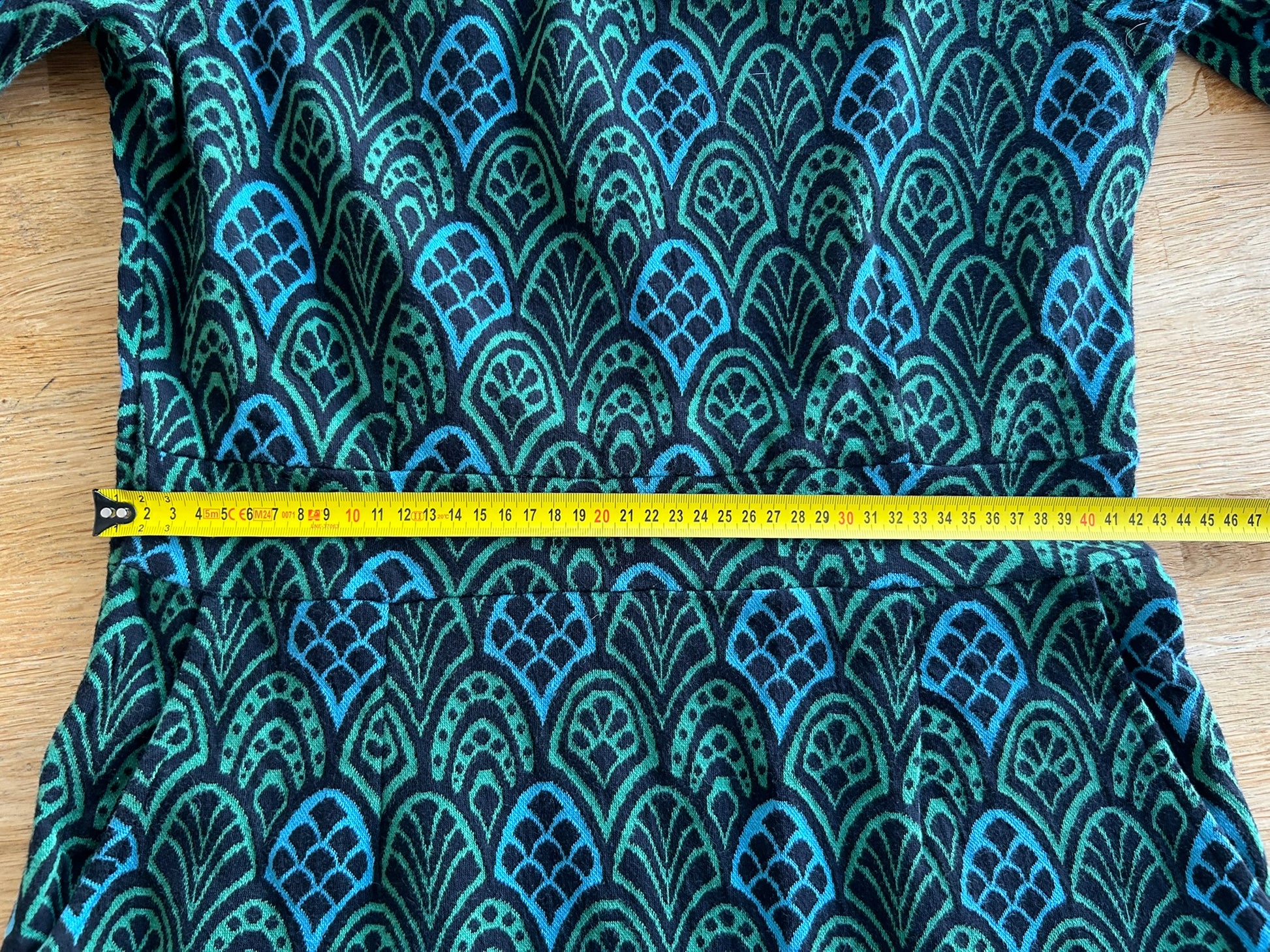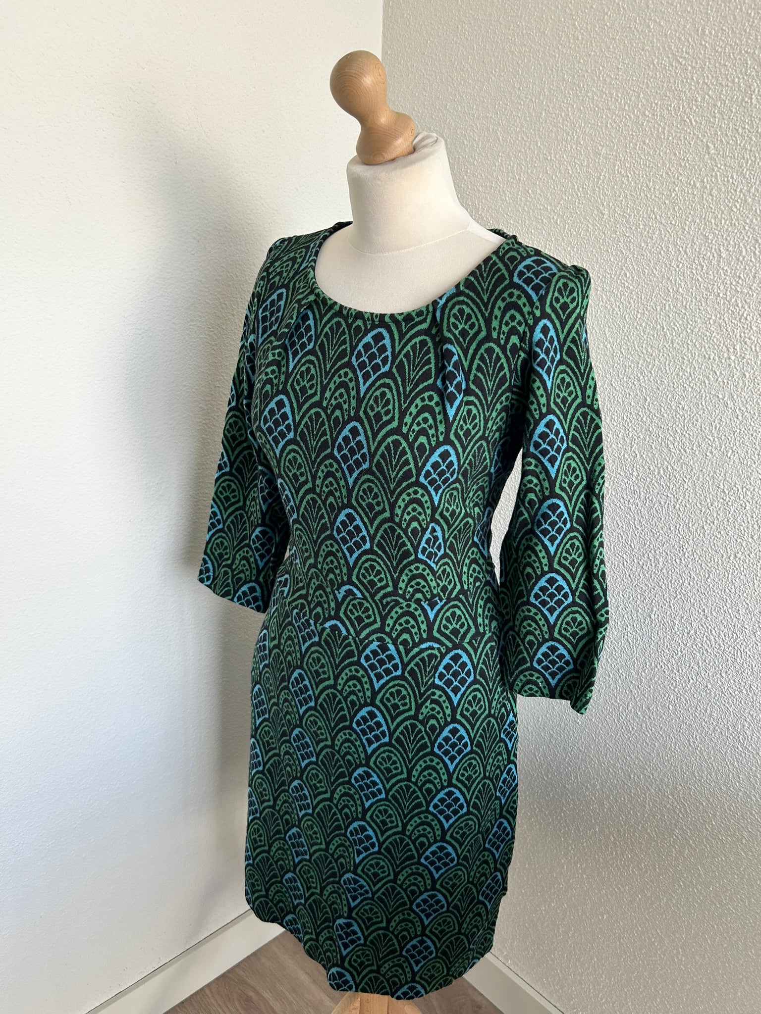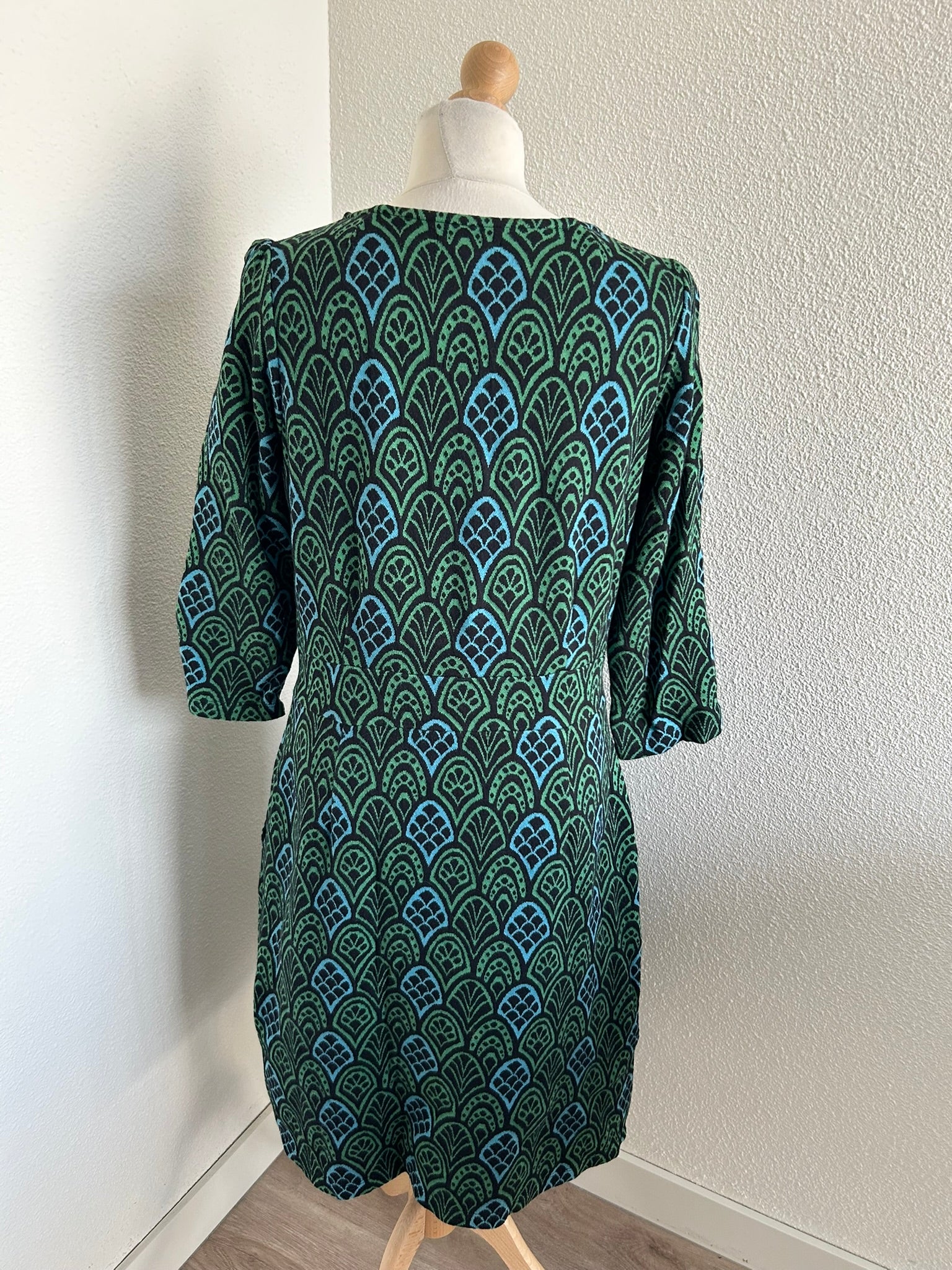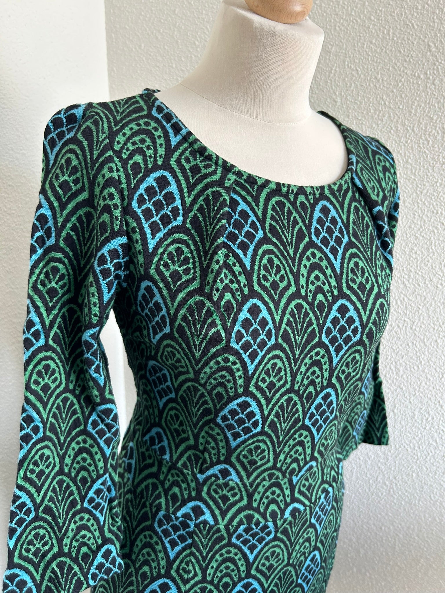 - Leuke jurk in Groen blauw wit en zwarte retro print