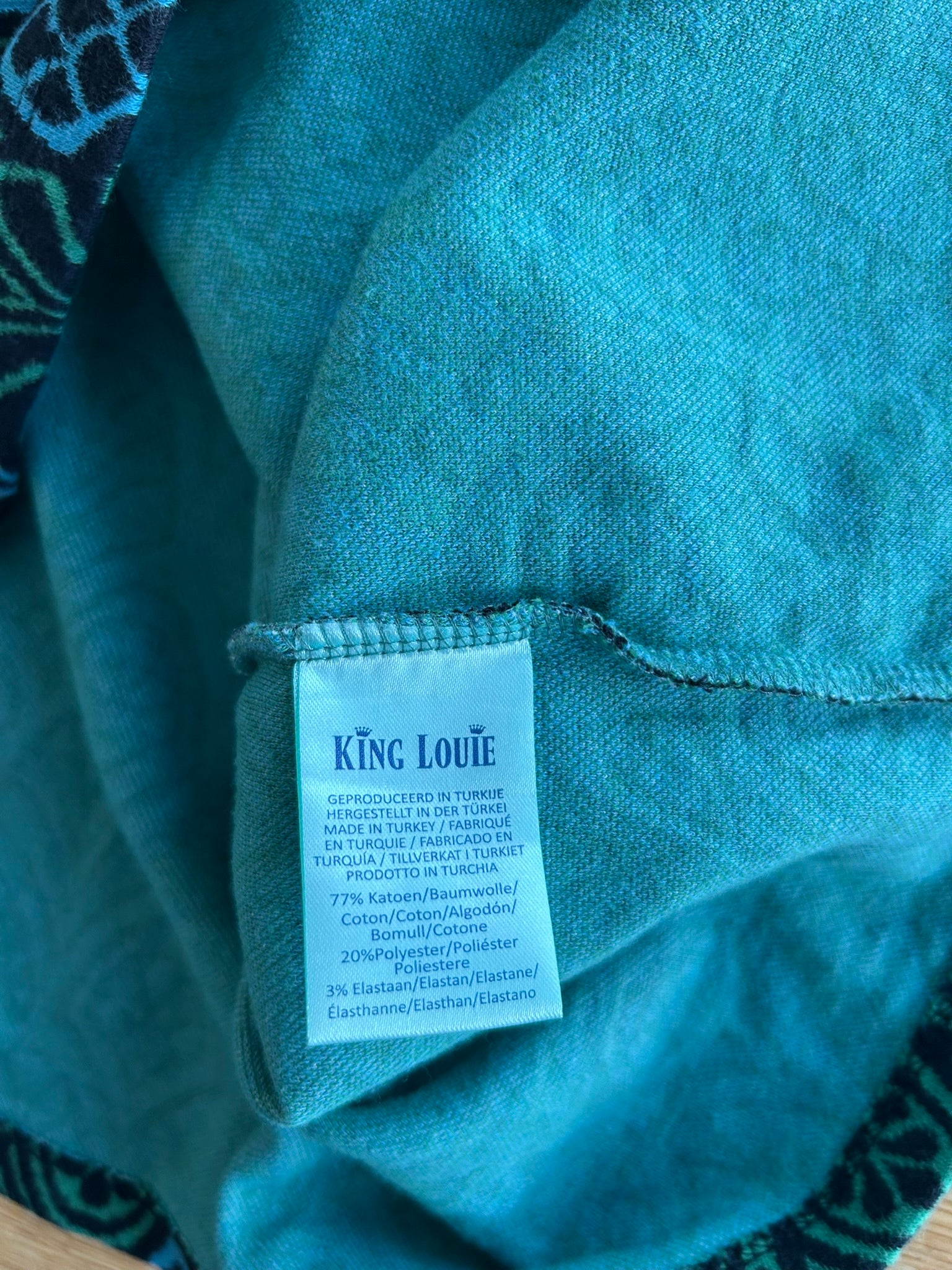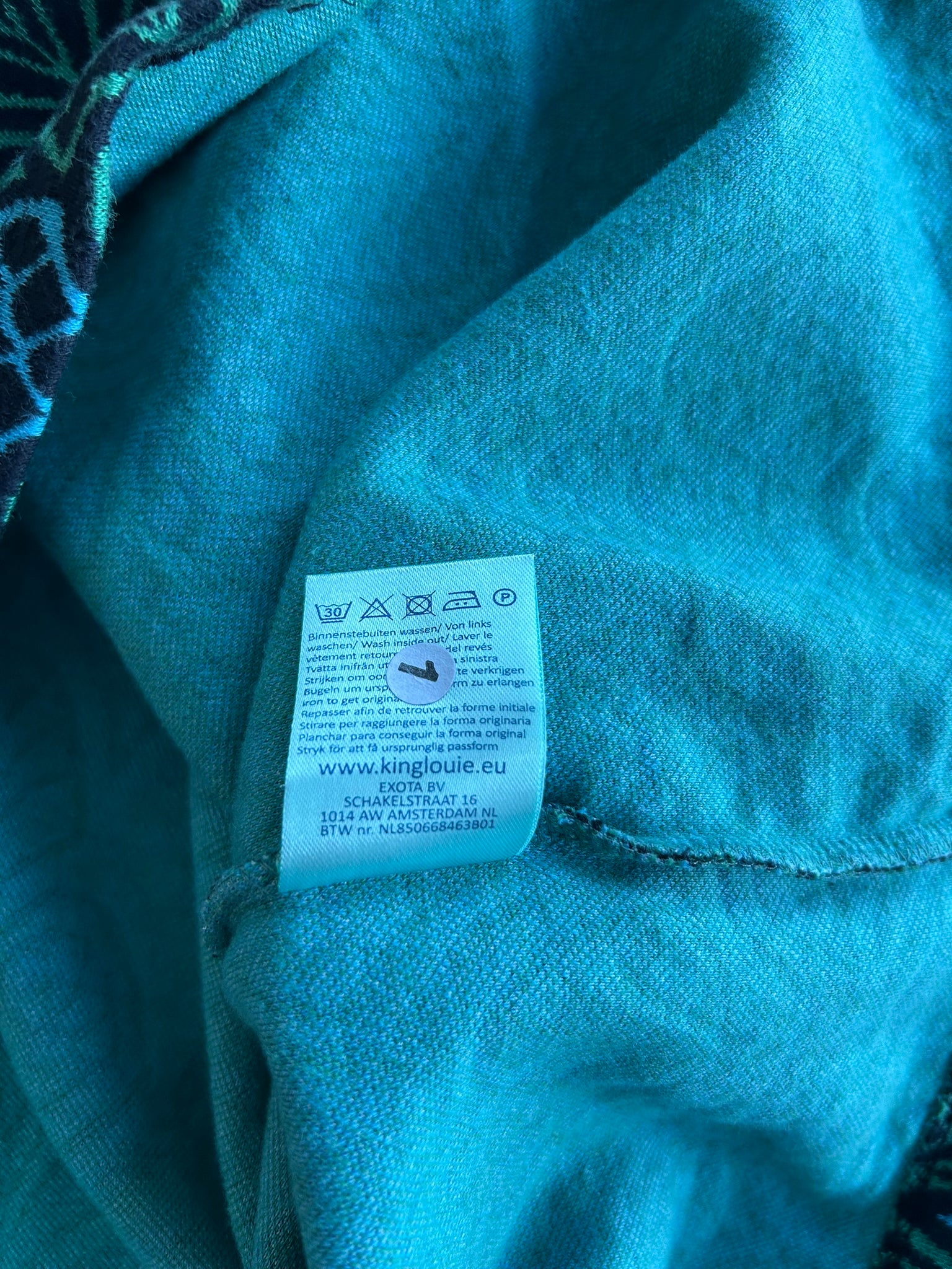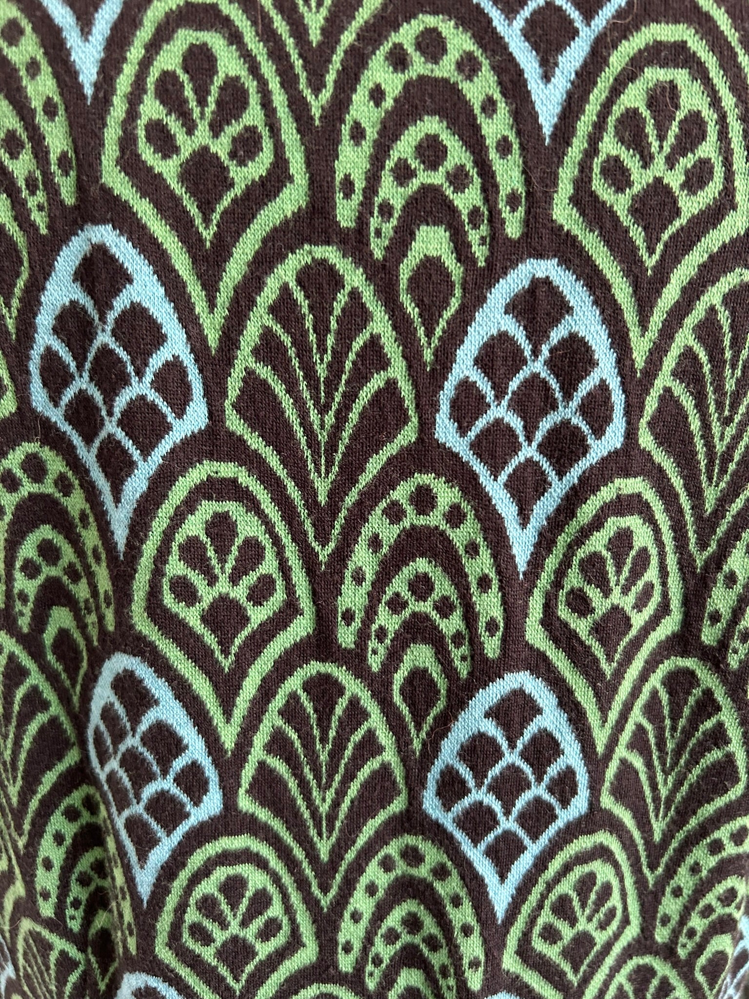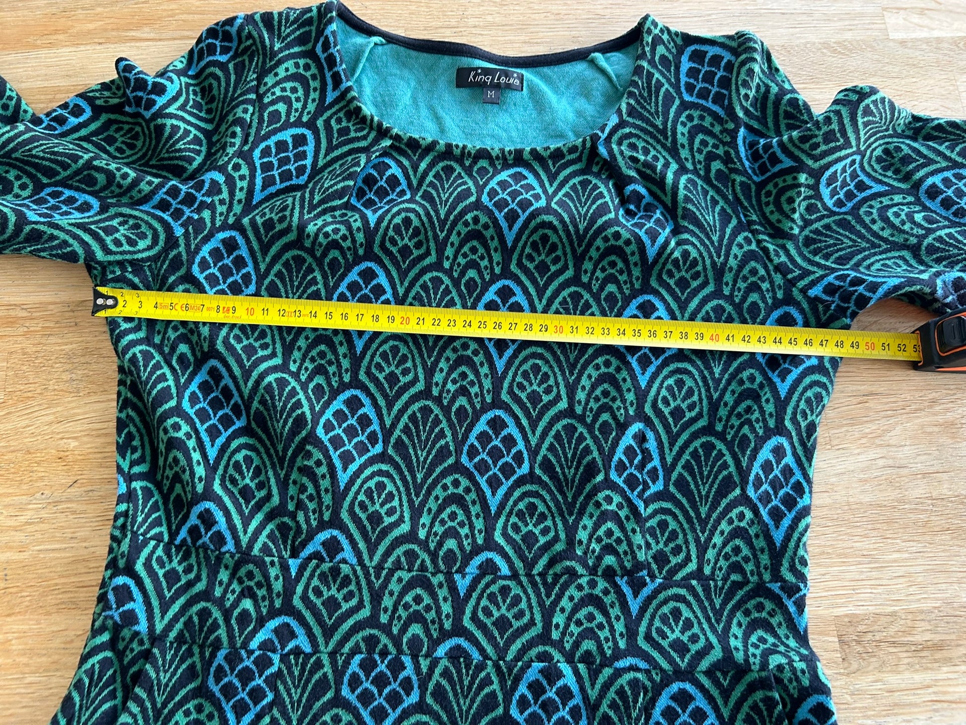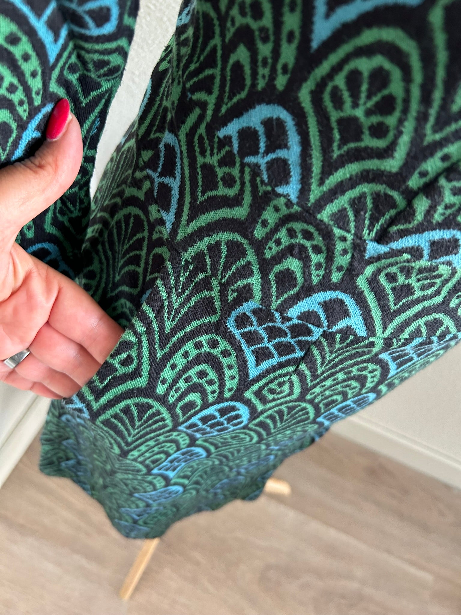 - Leuke jurk in Groen blauw wit en zwarte retro print