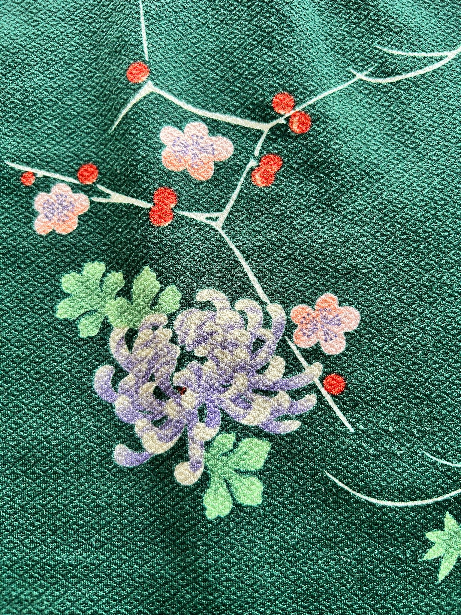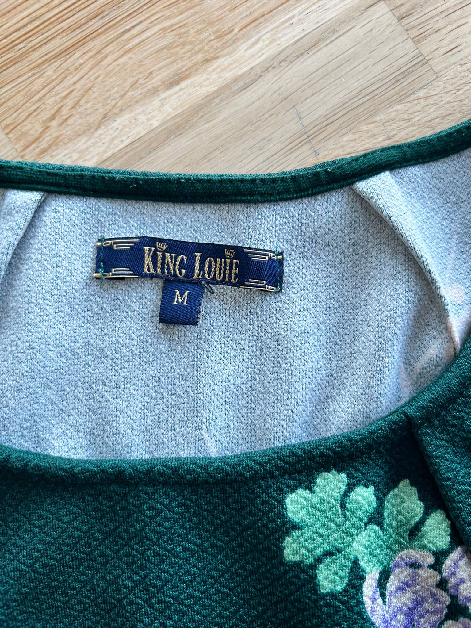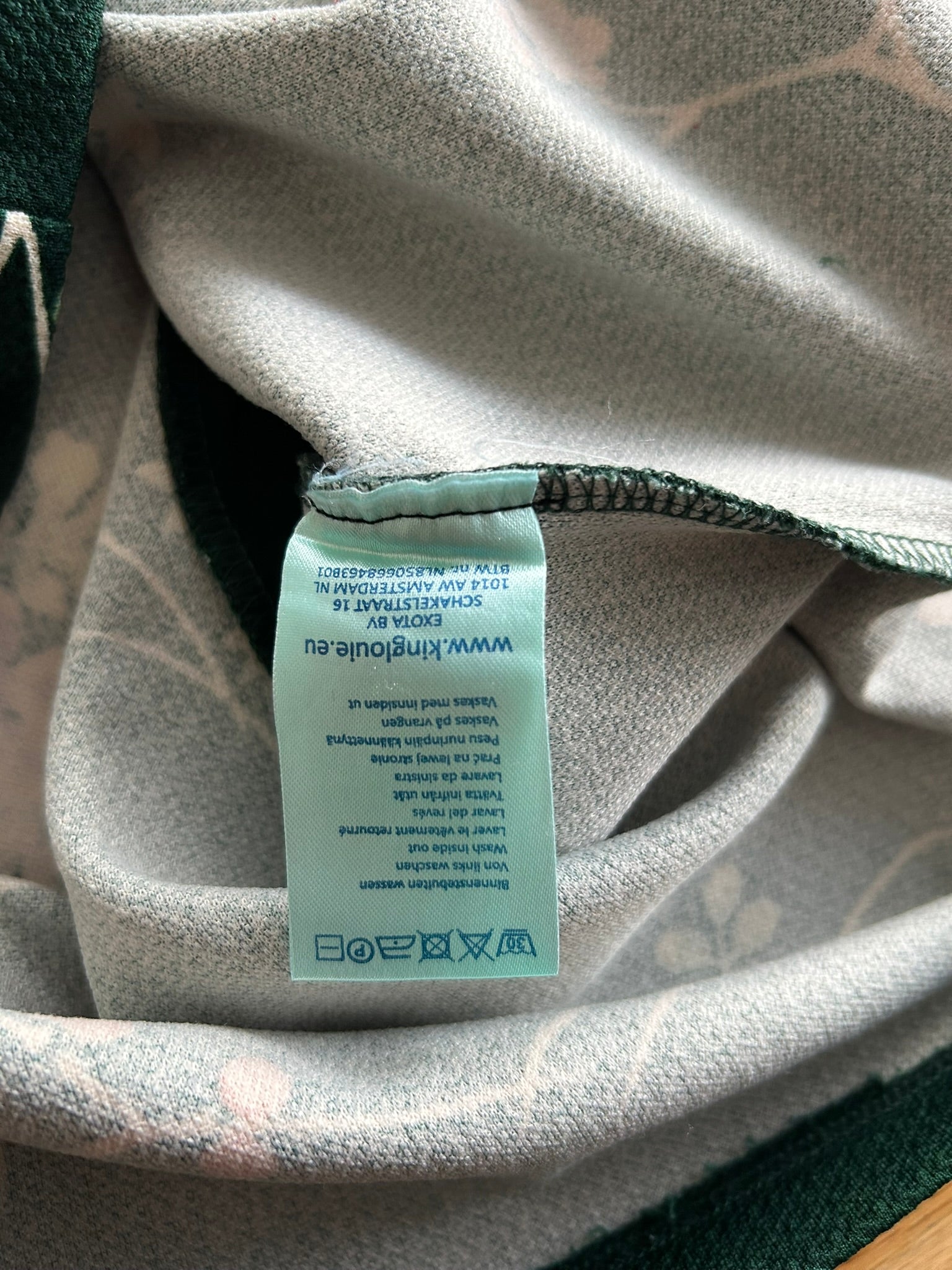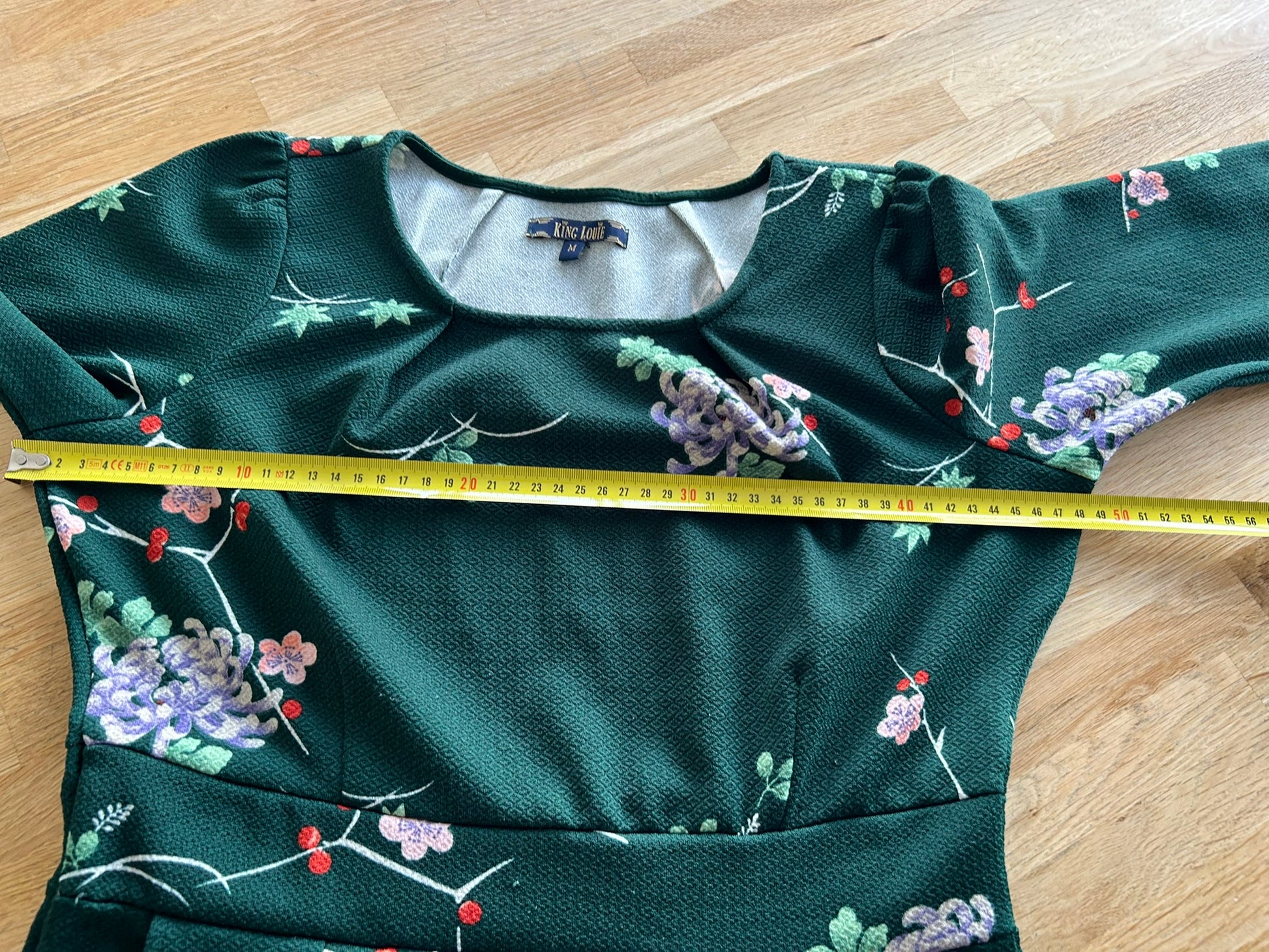 - Leuke jurk in donkergroen met bloemen print in blauw wit en paars rood roze