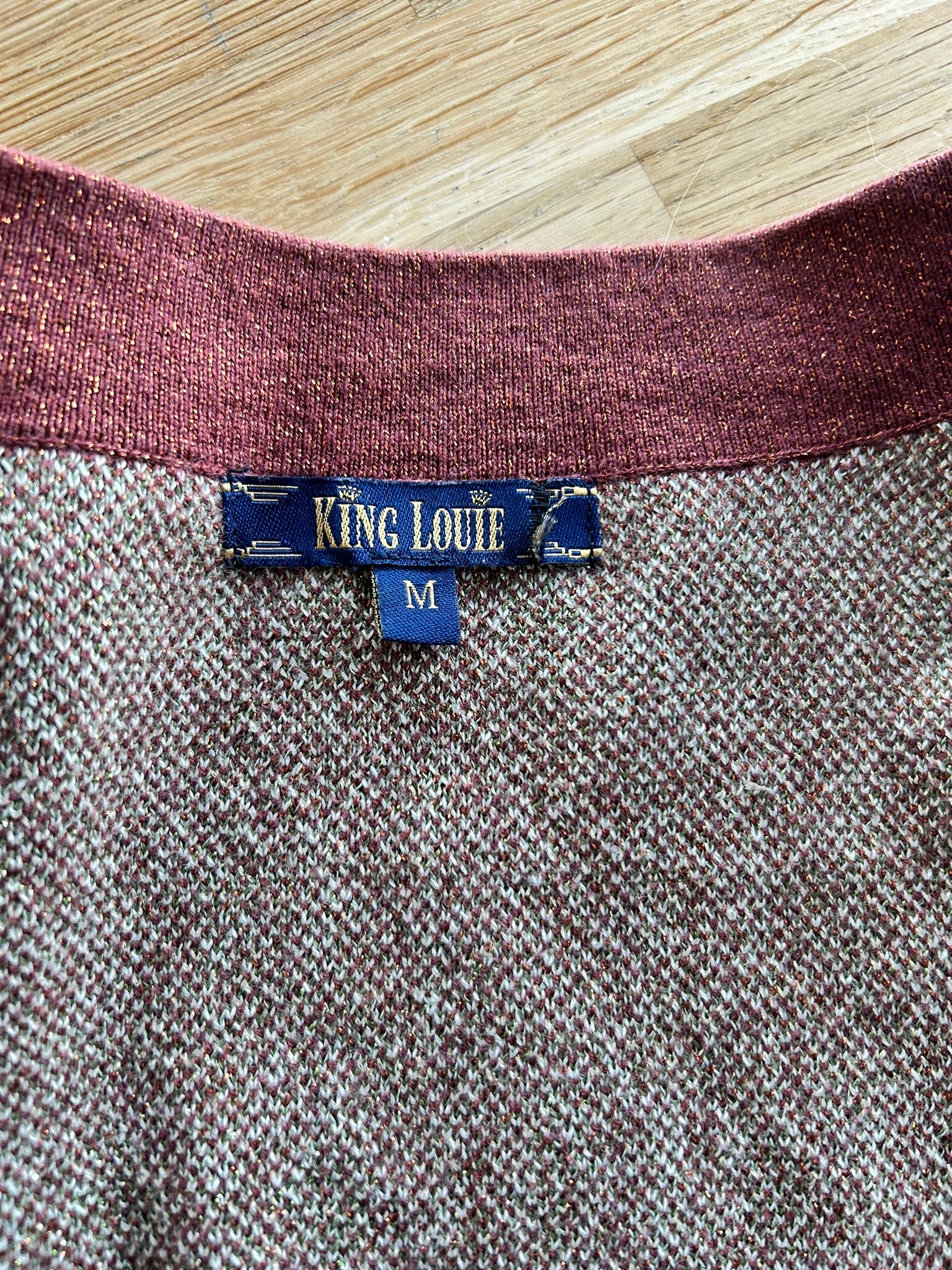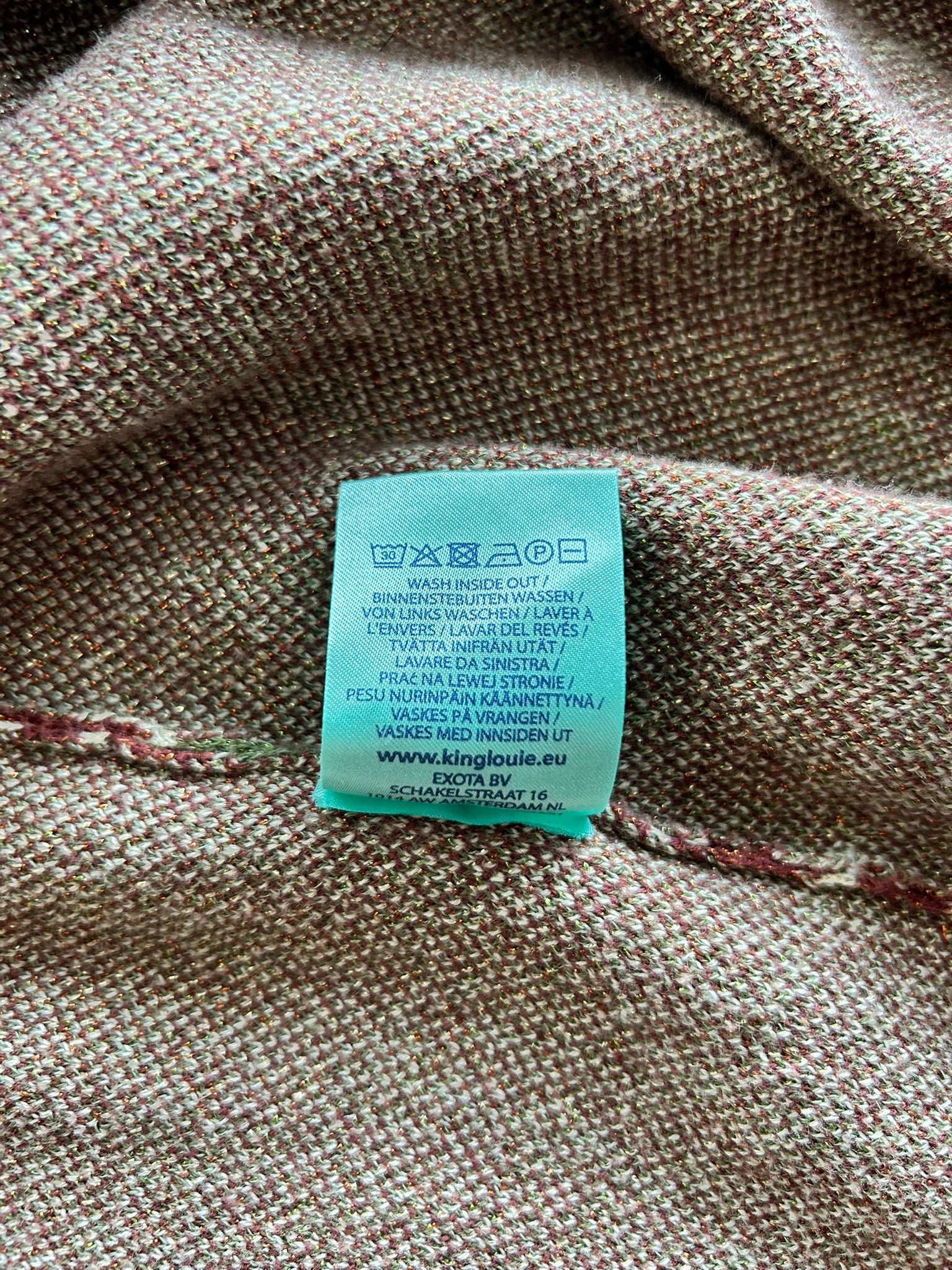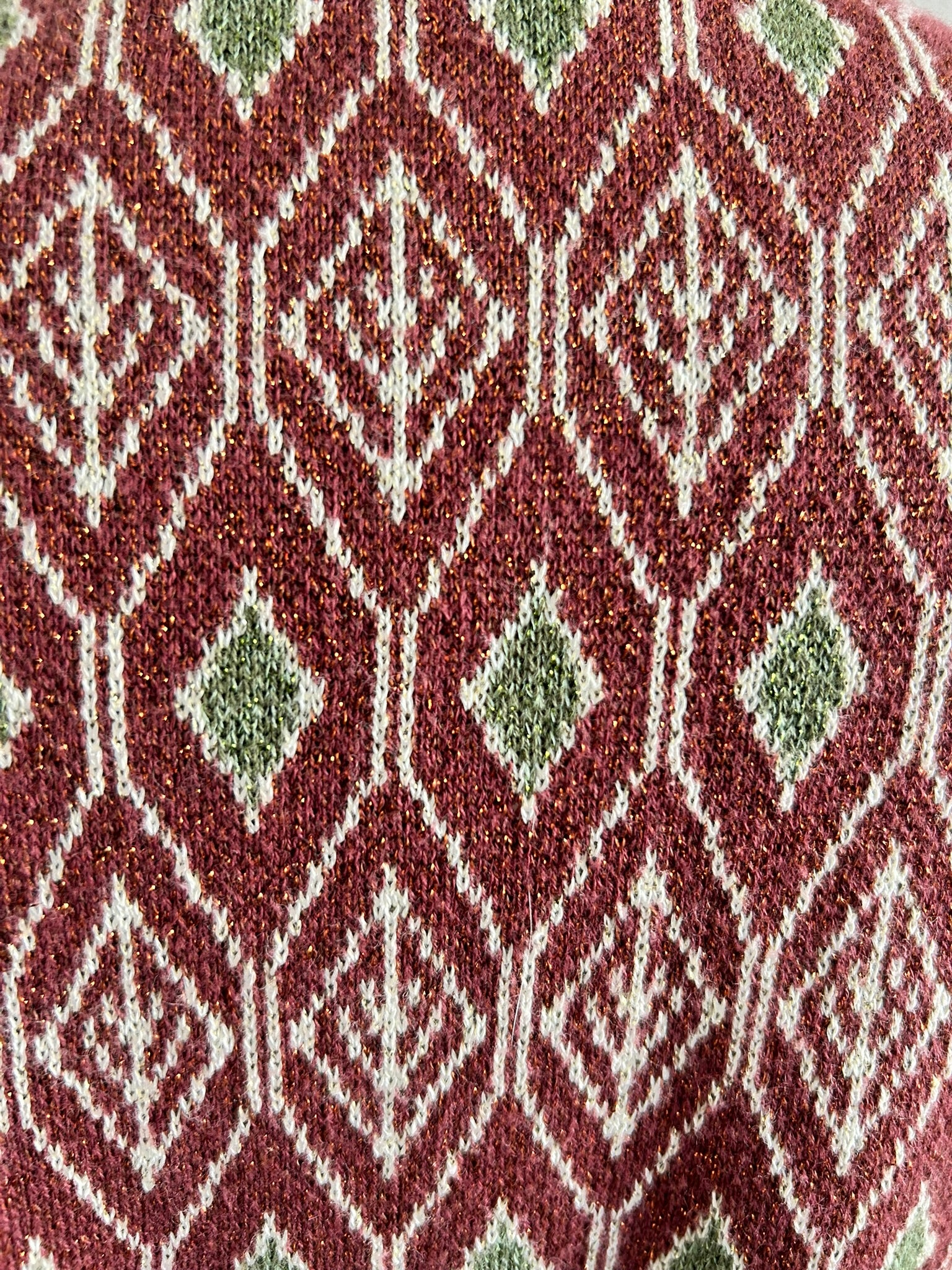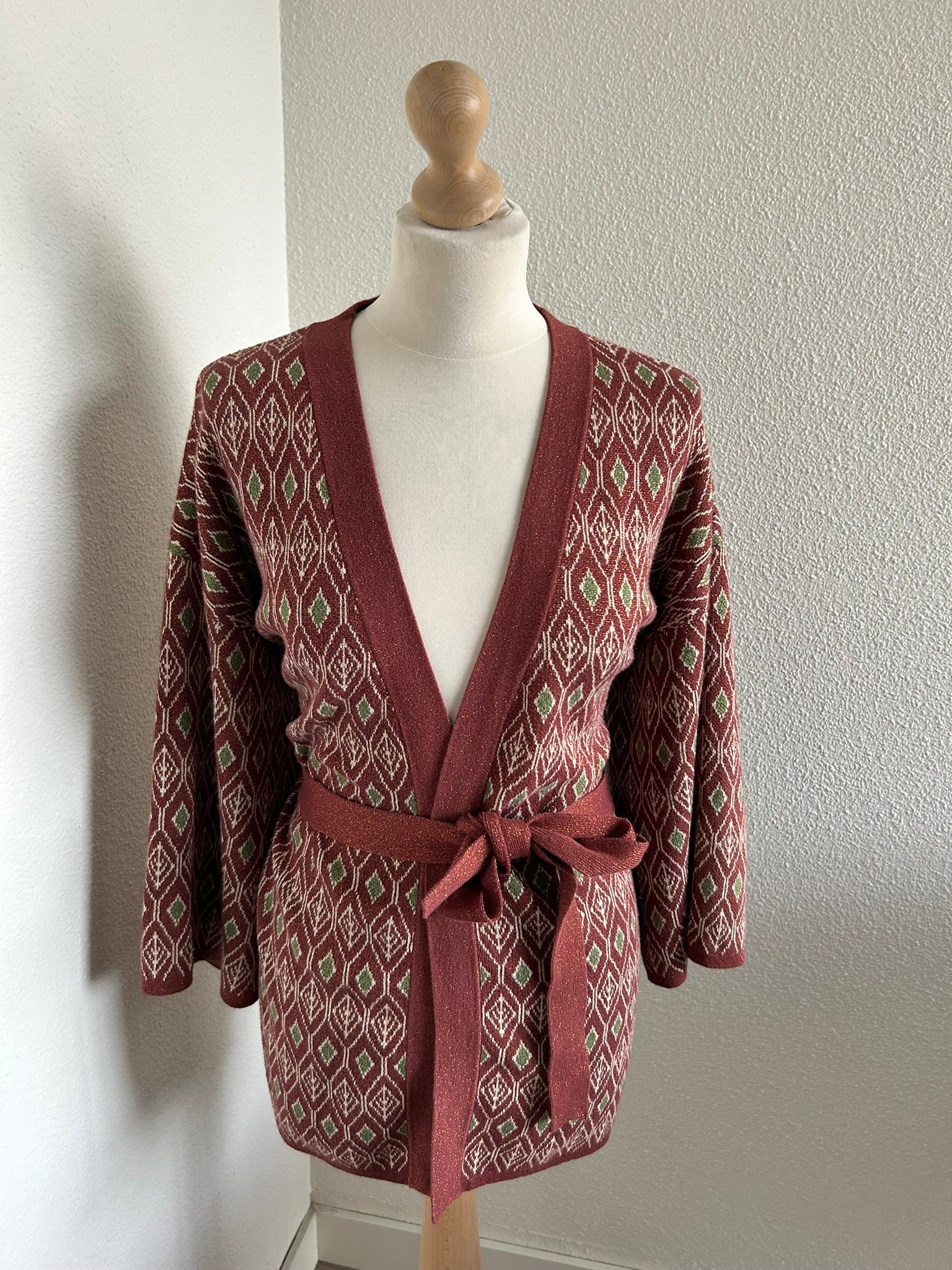 - Leuk vest met glitter allo-over in roestbruin, karamel met creme wit en groene beetje geruit retro patroon