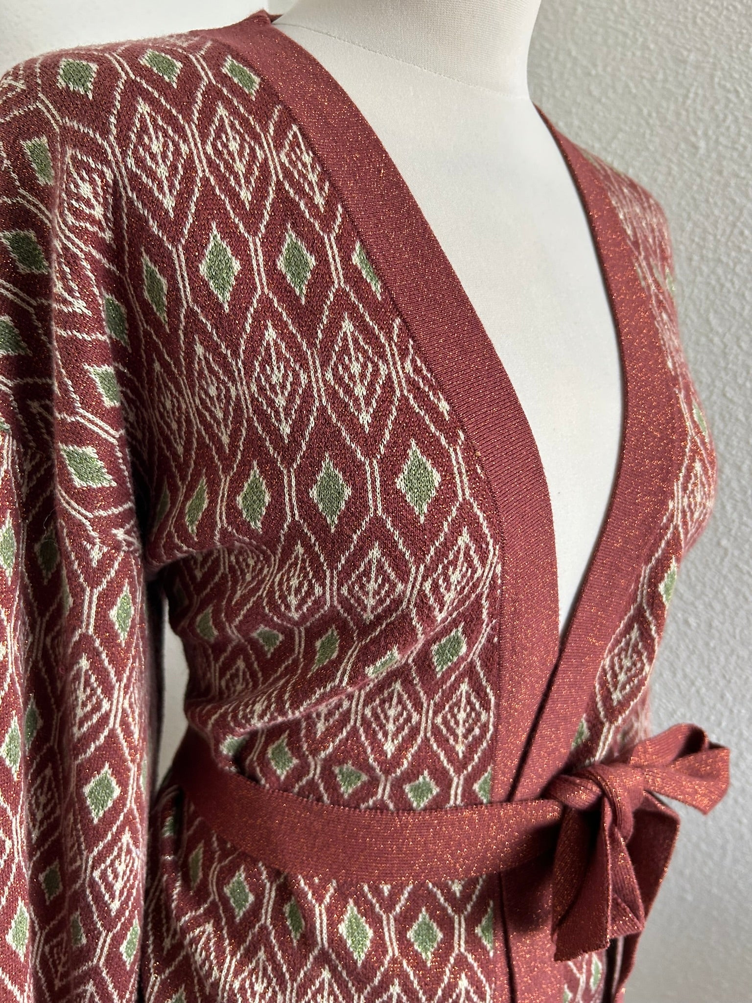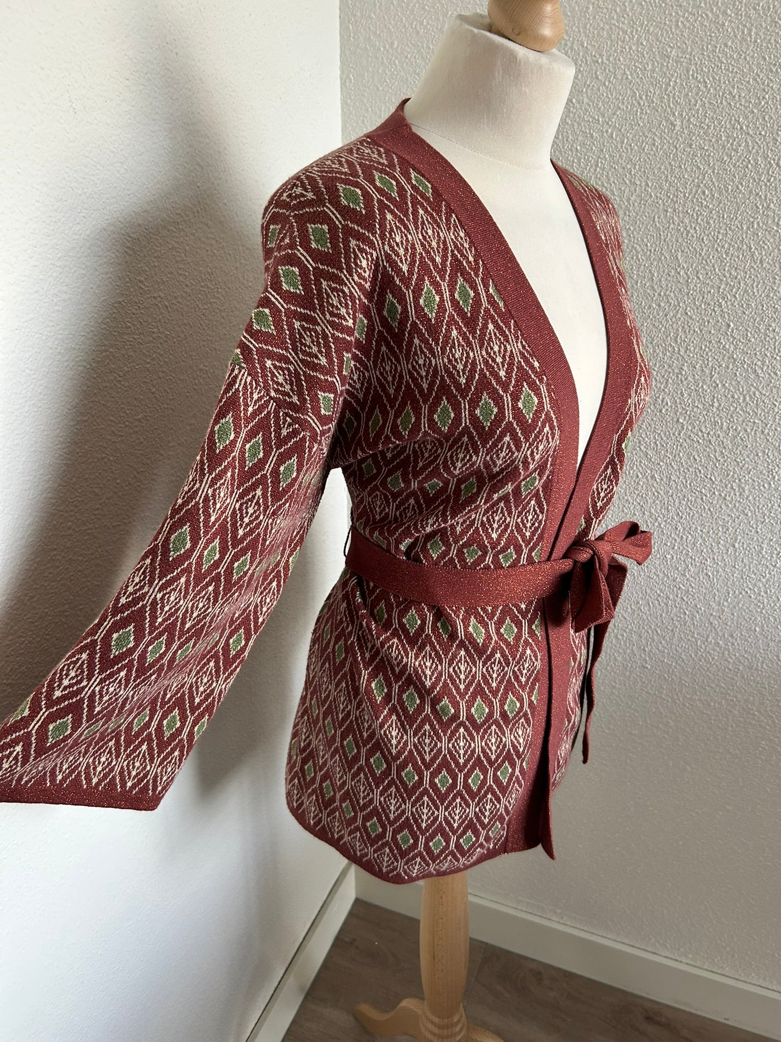 - Mooie retro najaar wikkel/olmslag vest in kimono stijl