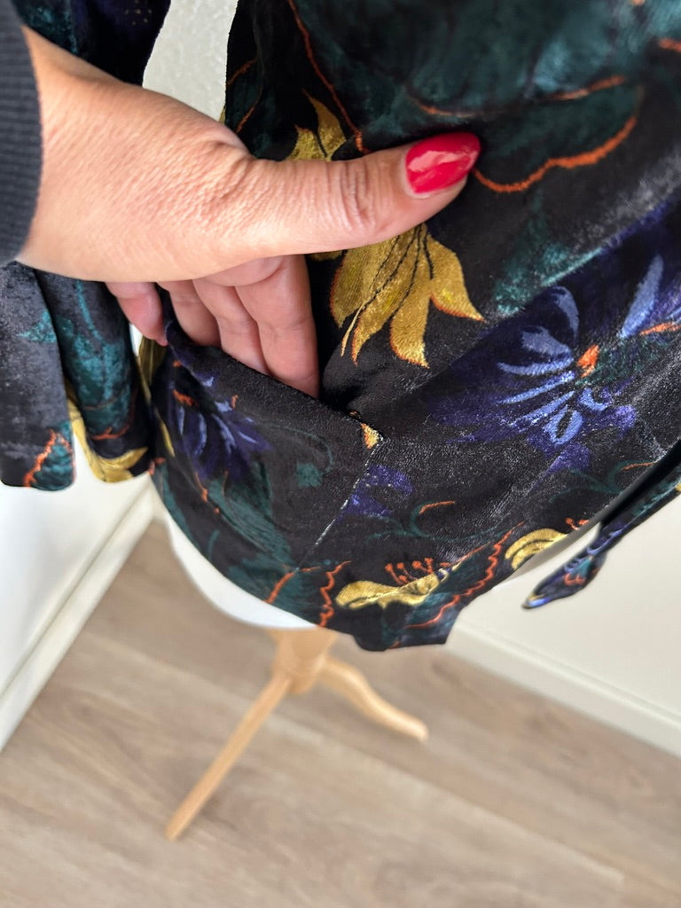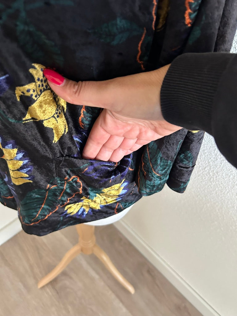 - Zwart met kleurrijke chique bloemen print in konings-blauw, groen, goud-geel