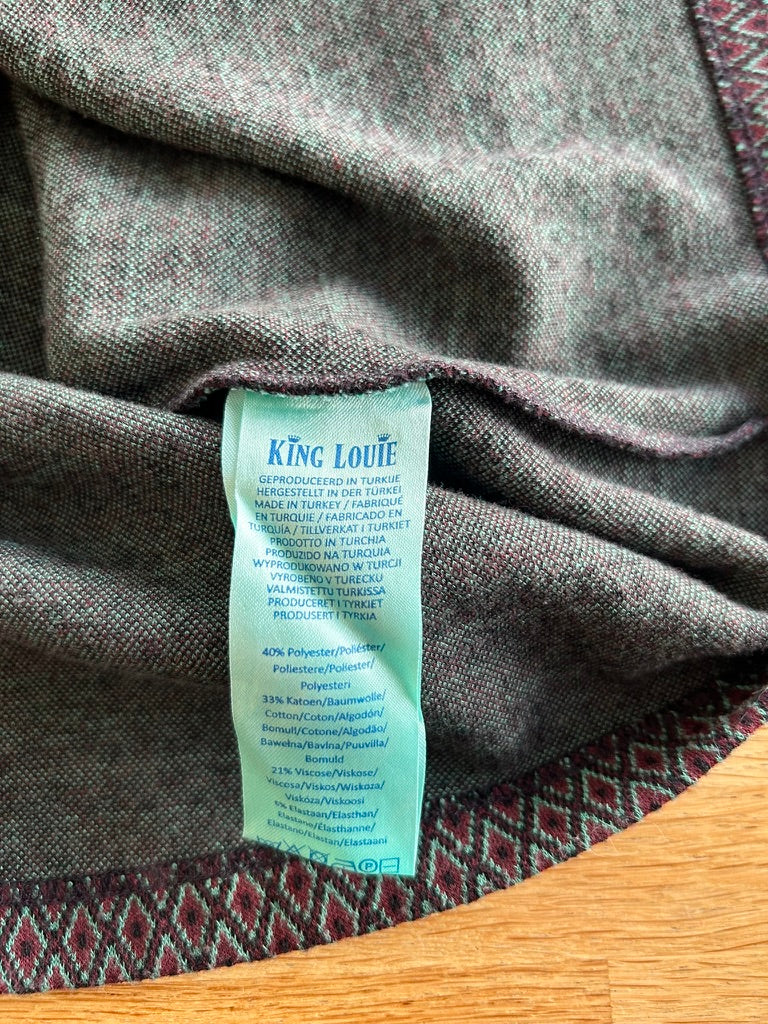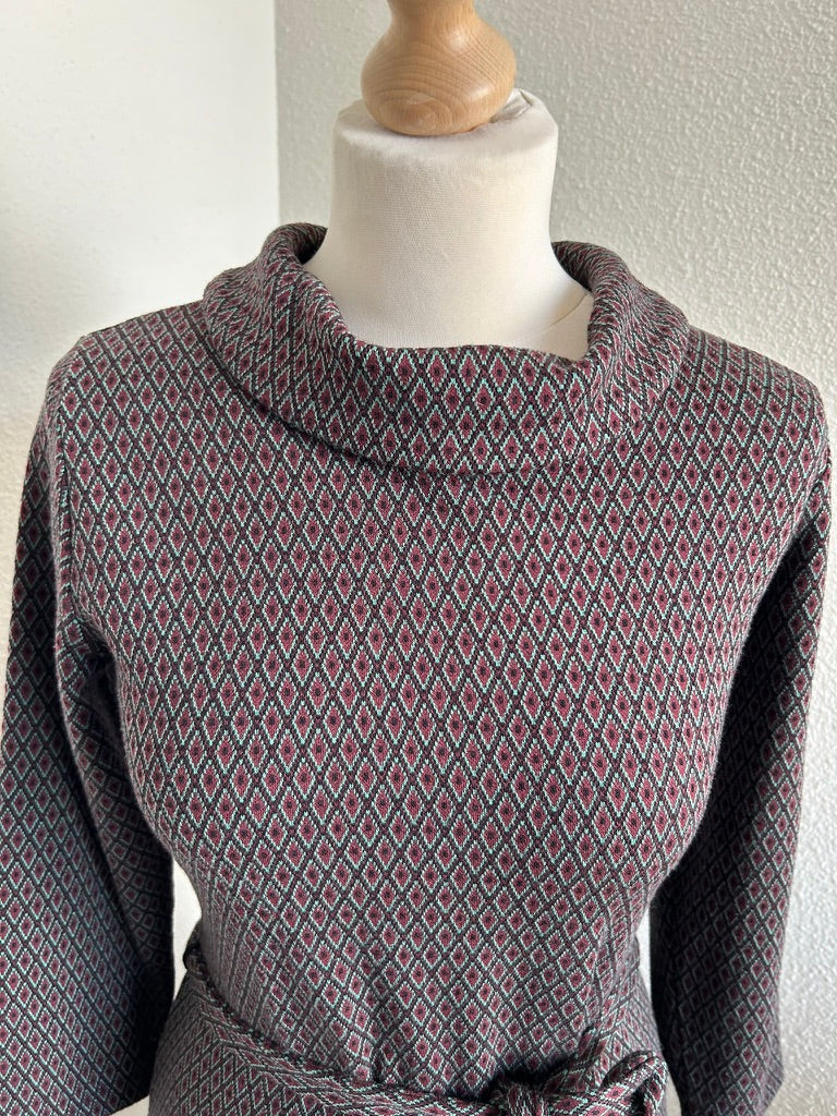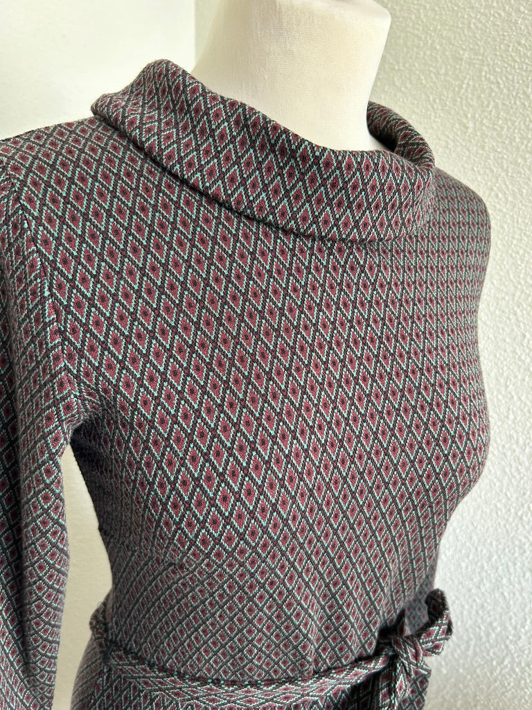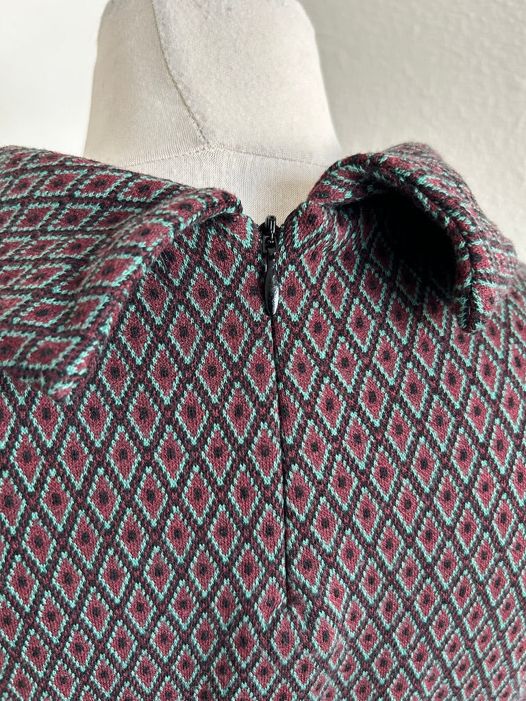 - Leuke najaars jurk in zwart met donkerrood/wijnrood rood en turquoise geruit patroon