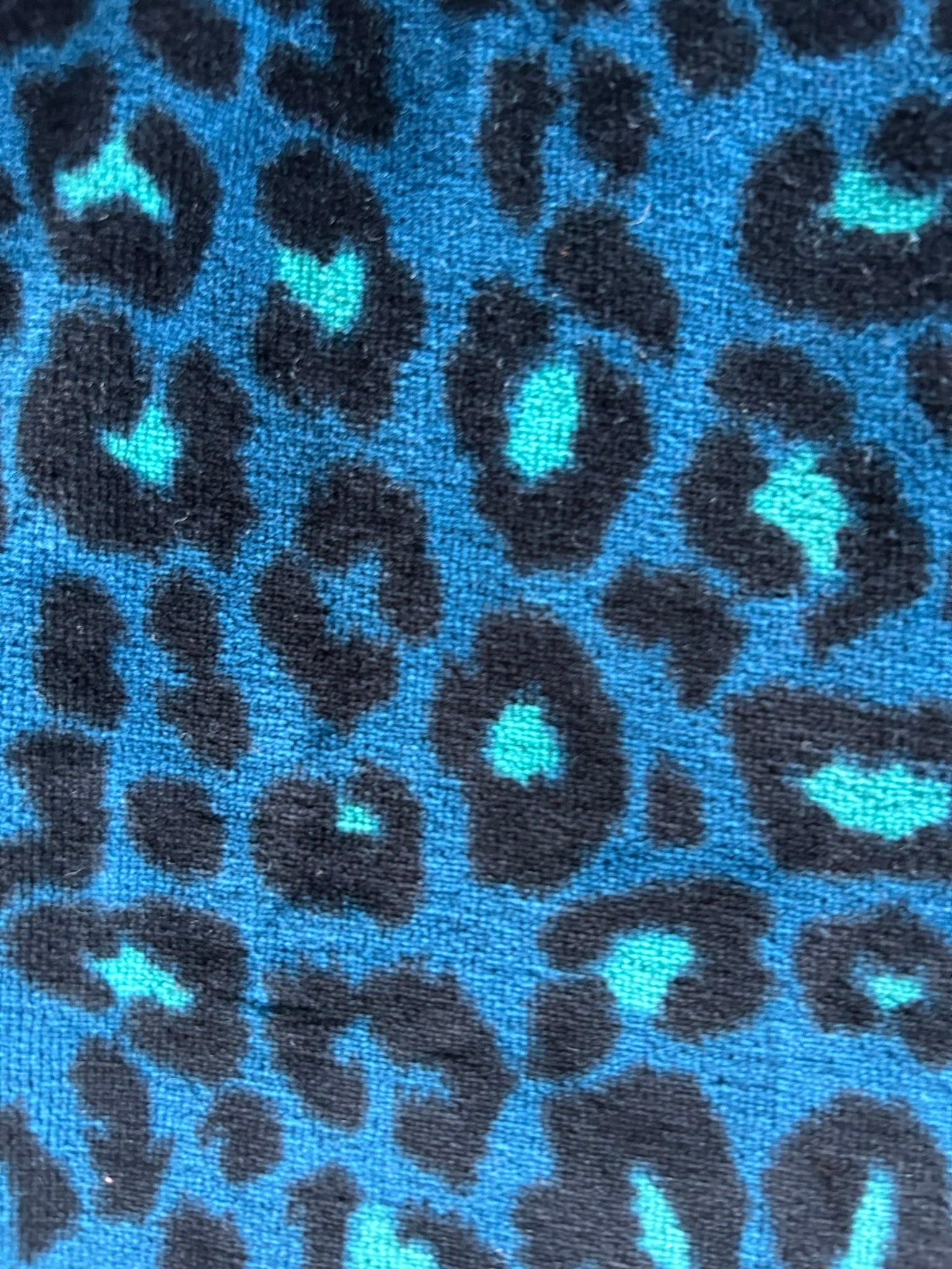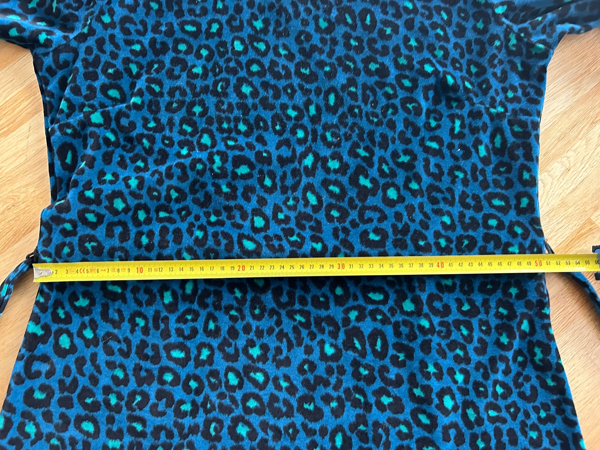- Leuke najaars jurk in panter print in donkerblauw/marine met zwart en turquoise blauw