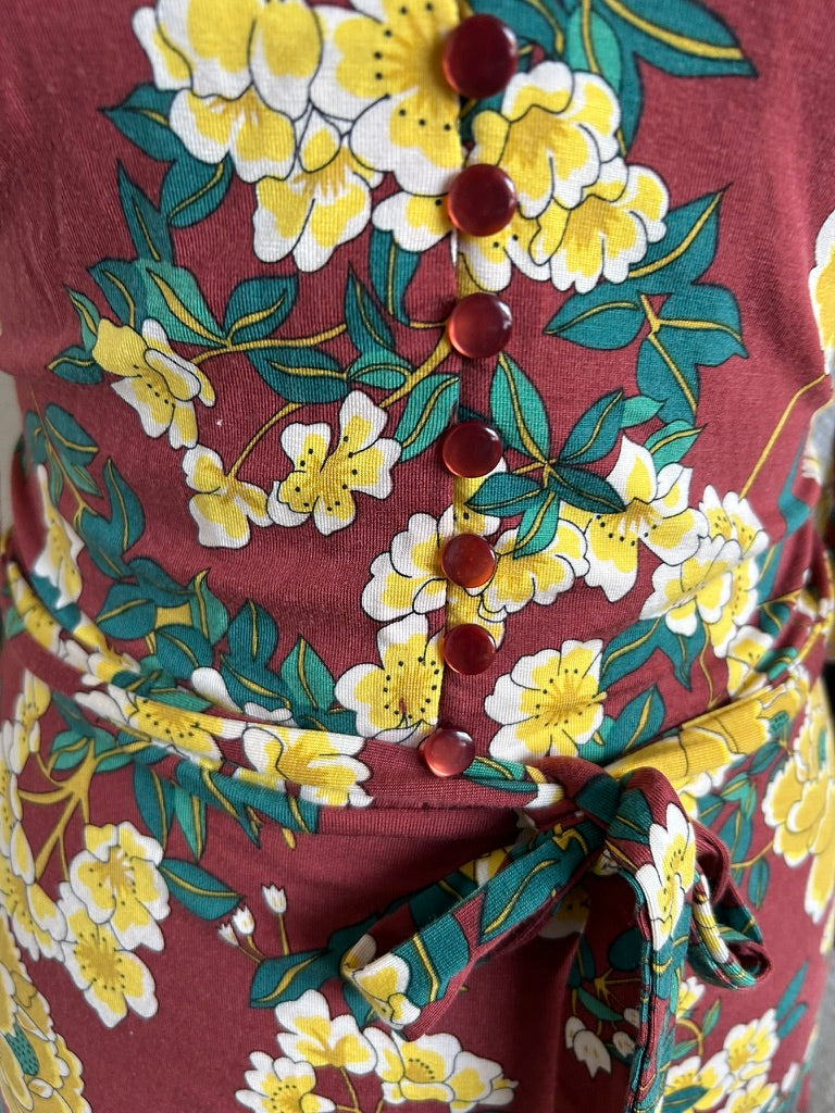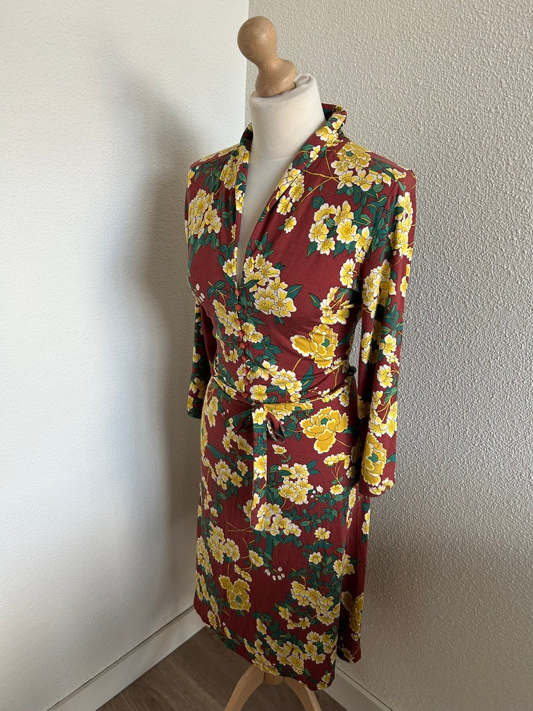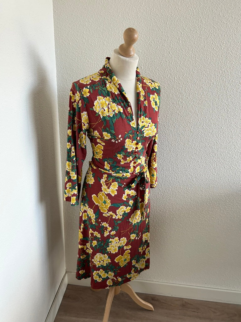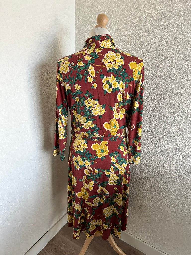 - Leuke najaars jurk in bruin mey gele groene en witte bloemen print