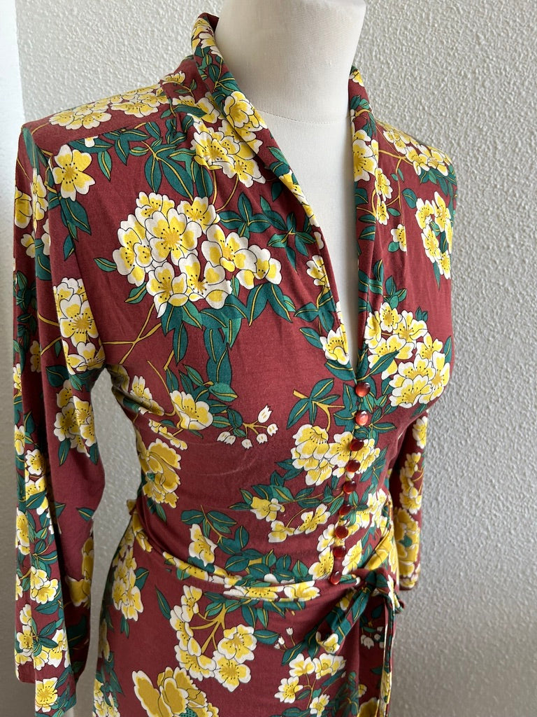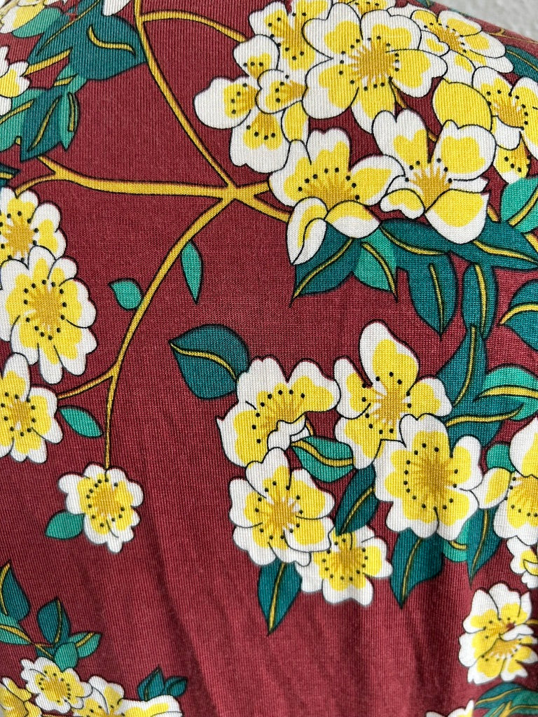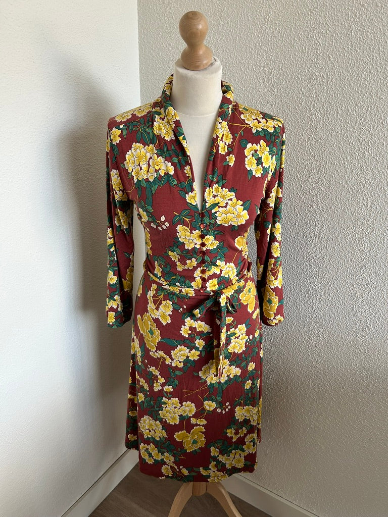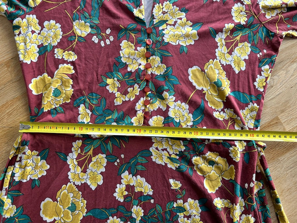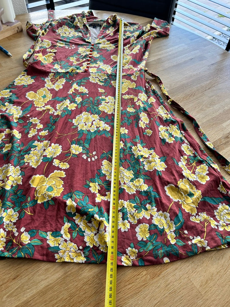 - Leuke najaars jurk in bruin mey gele groene en witte bloemen print