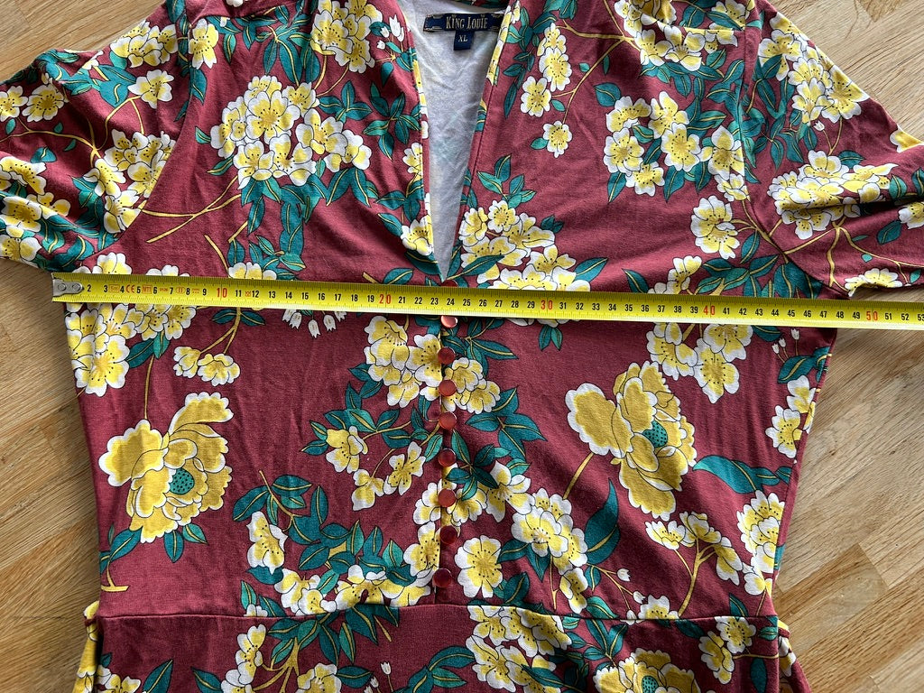 - Mooie halslijn met kraagje, knoopjes op de borst, lange mouwen, getailleerd door knooplintje