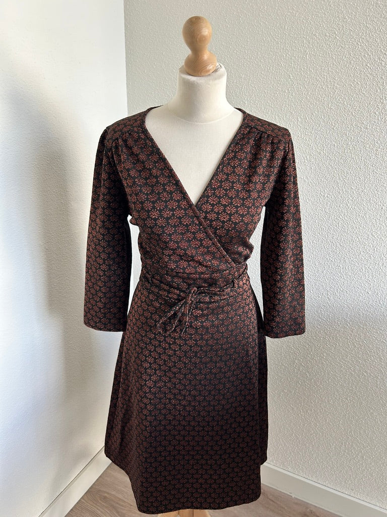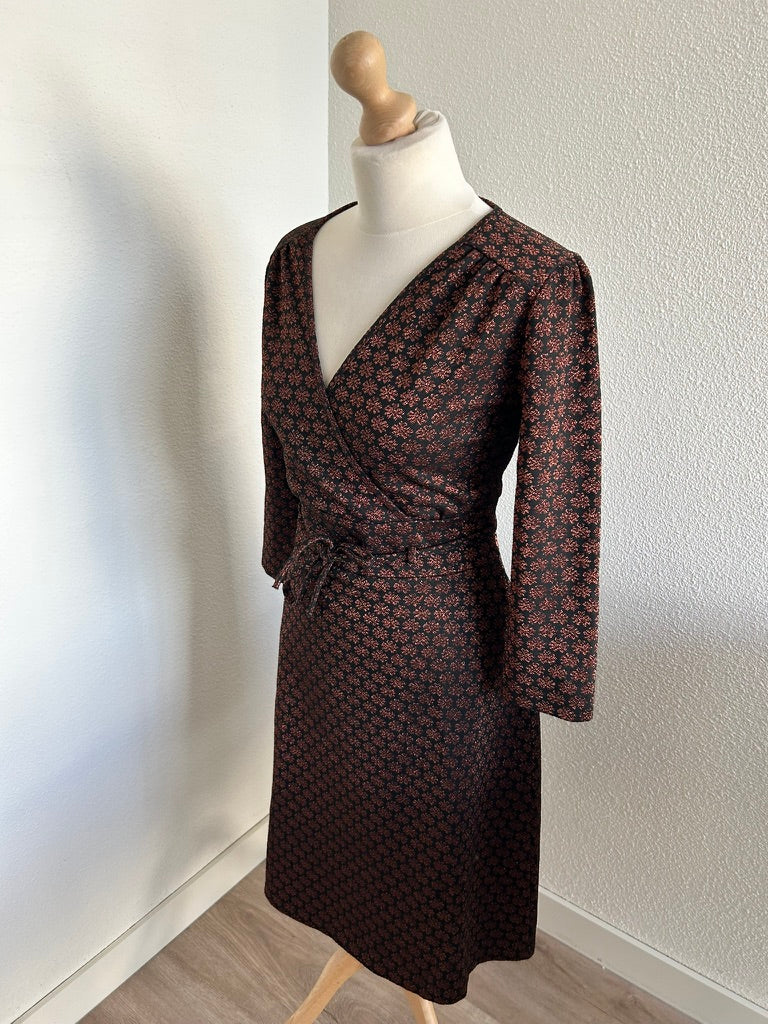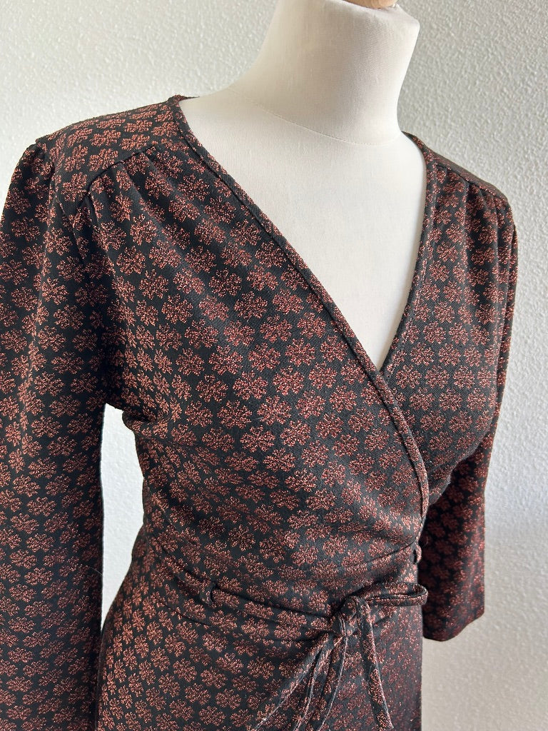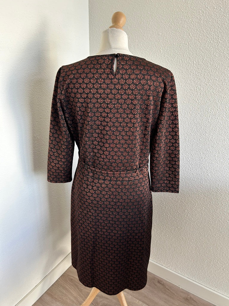 - Leuke najaars jurk in zwart met glitter print in brons/koper/bruin