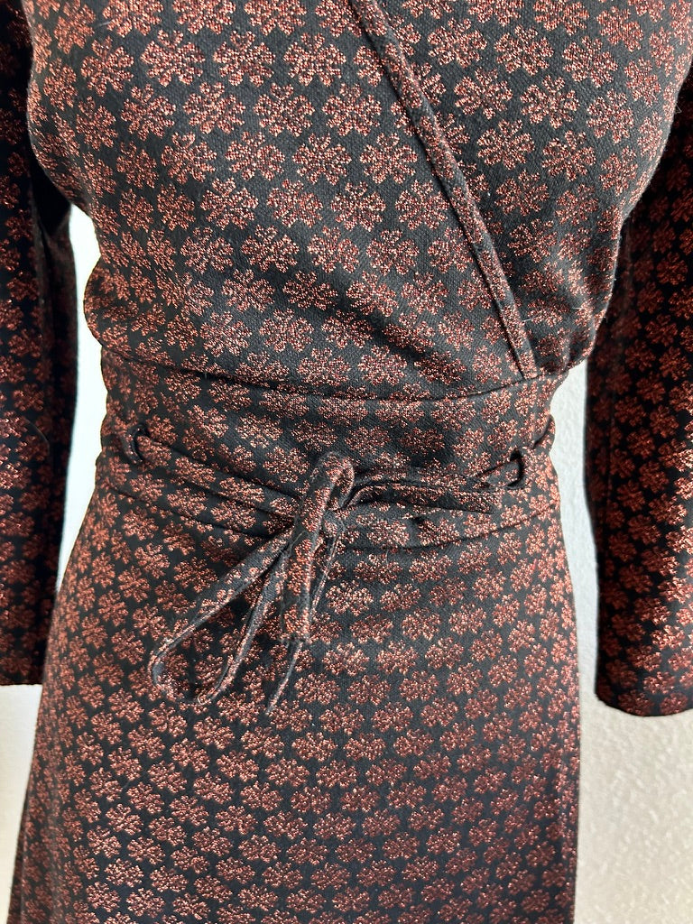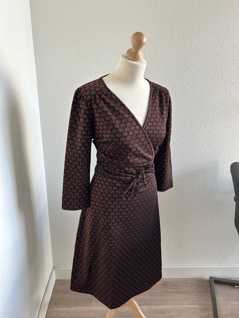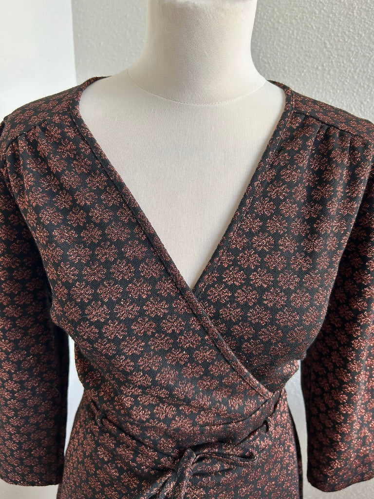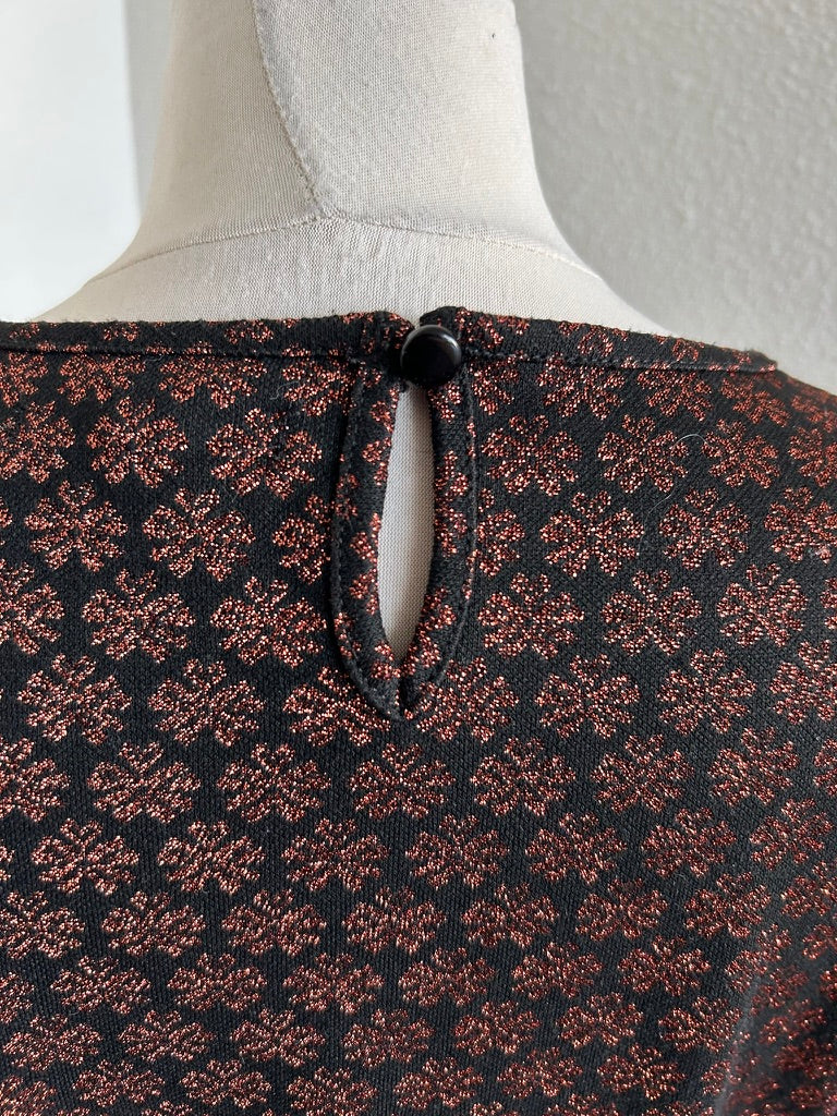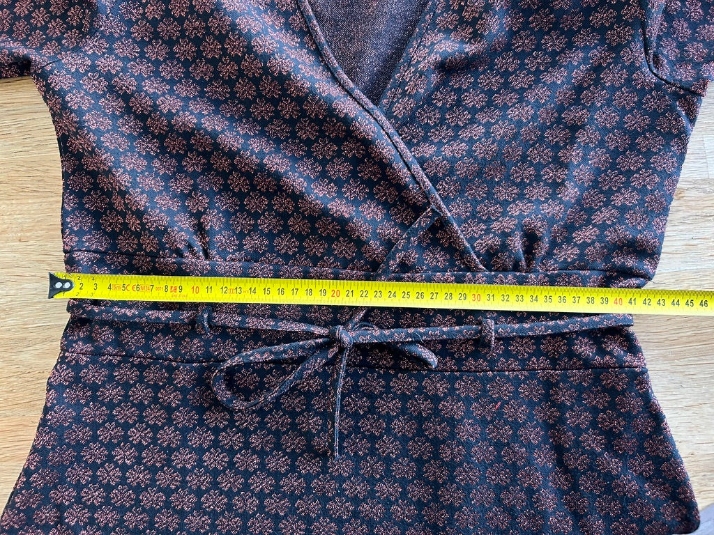 - Leuke najaars jurk in zwart met glitter print in brons/koper/bruin