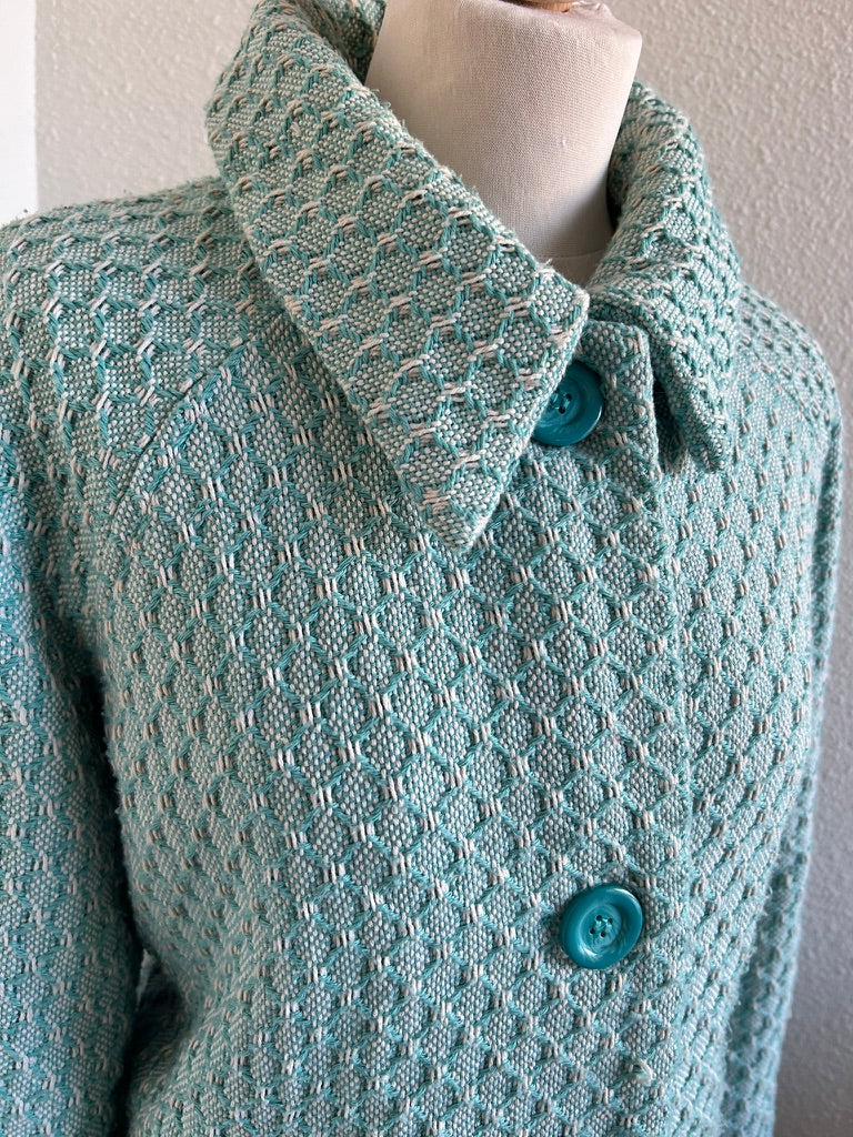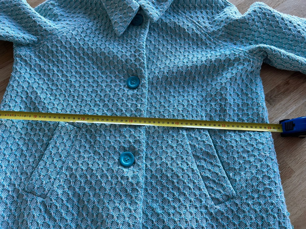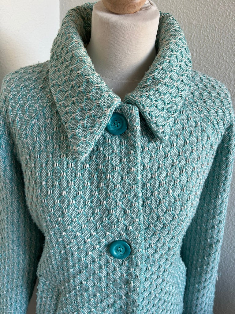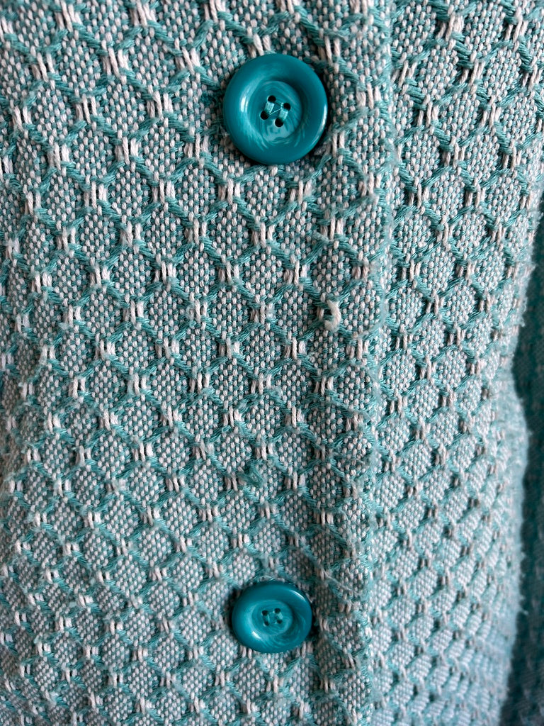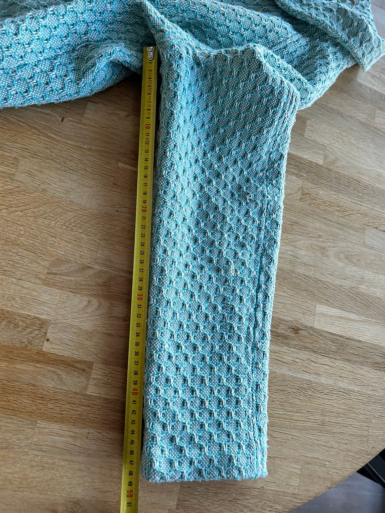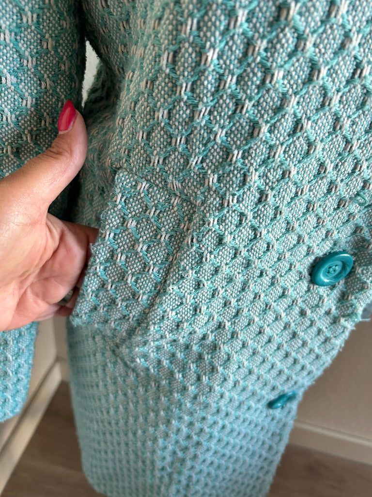 - Leuk retro geruite print/gehaakt in creme wit en turquoise blauw