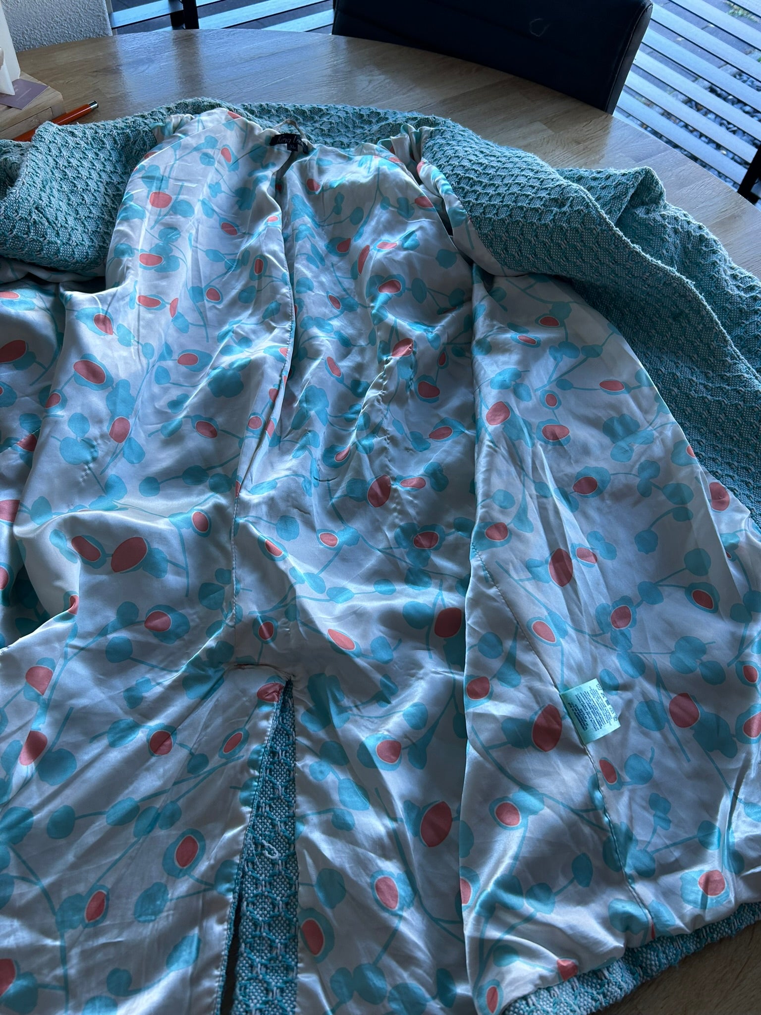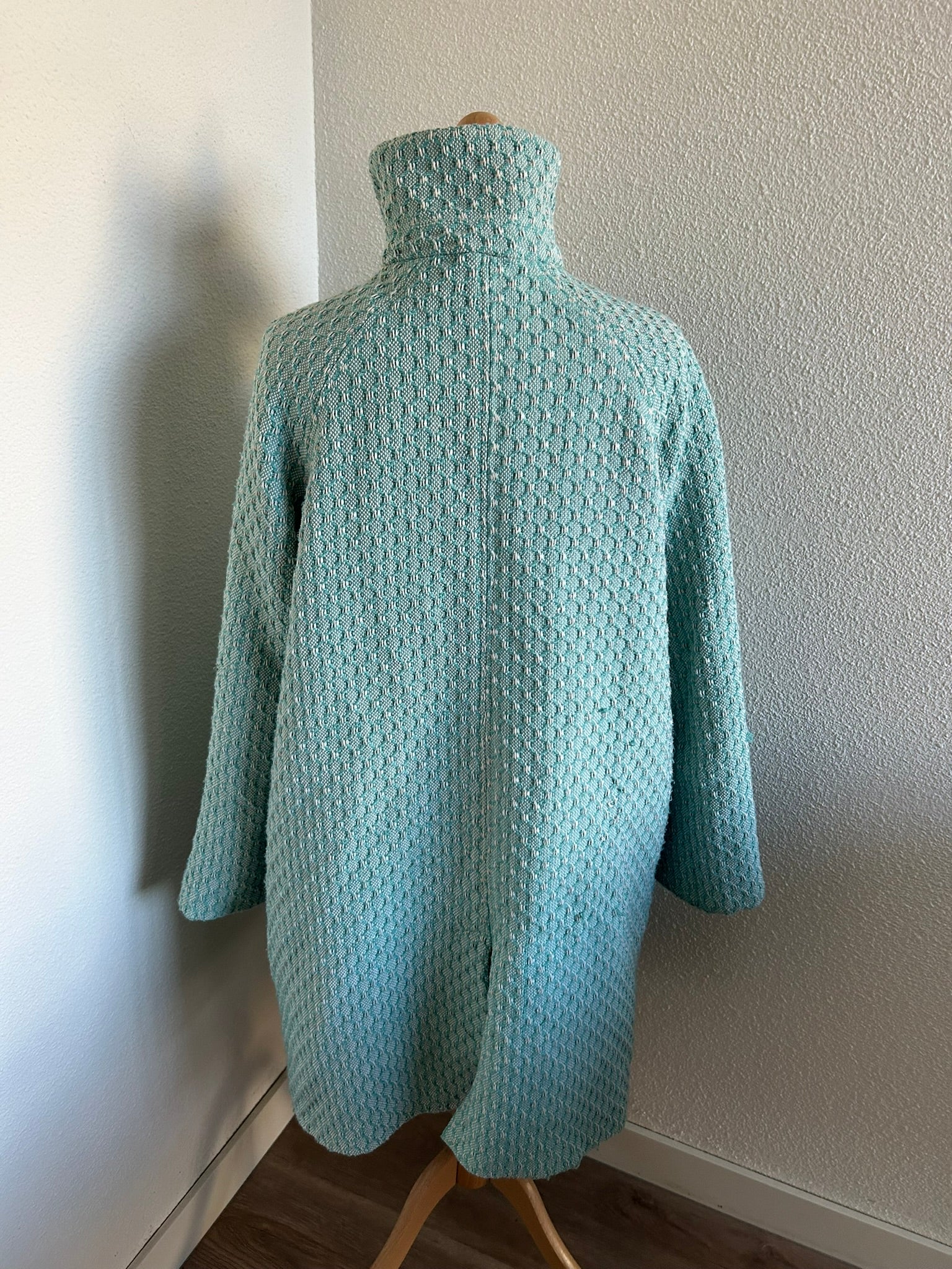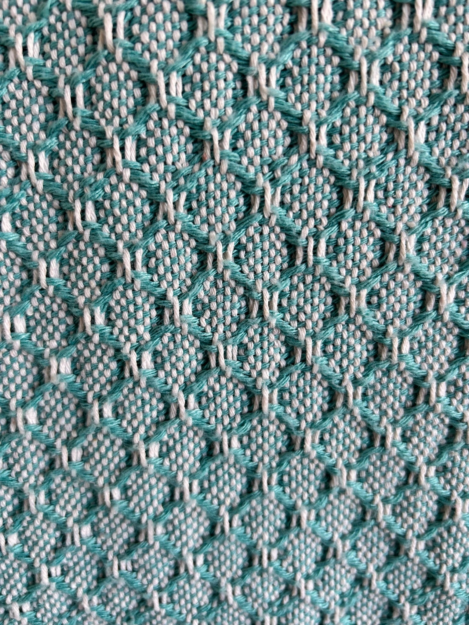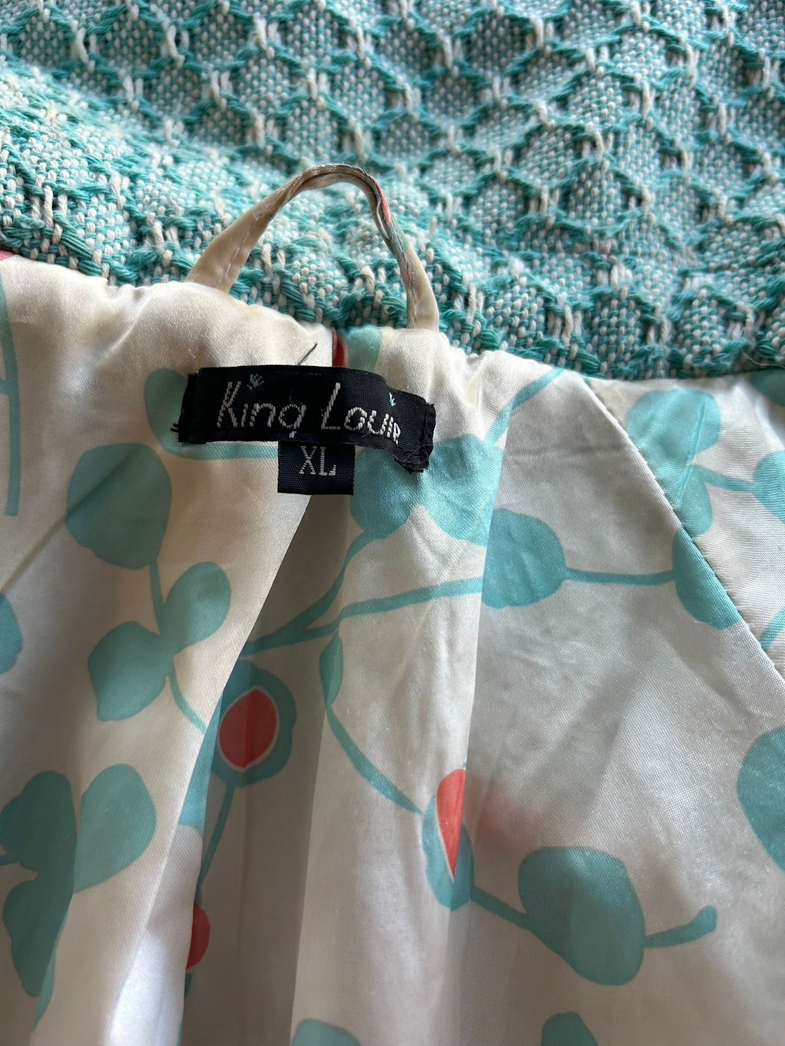 - Leuk retro geruite print/gehaakt in creme wit en turquoise blauw