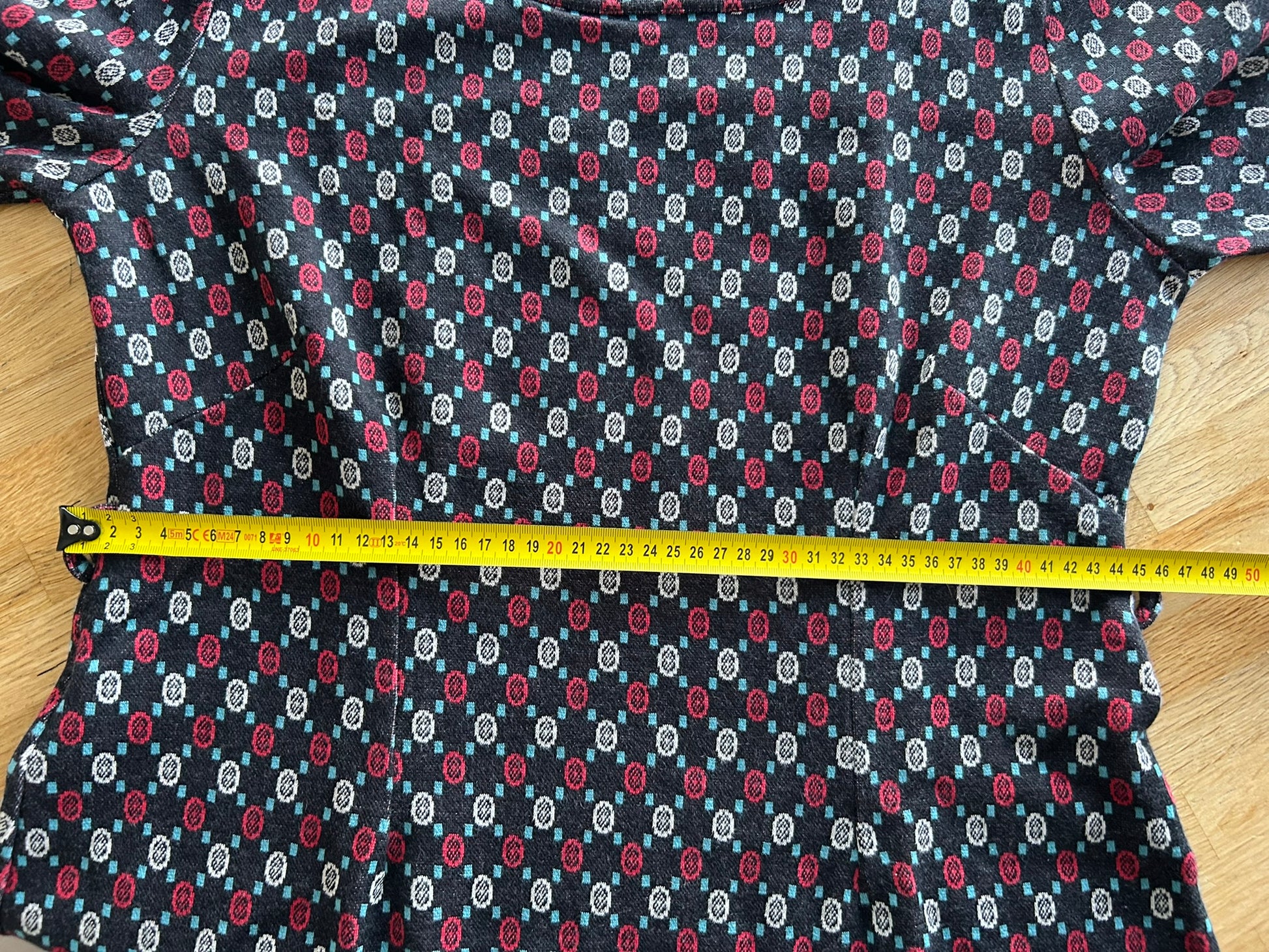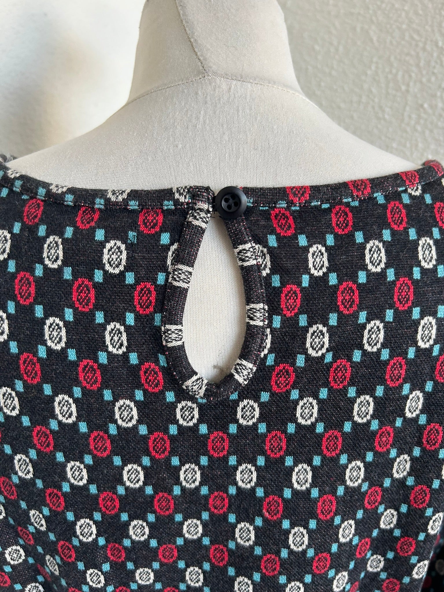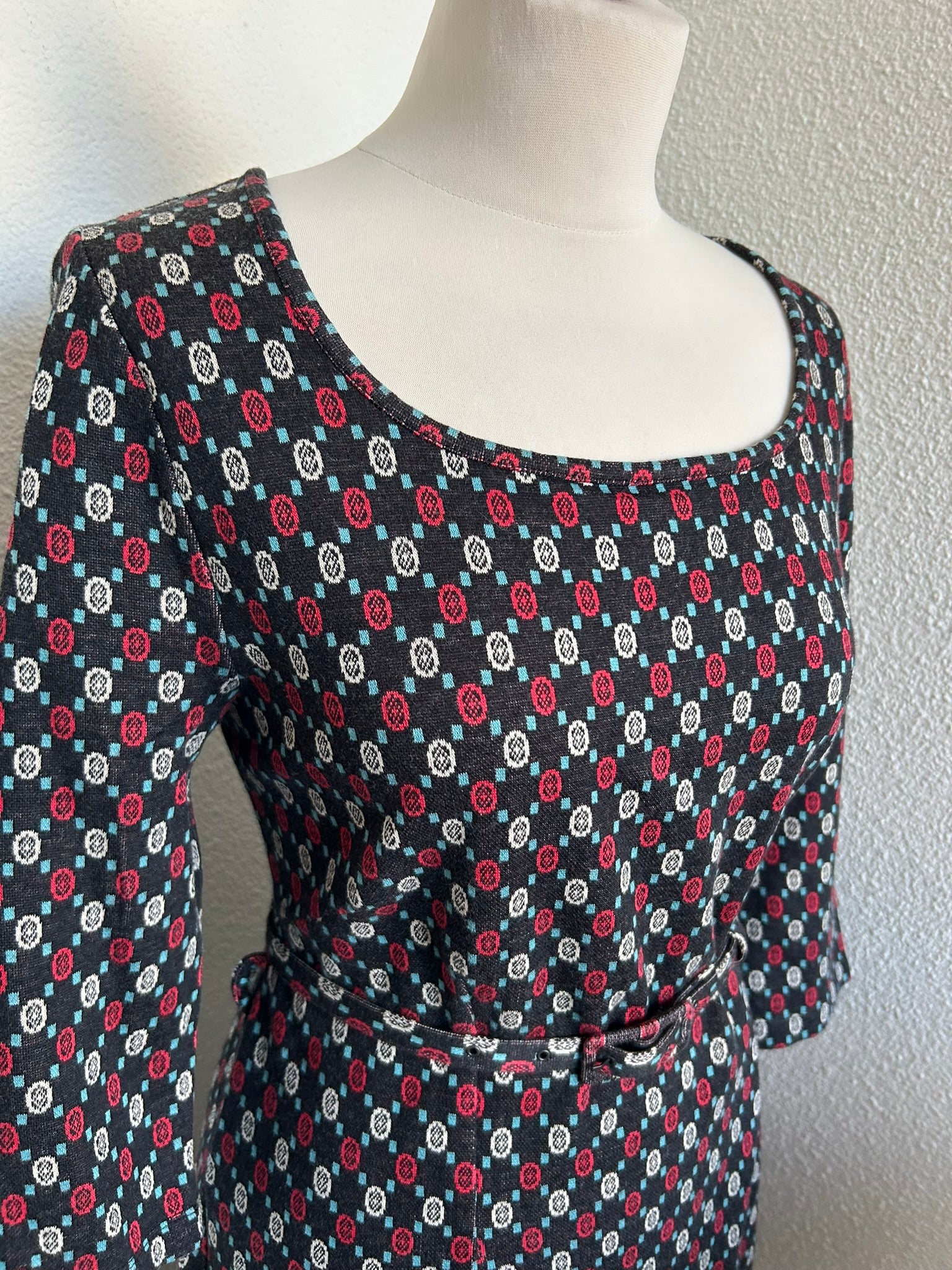 - Leuke retro patroon van in grijs/zwart met wit turquoise en rood