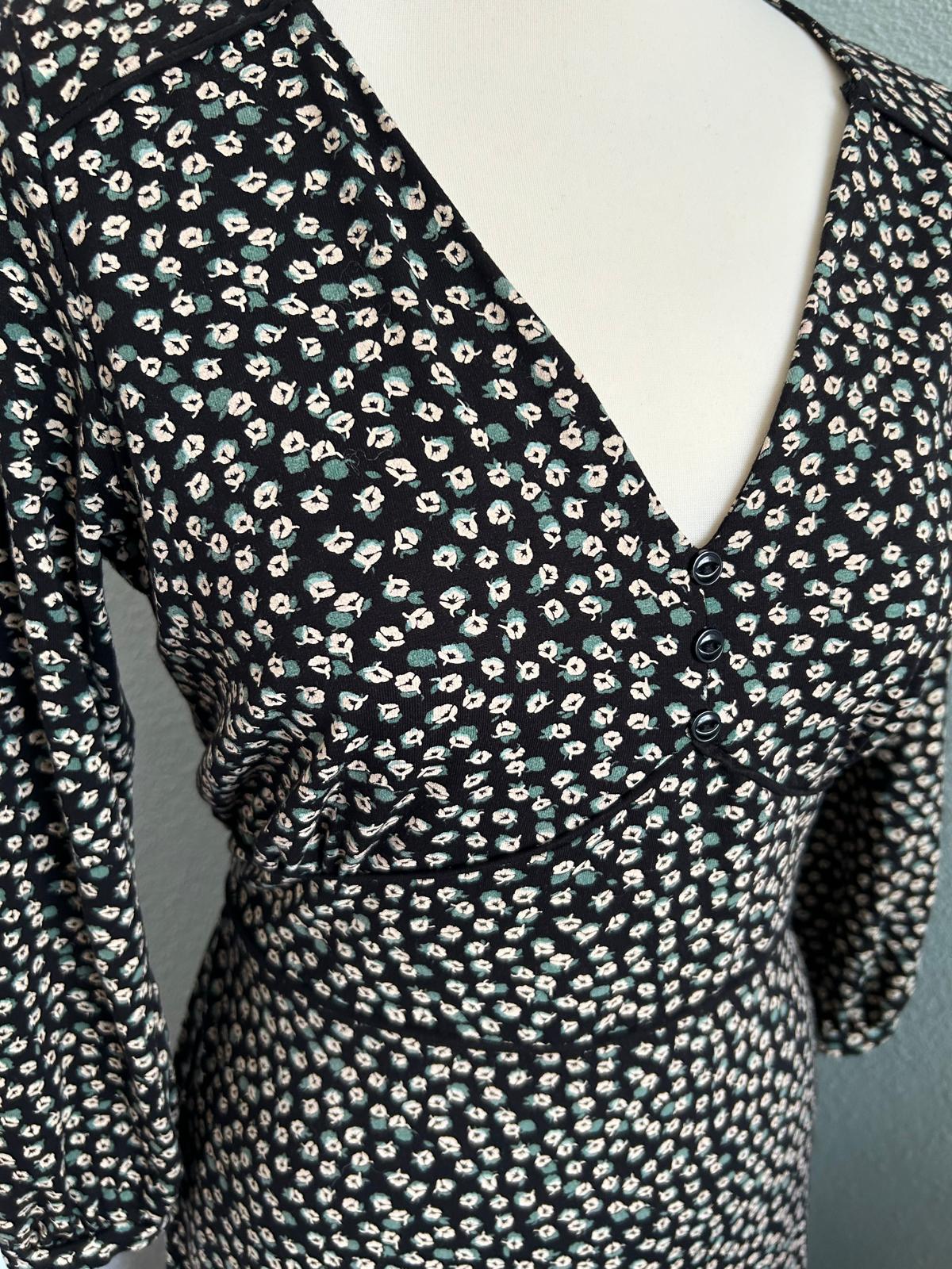- Mooie v-halslijn met knoopjes op de borst, 3/4 mouwen, getailleerd, vast knooplint op de rug