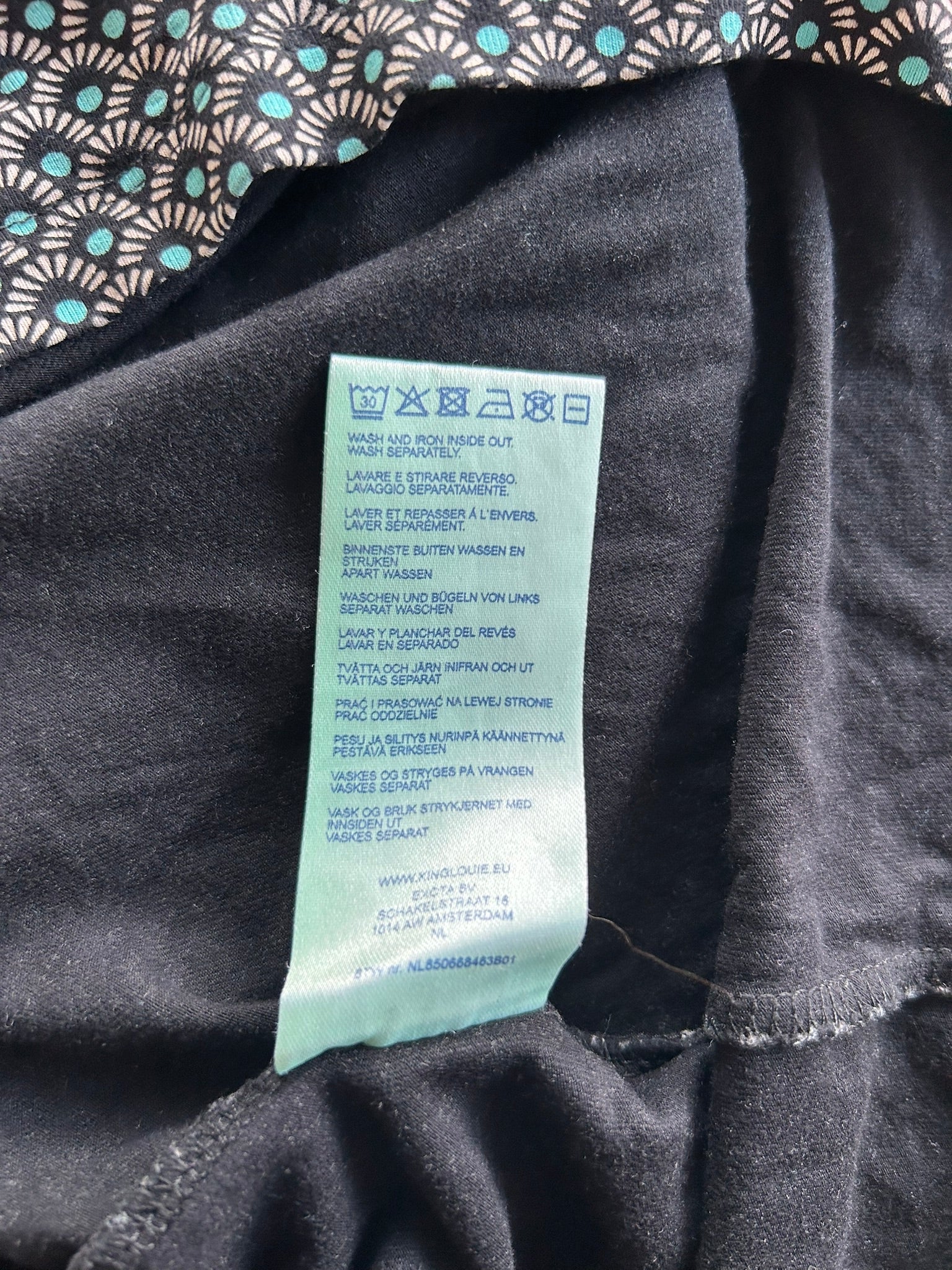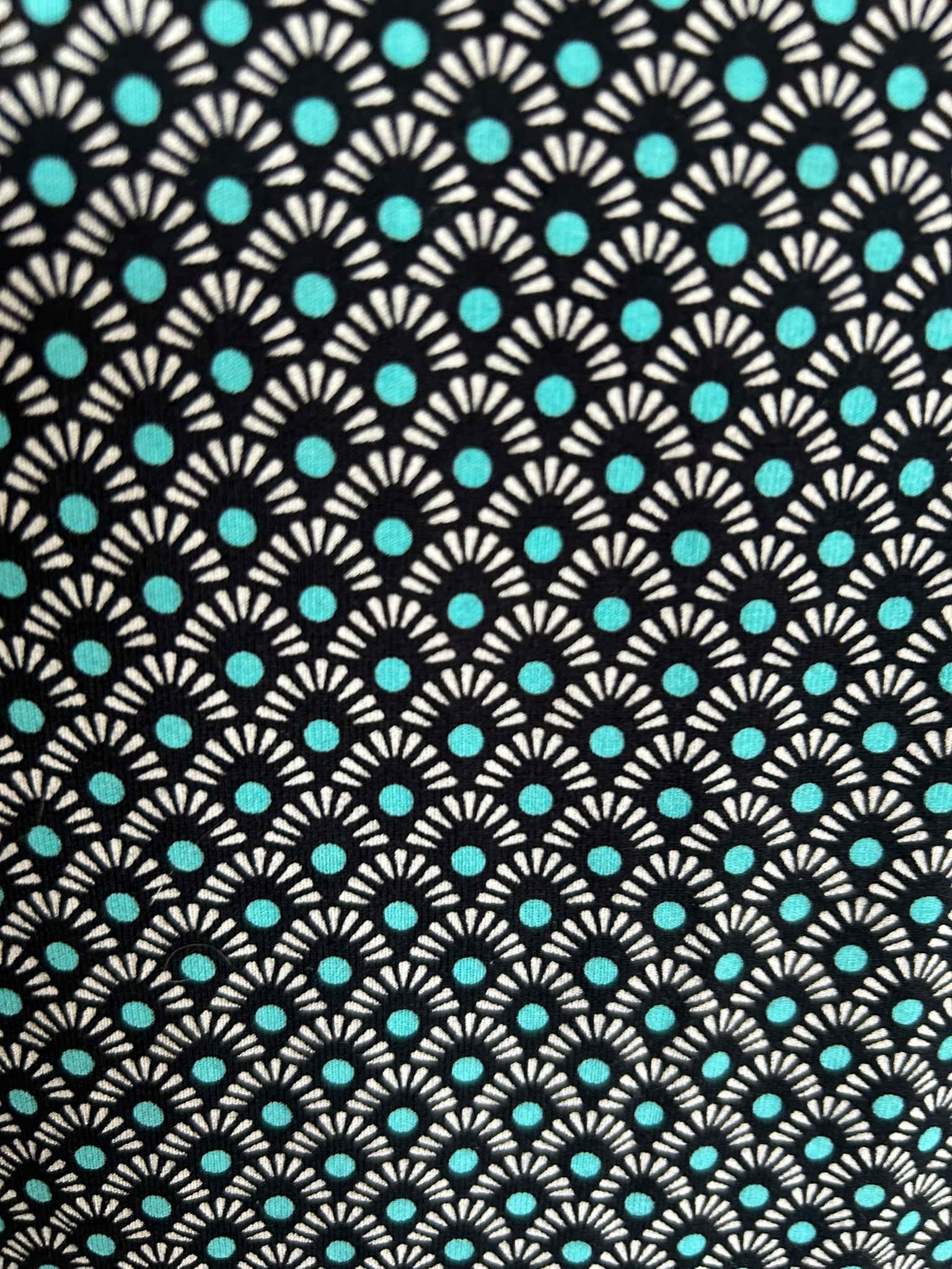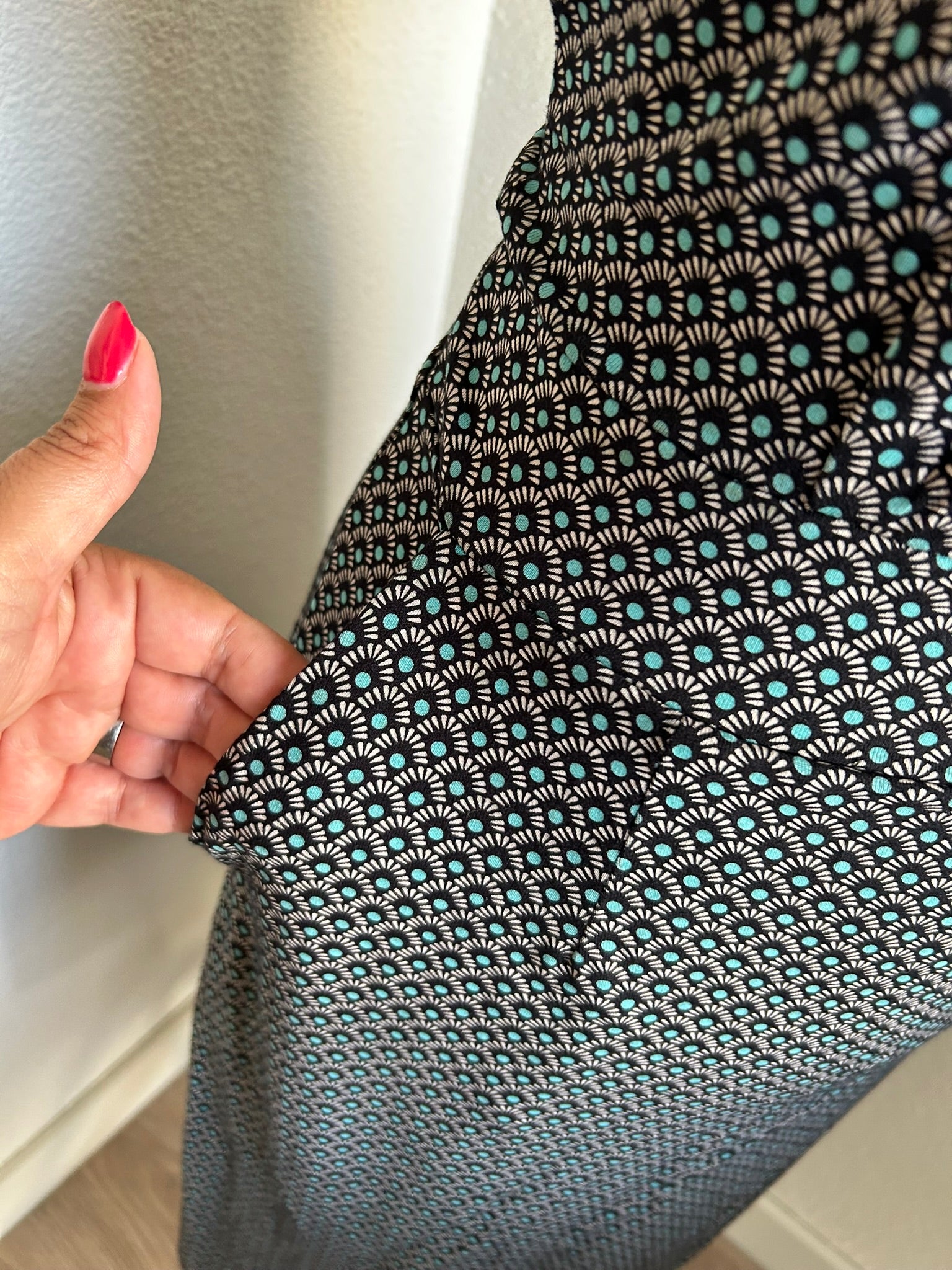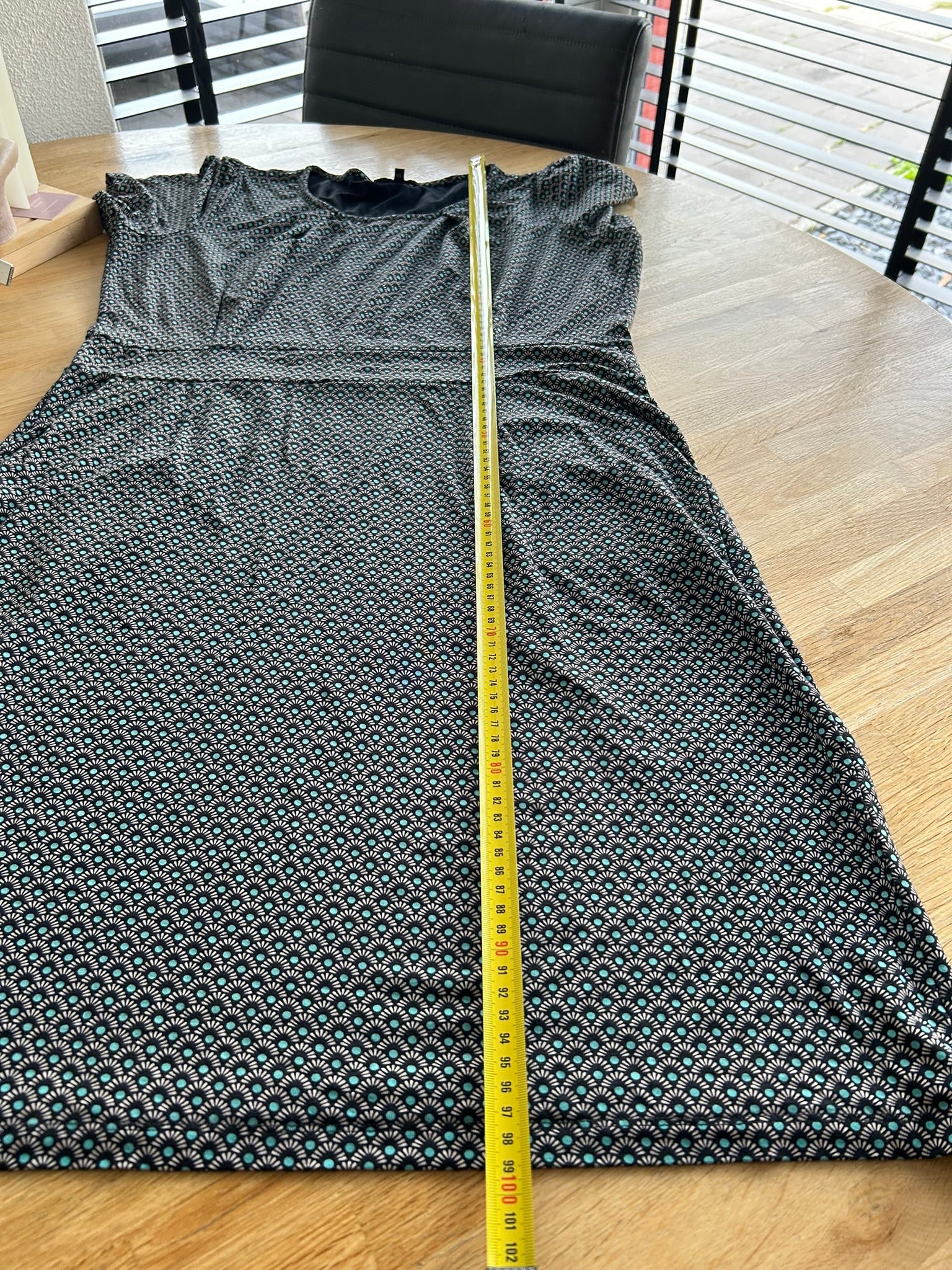 - Leuke jurk met retro print in zwart wit en turquoise blauw