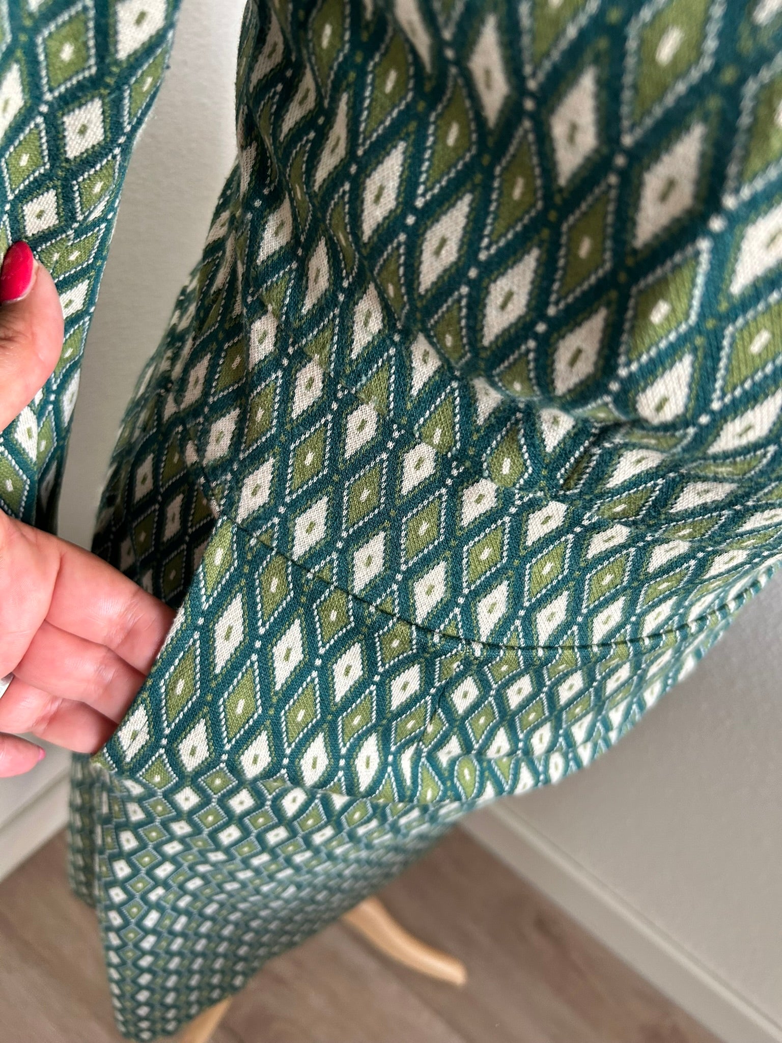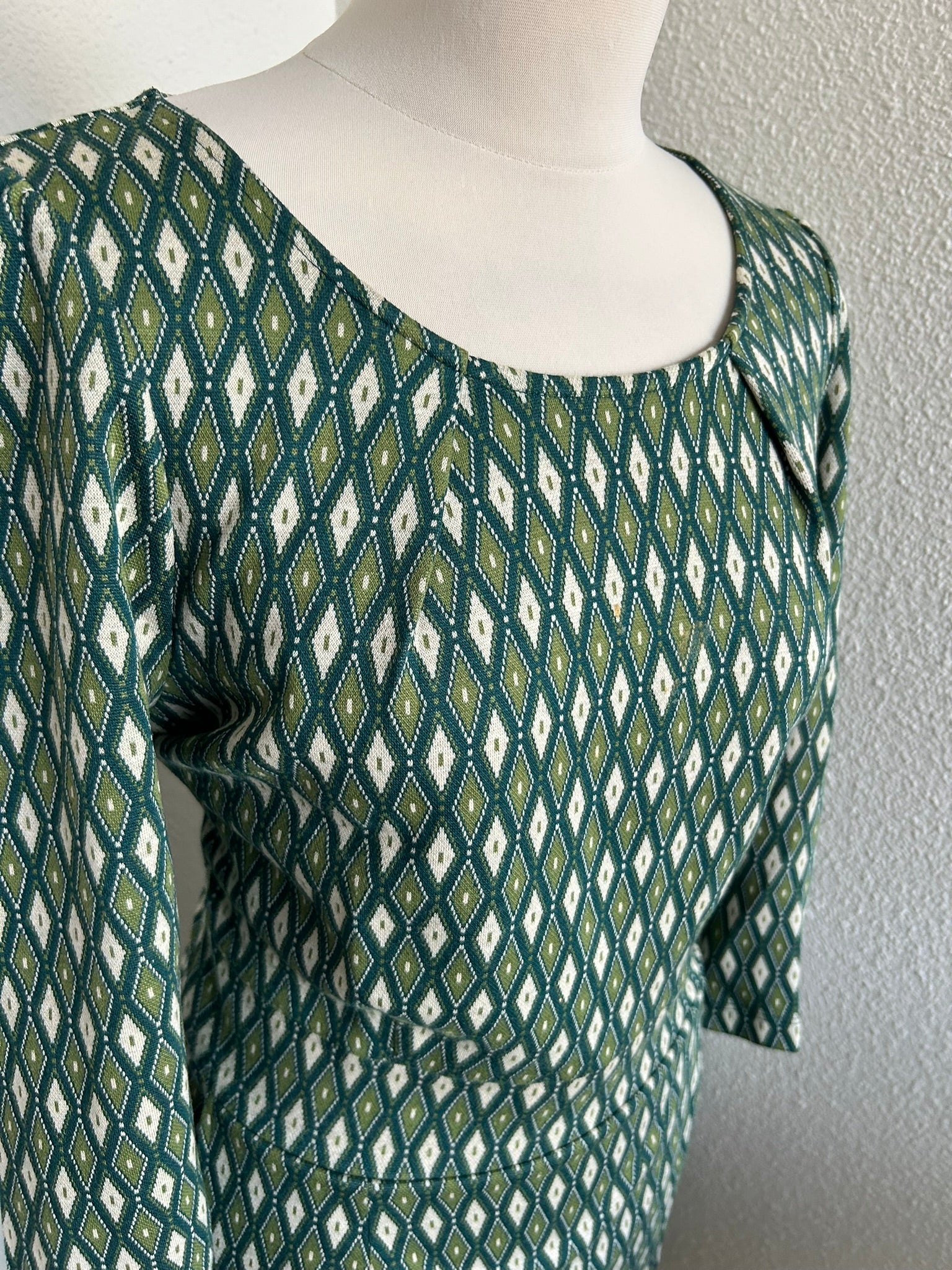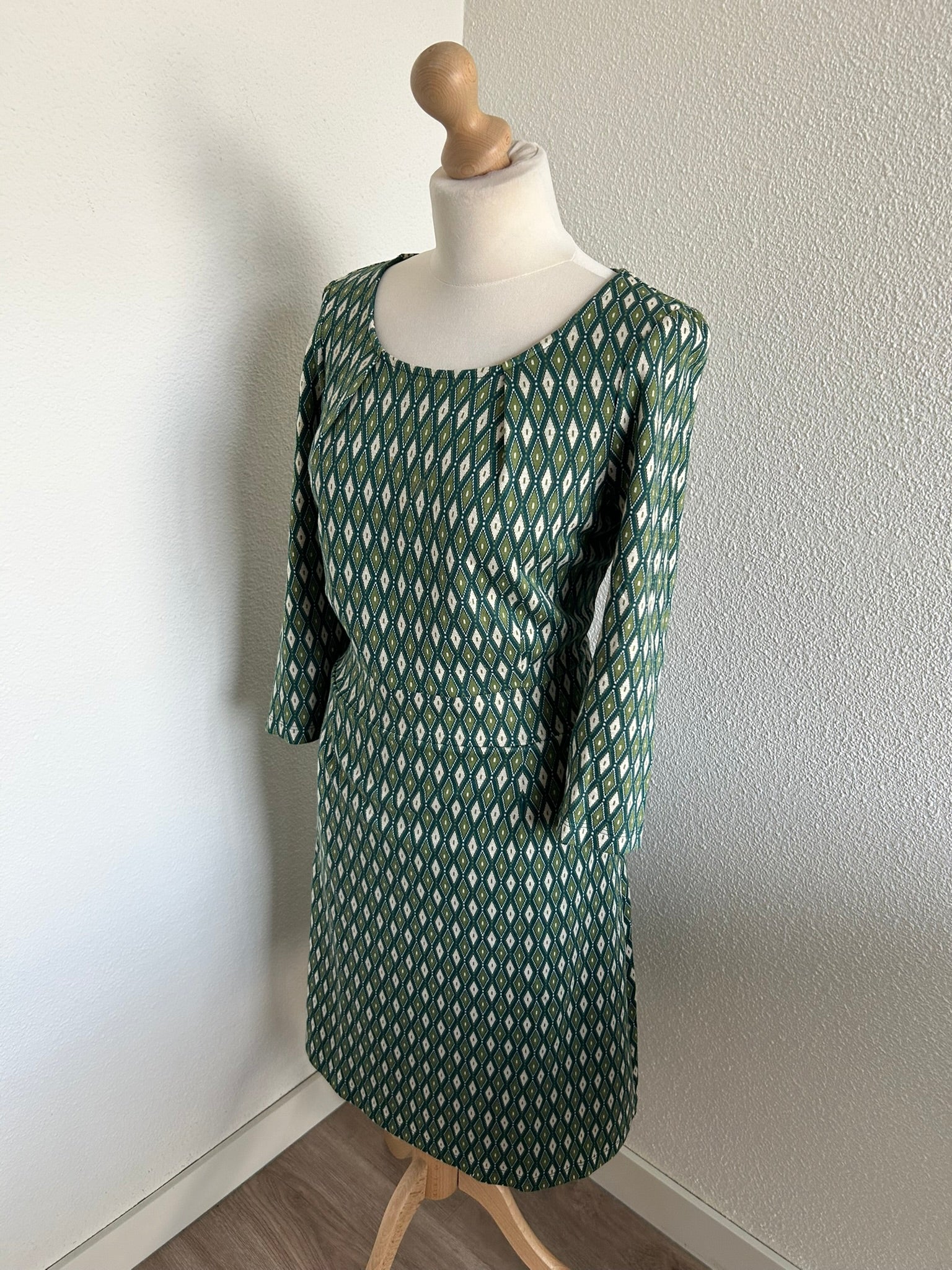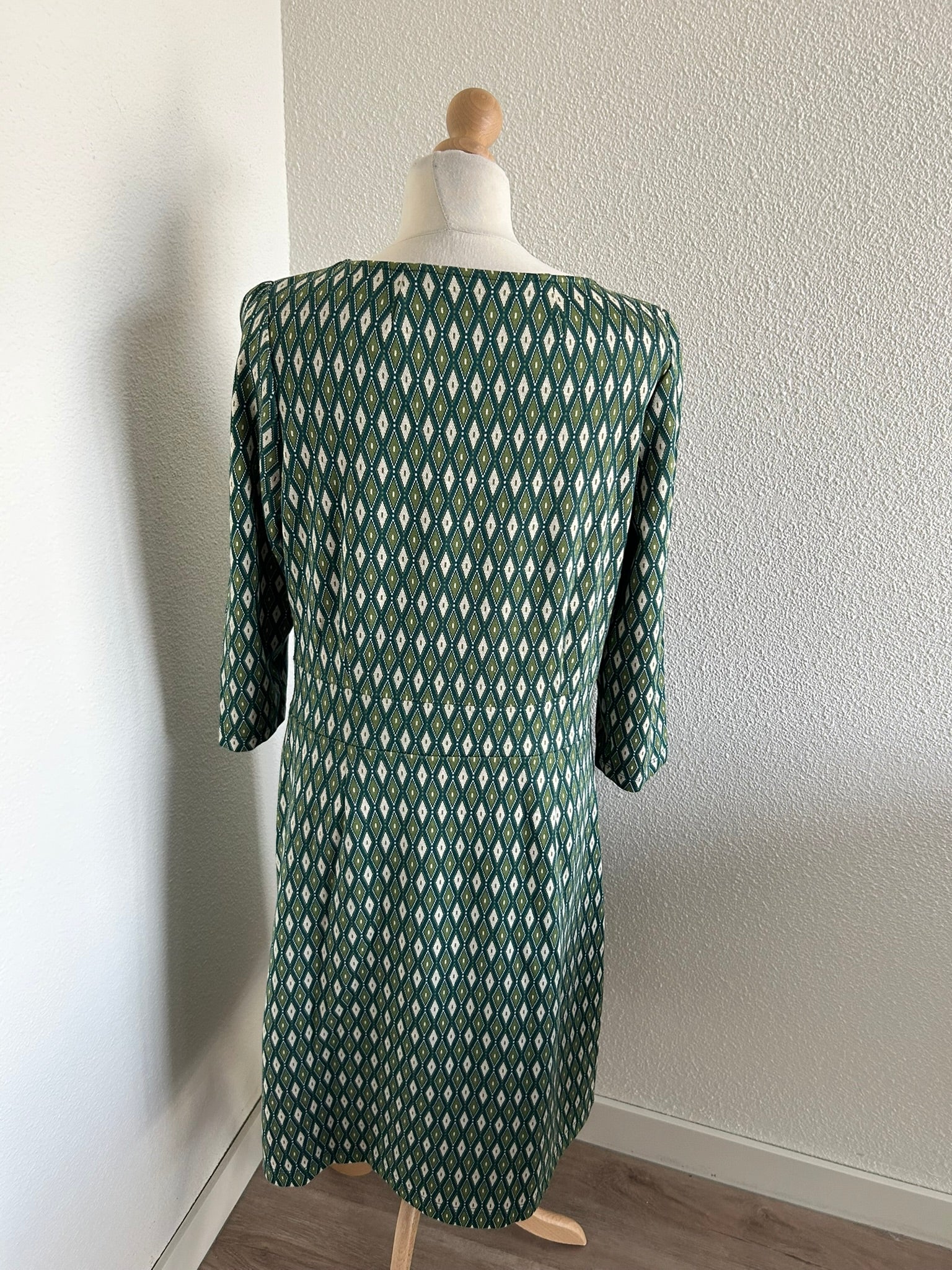 - Leuke jurk in donkergroen groen en creme witte geruite retro print