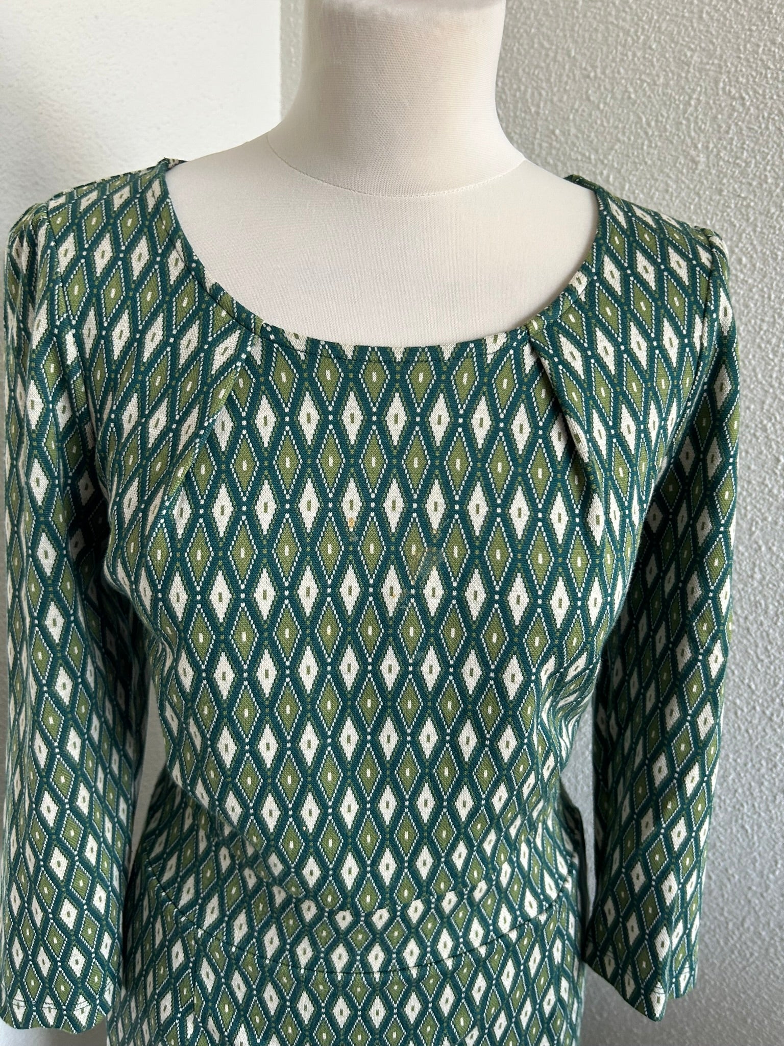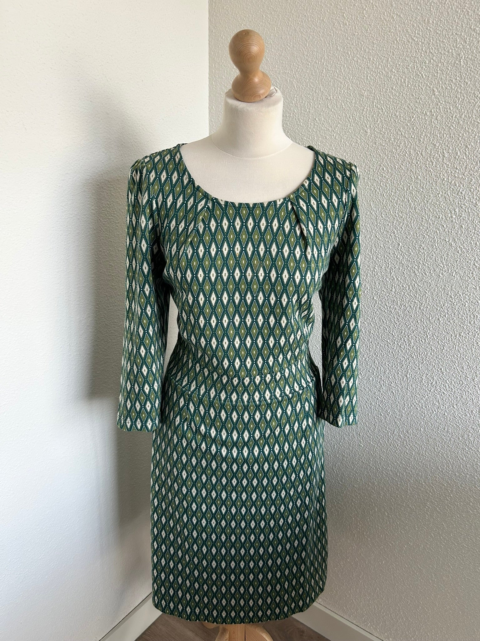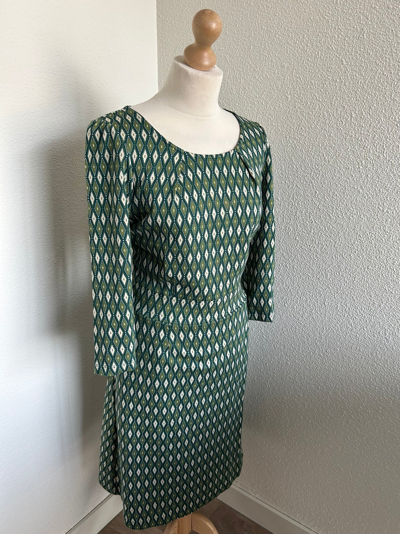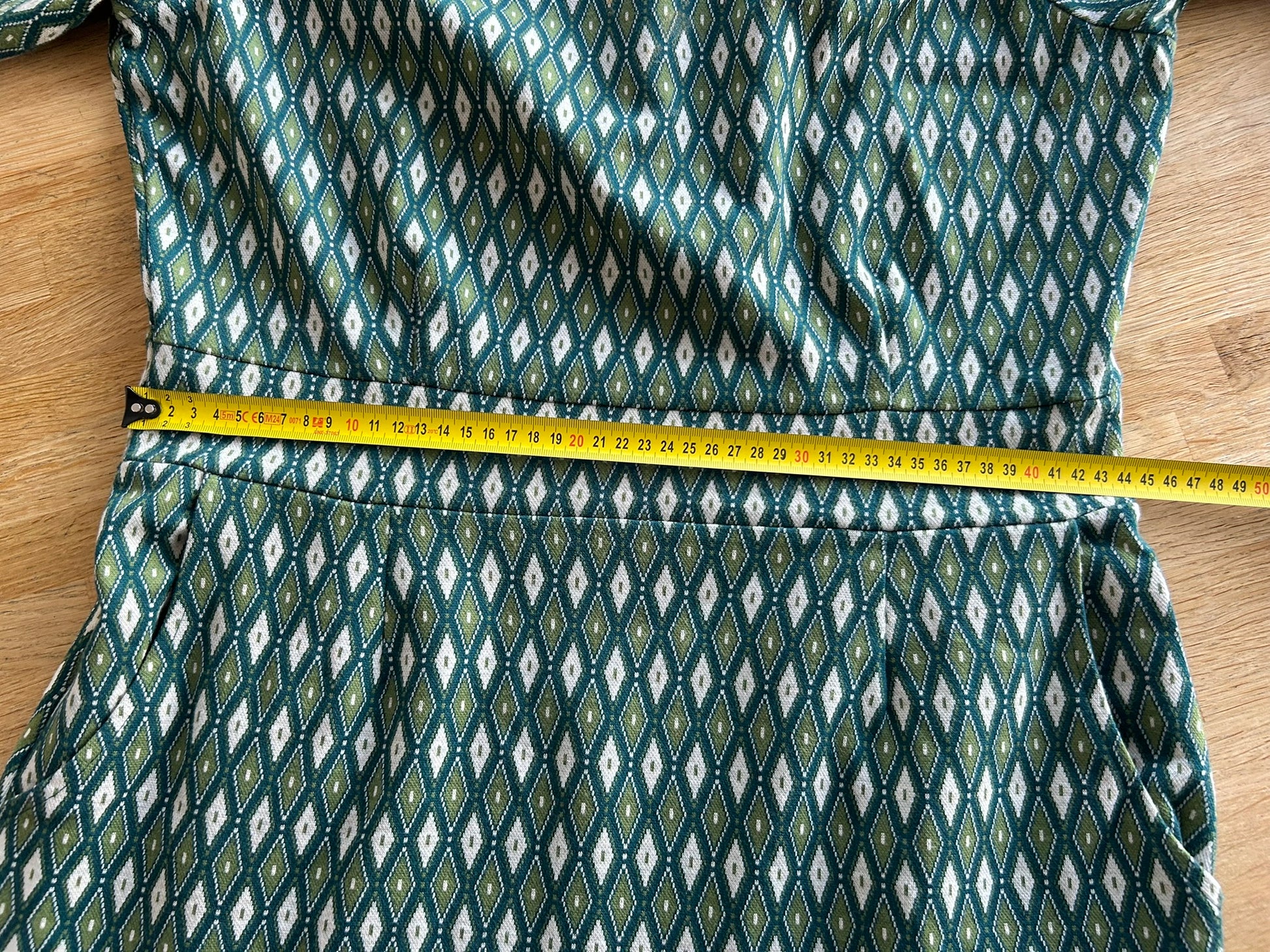 - Leuke jurk in donkergroen groen en creme witte geruite retro print
