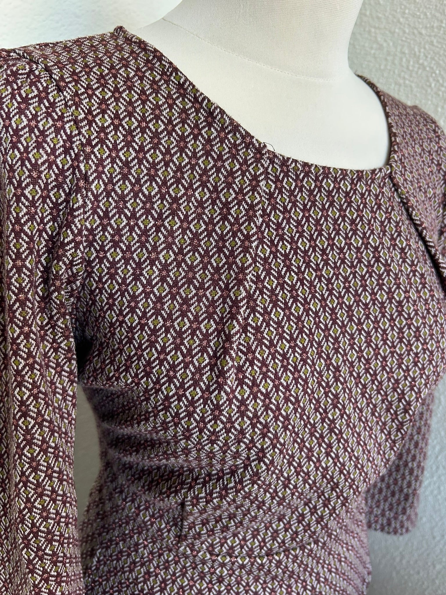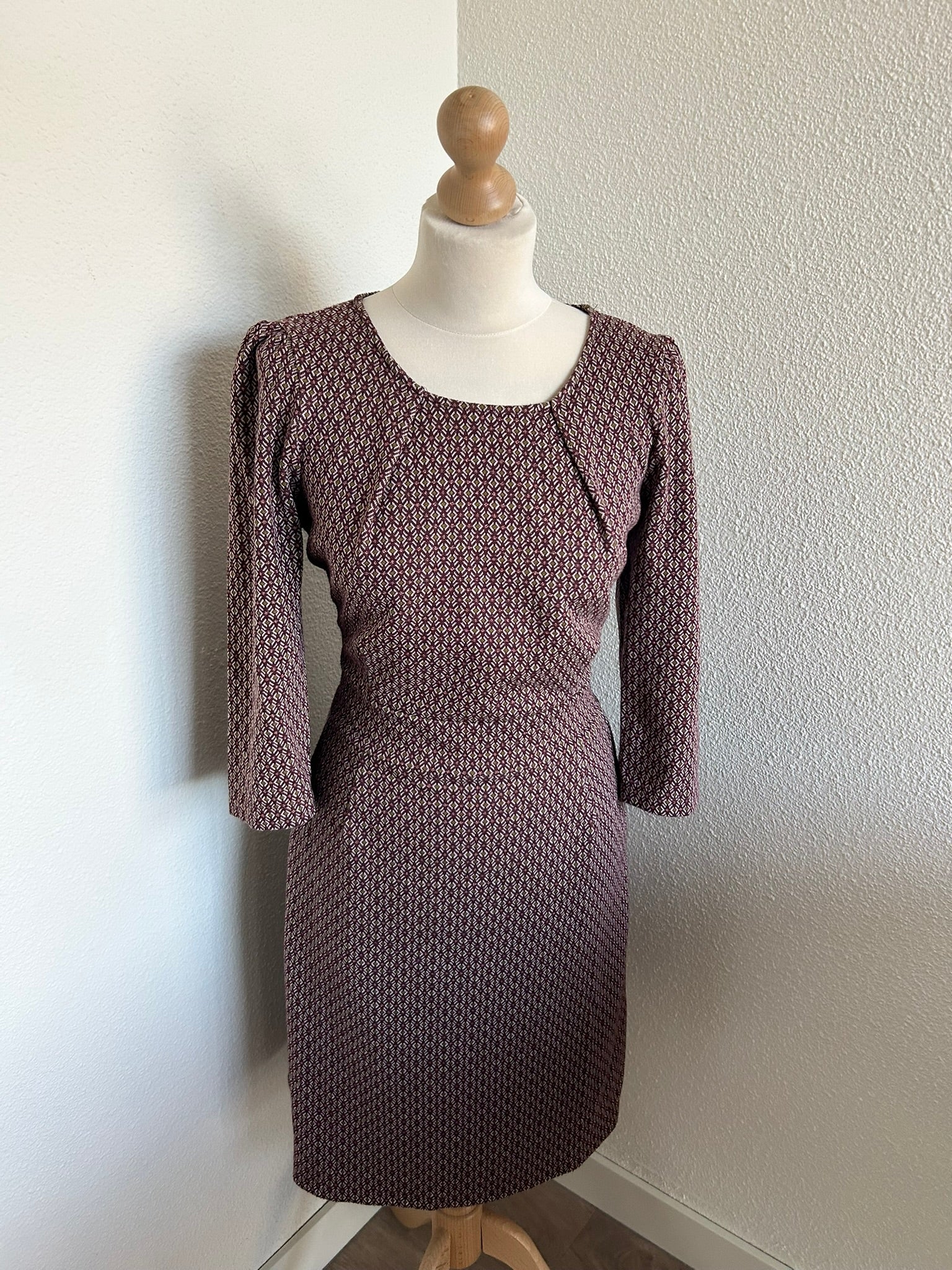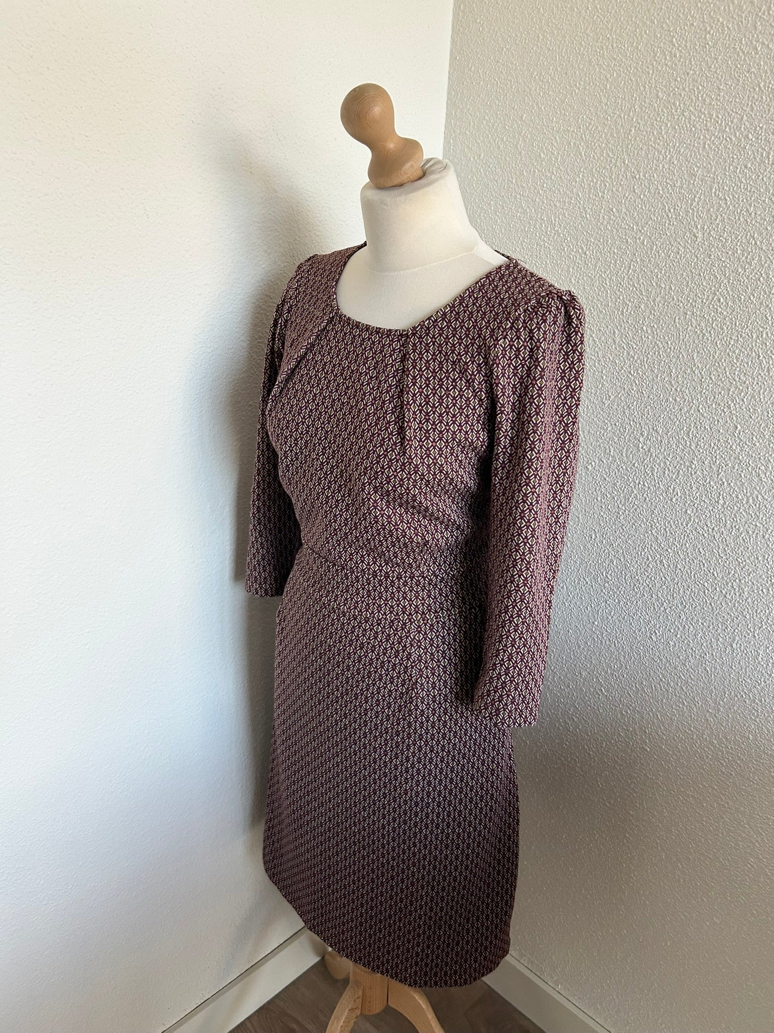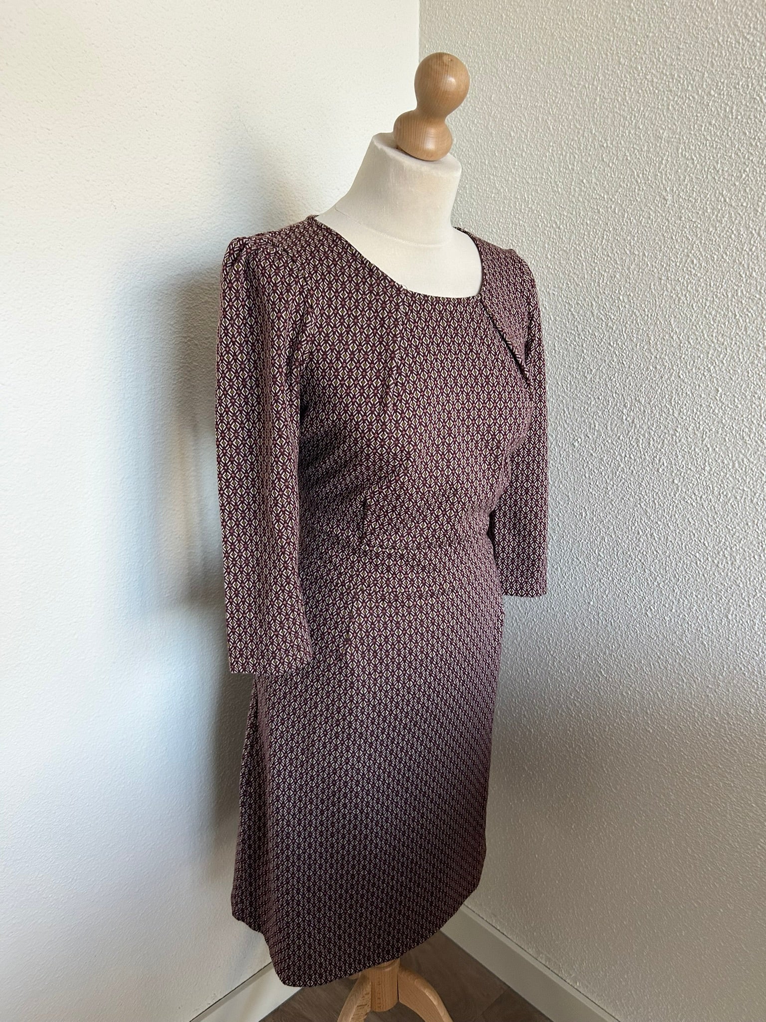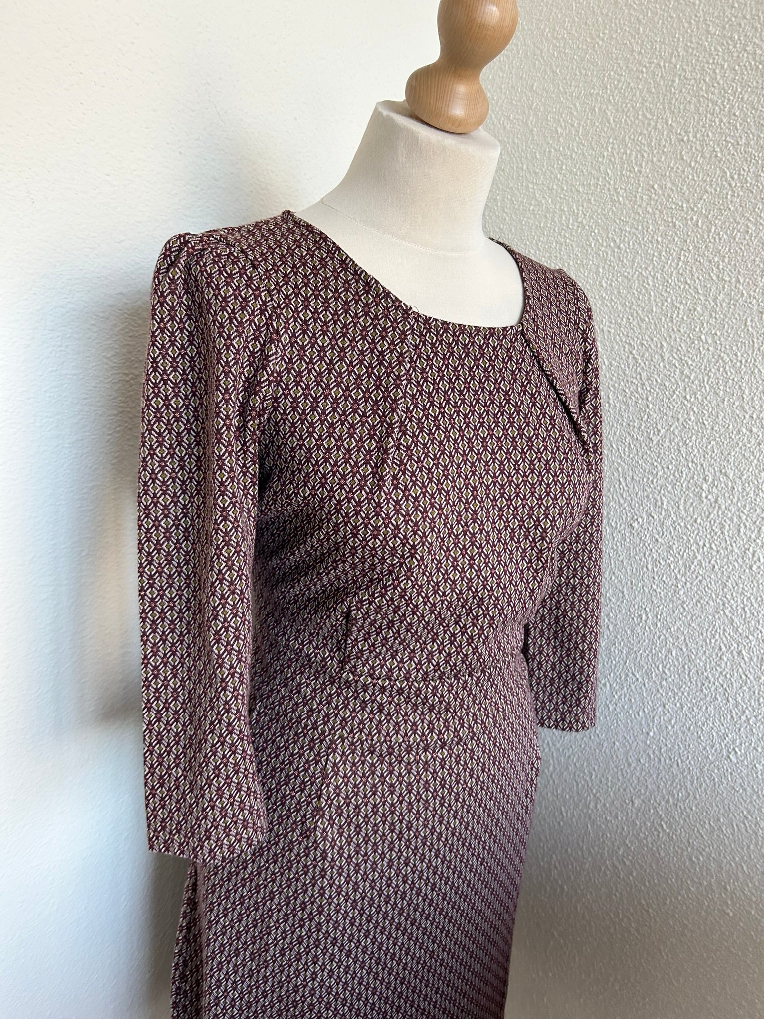 - Mooie ronde halslijn met plooien, lange mouwen, getailleerd met tailleband, steekzakken