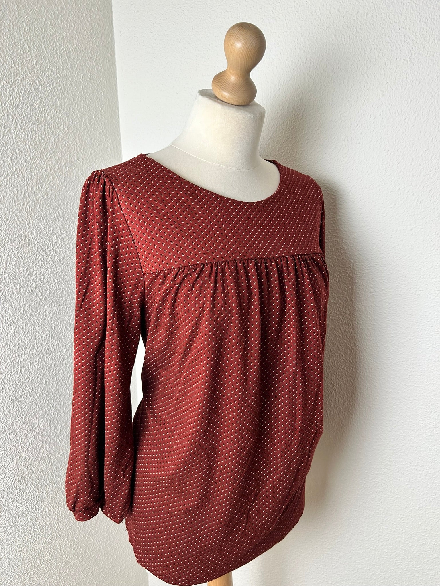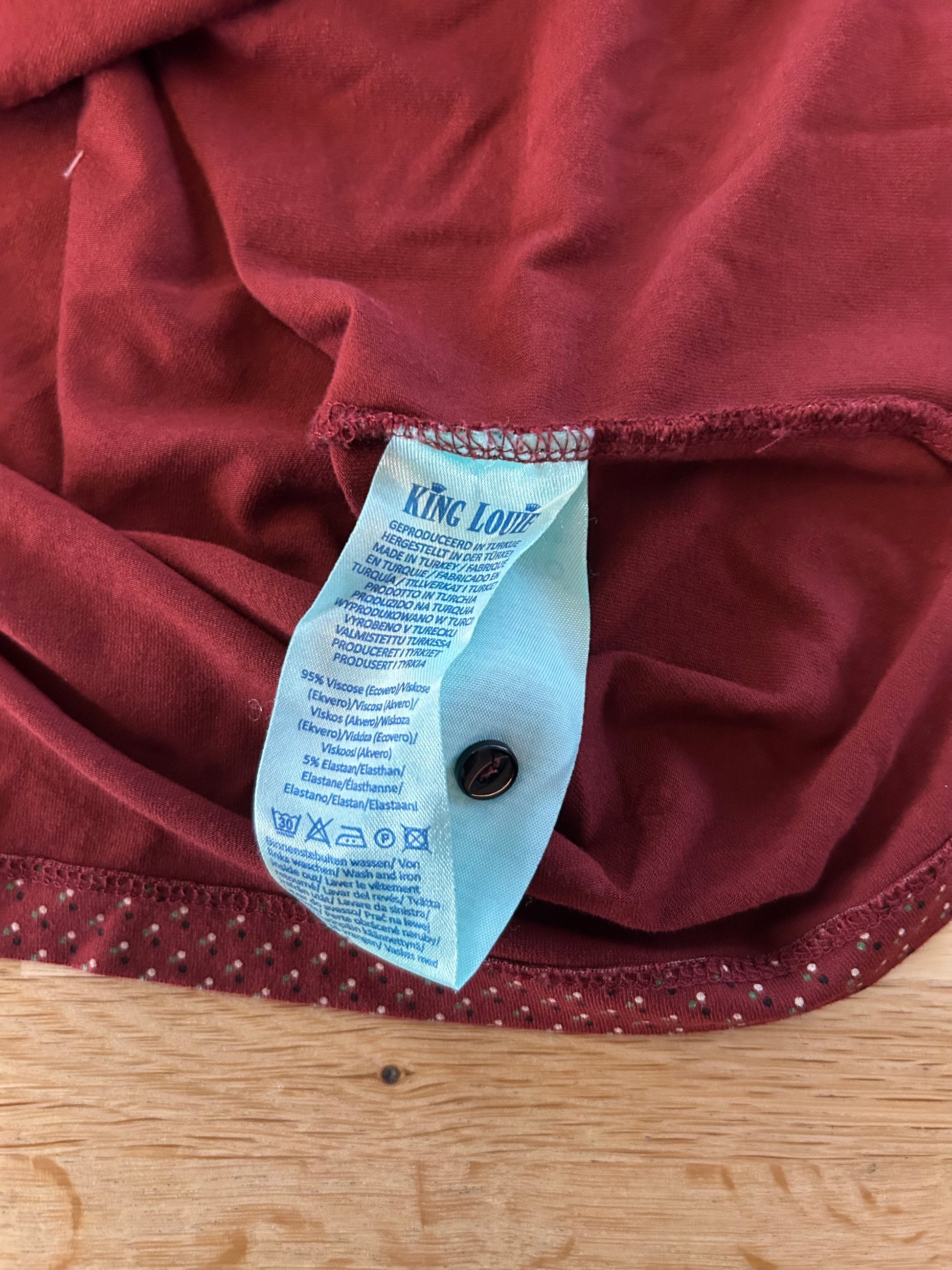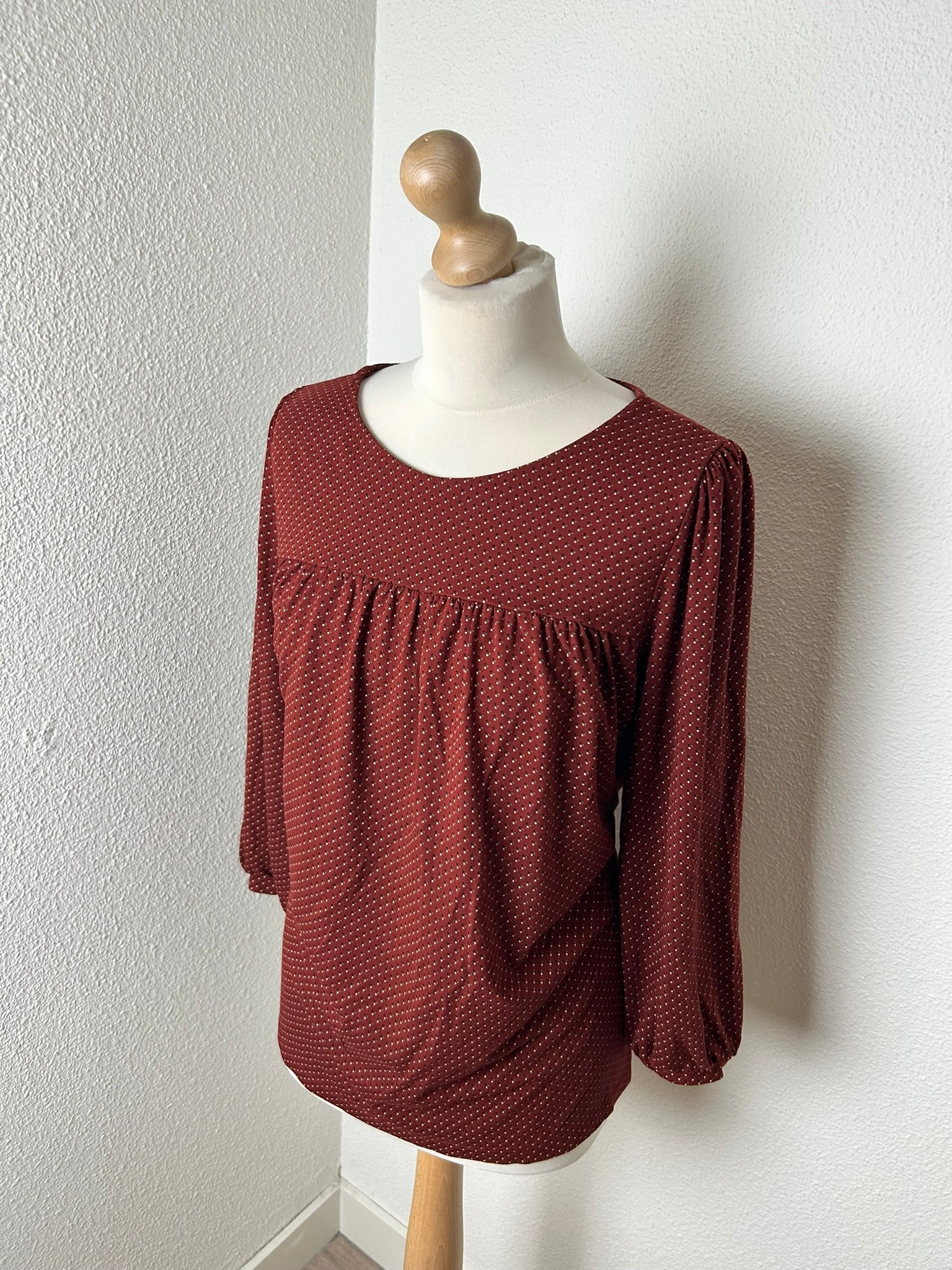 - Wijnrood met lieve stipjes print in creme wit groen en zwart