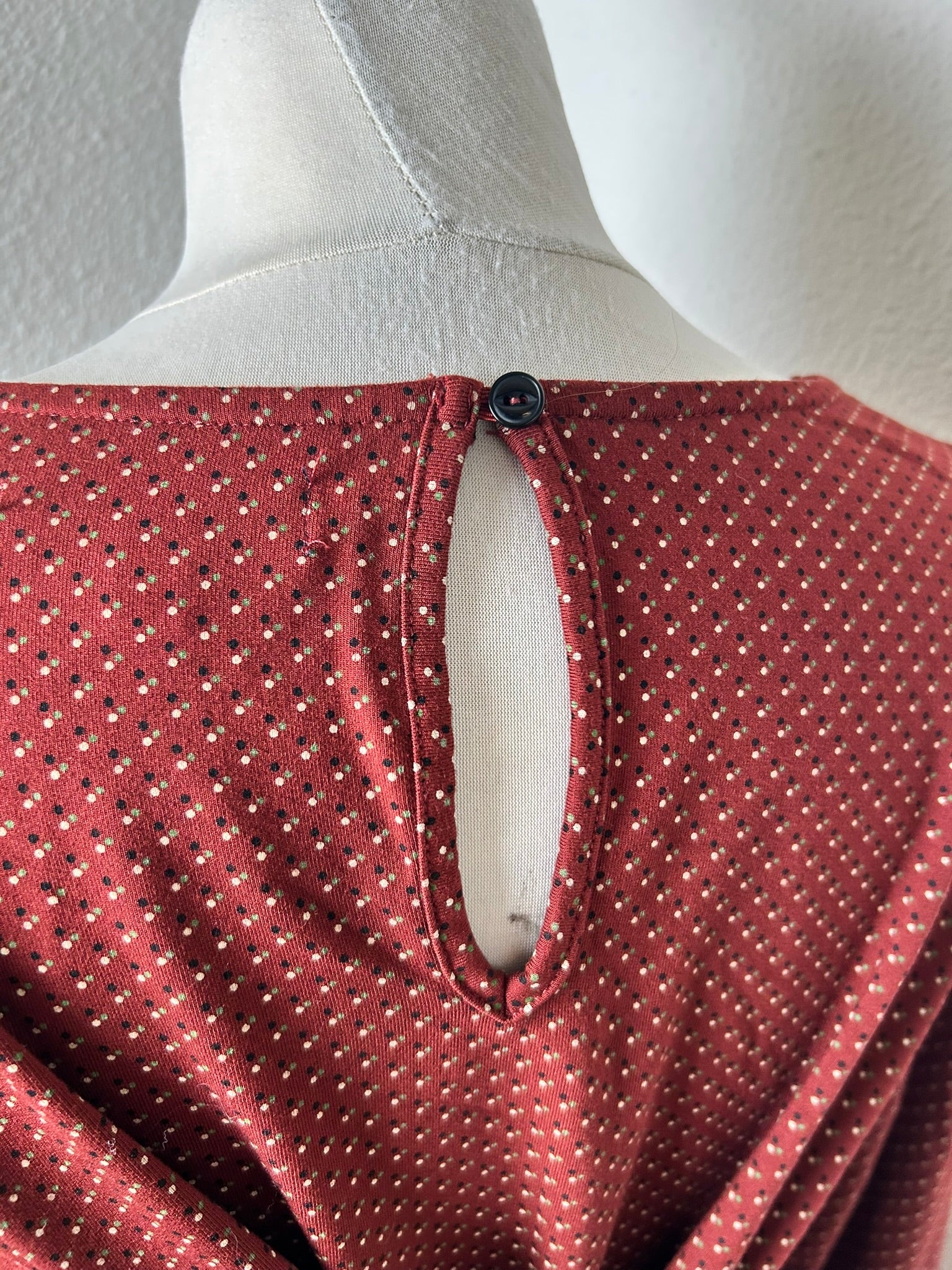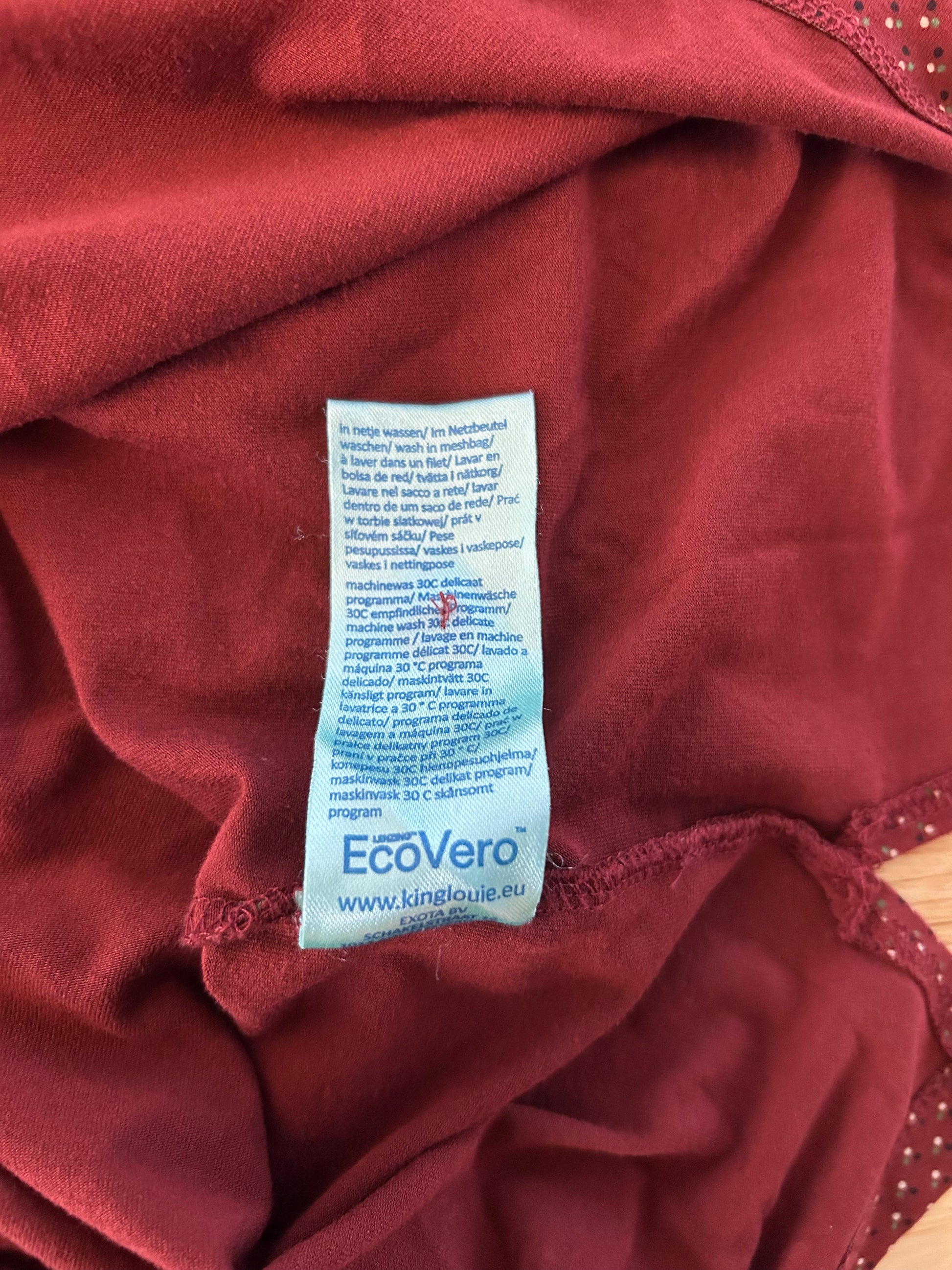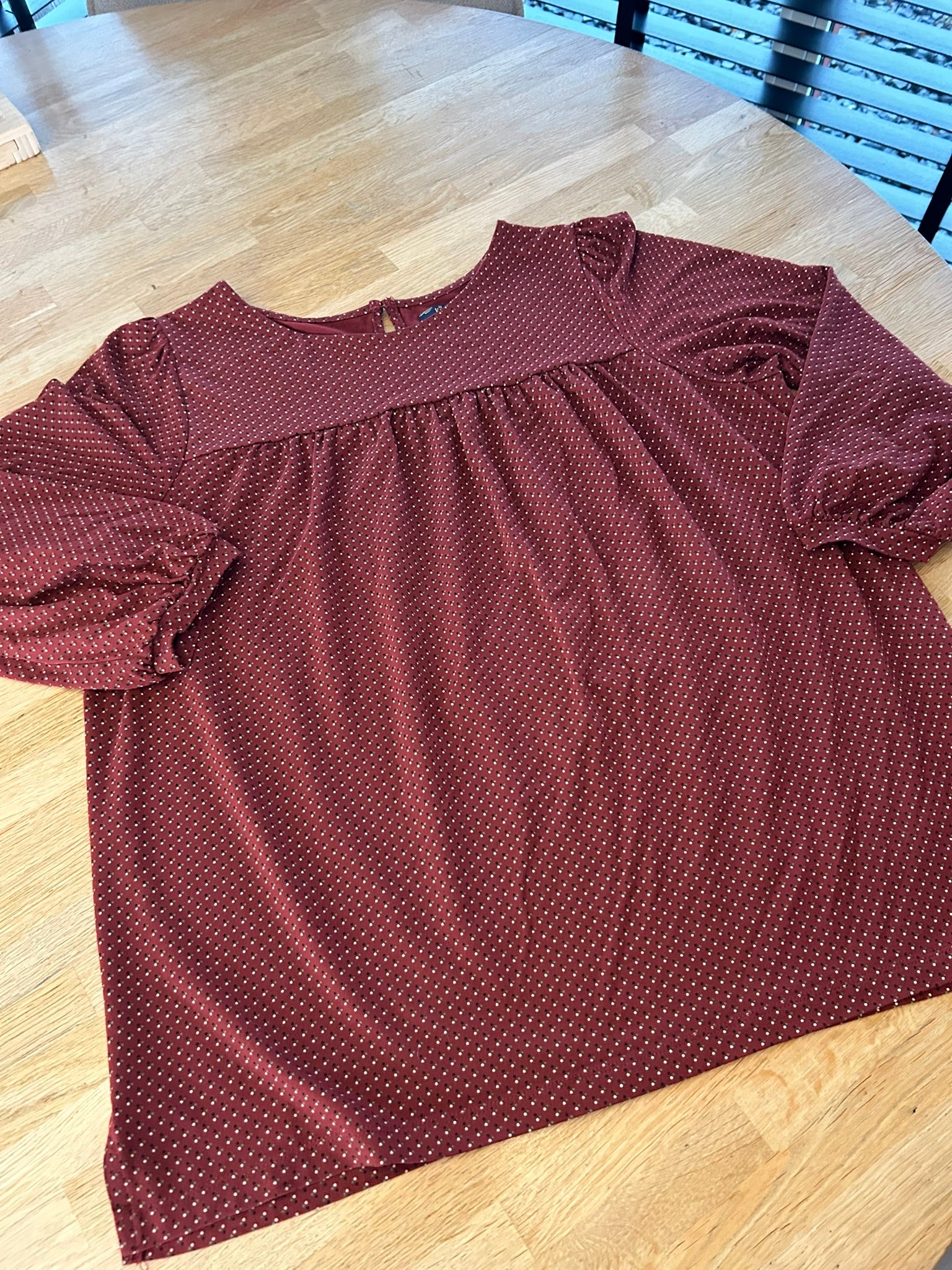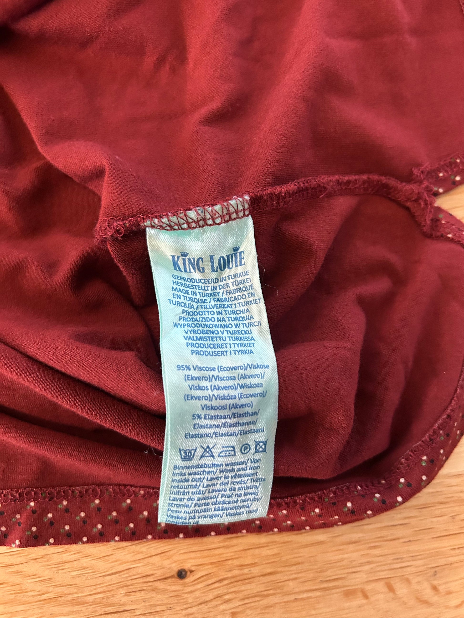 - Wijnrood met lieve stipjes print in creme wit groen en zwart