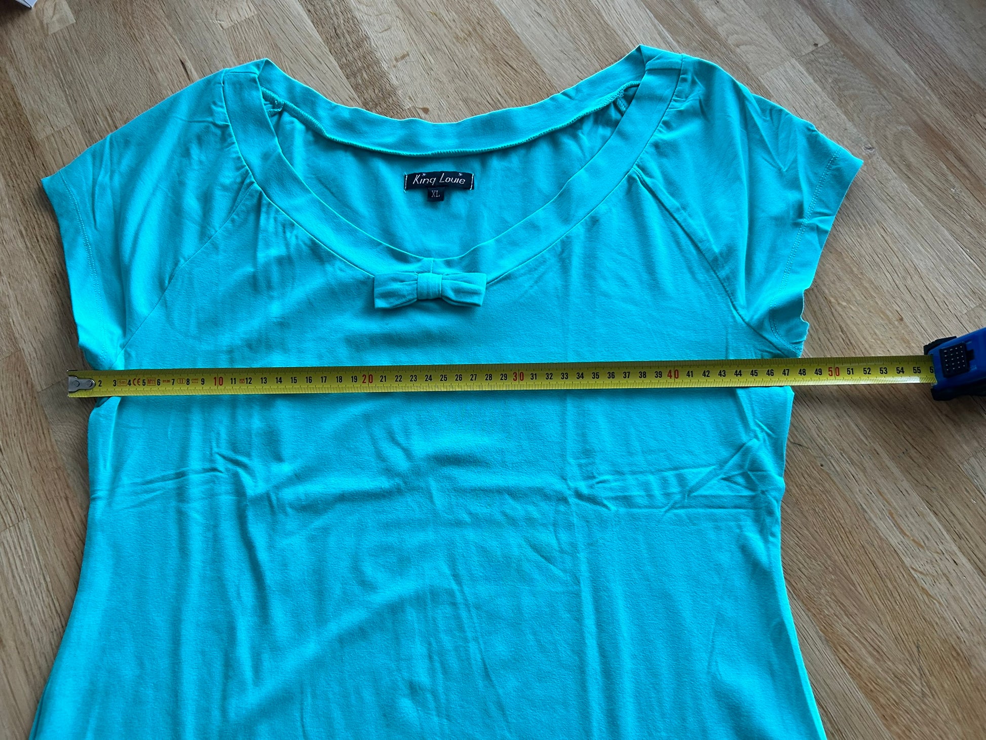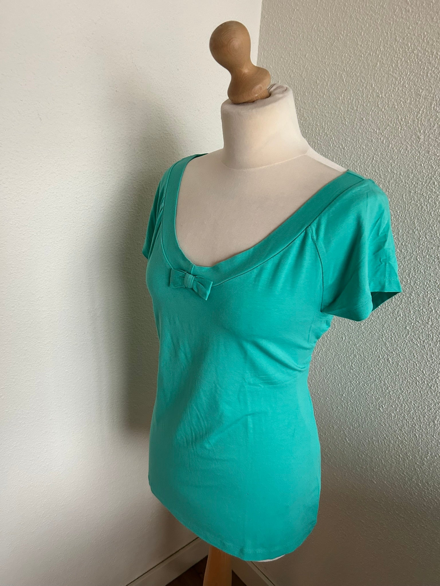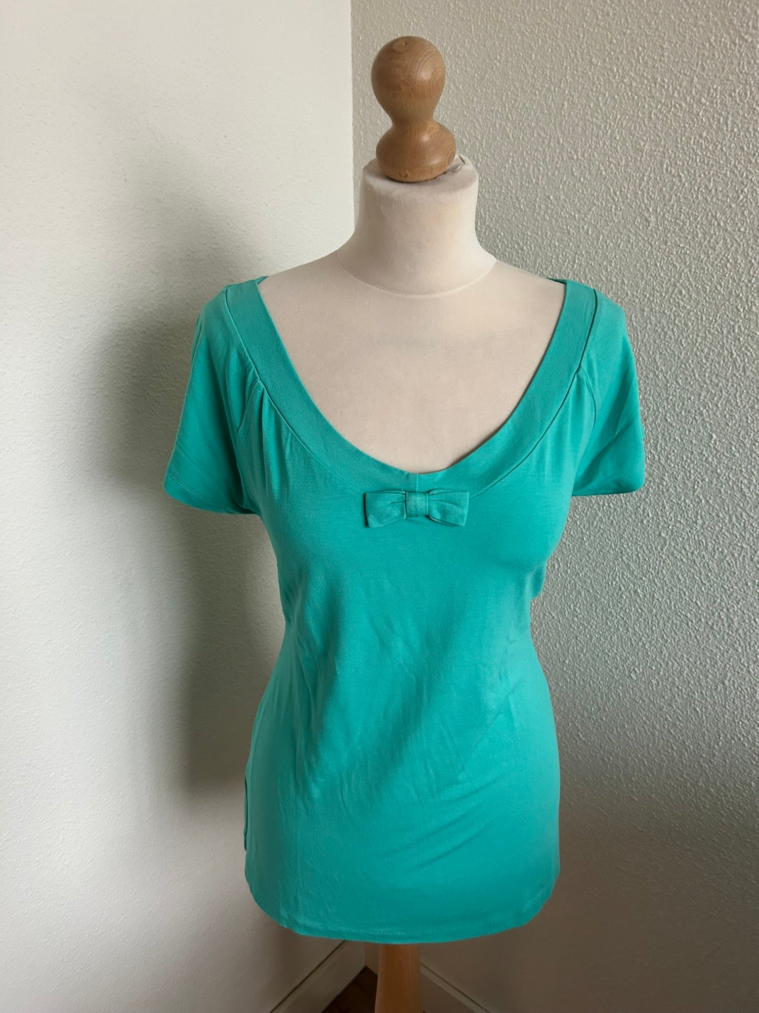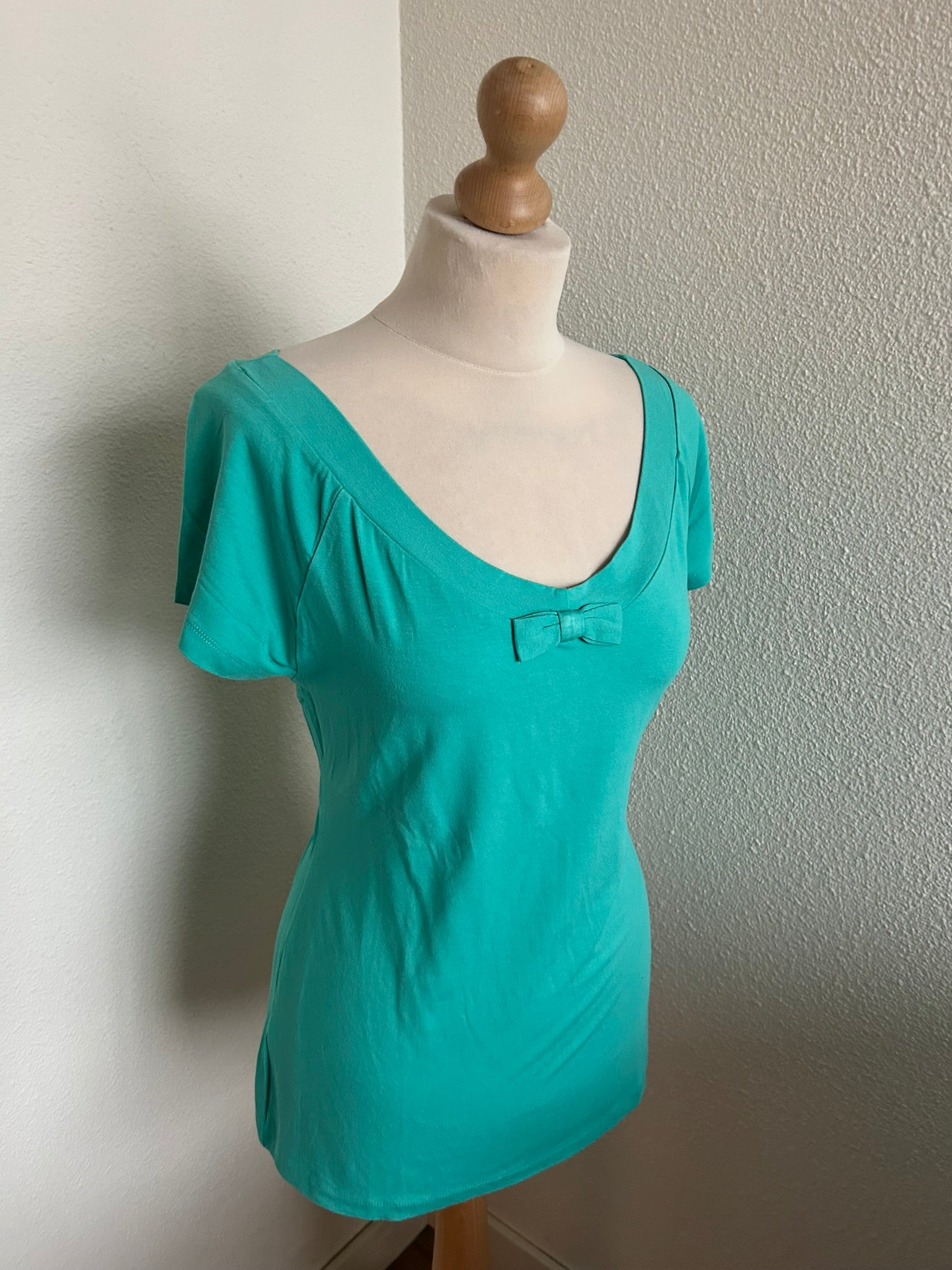 - Prachtige retro turquoise lichtblauwe top