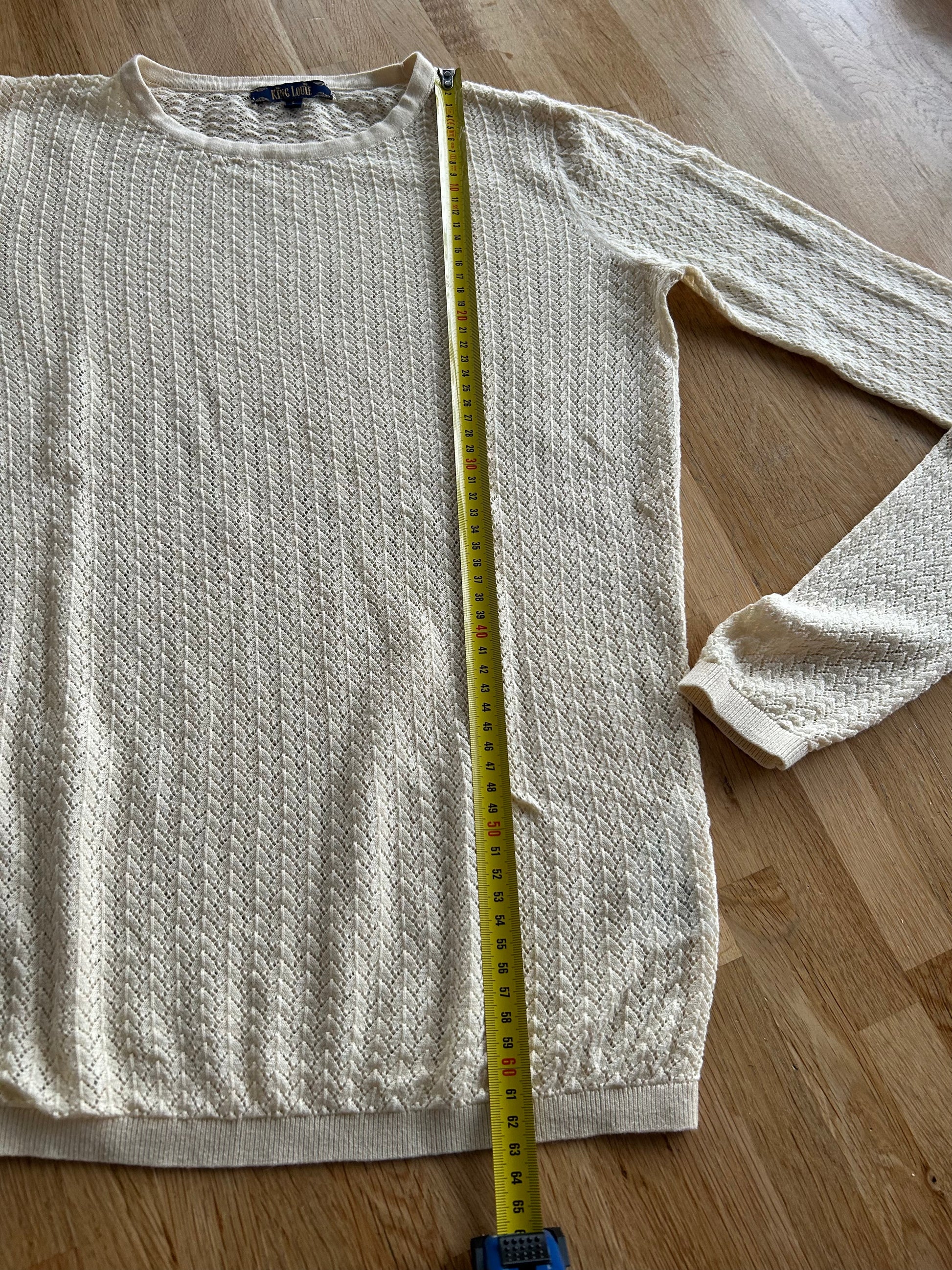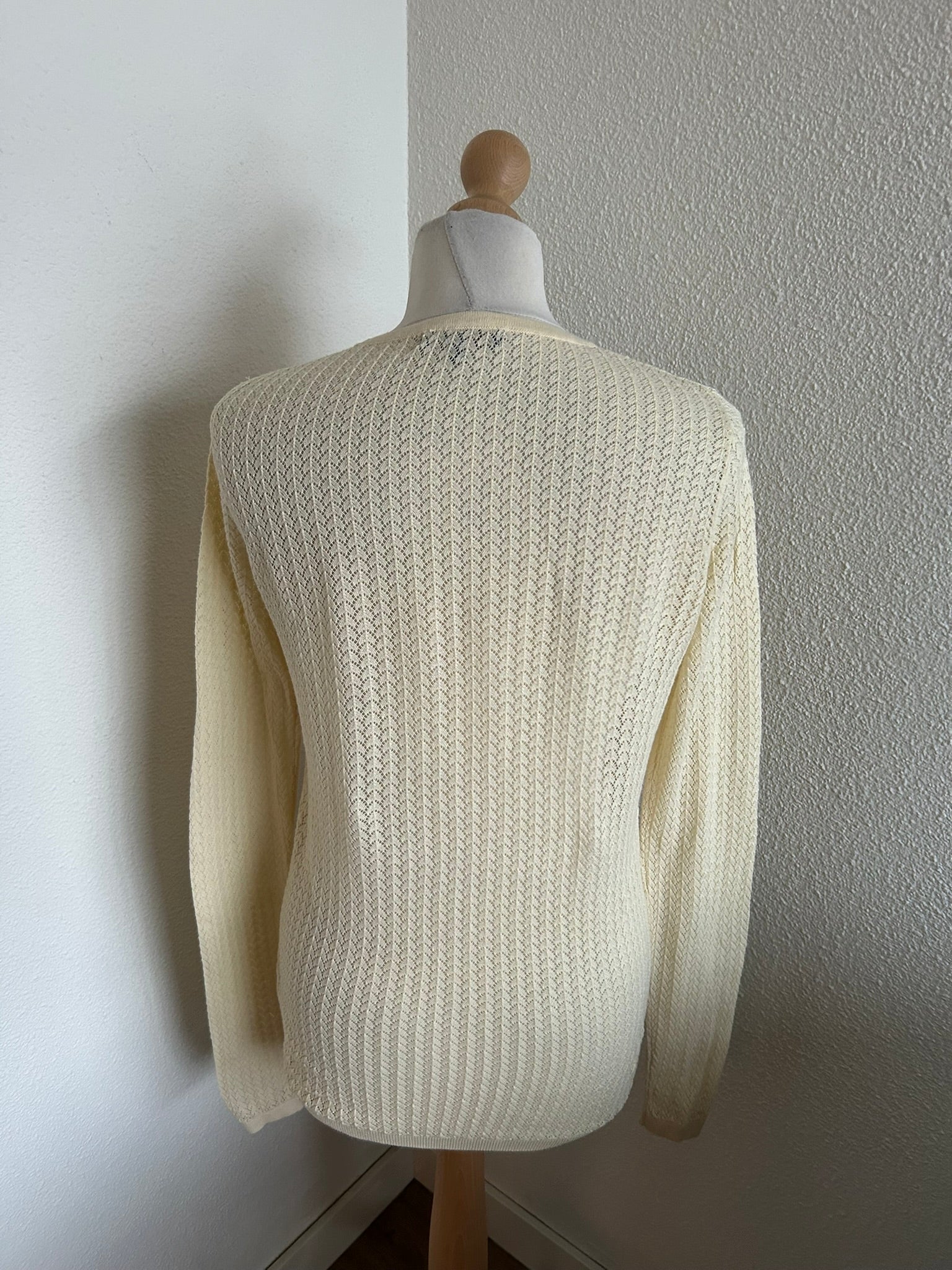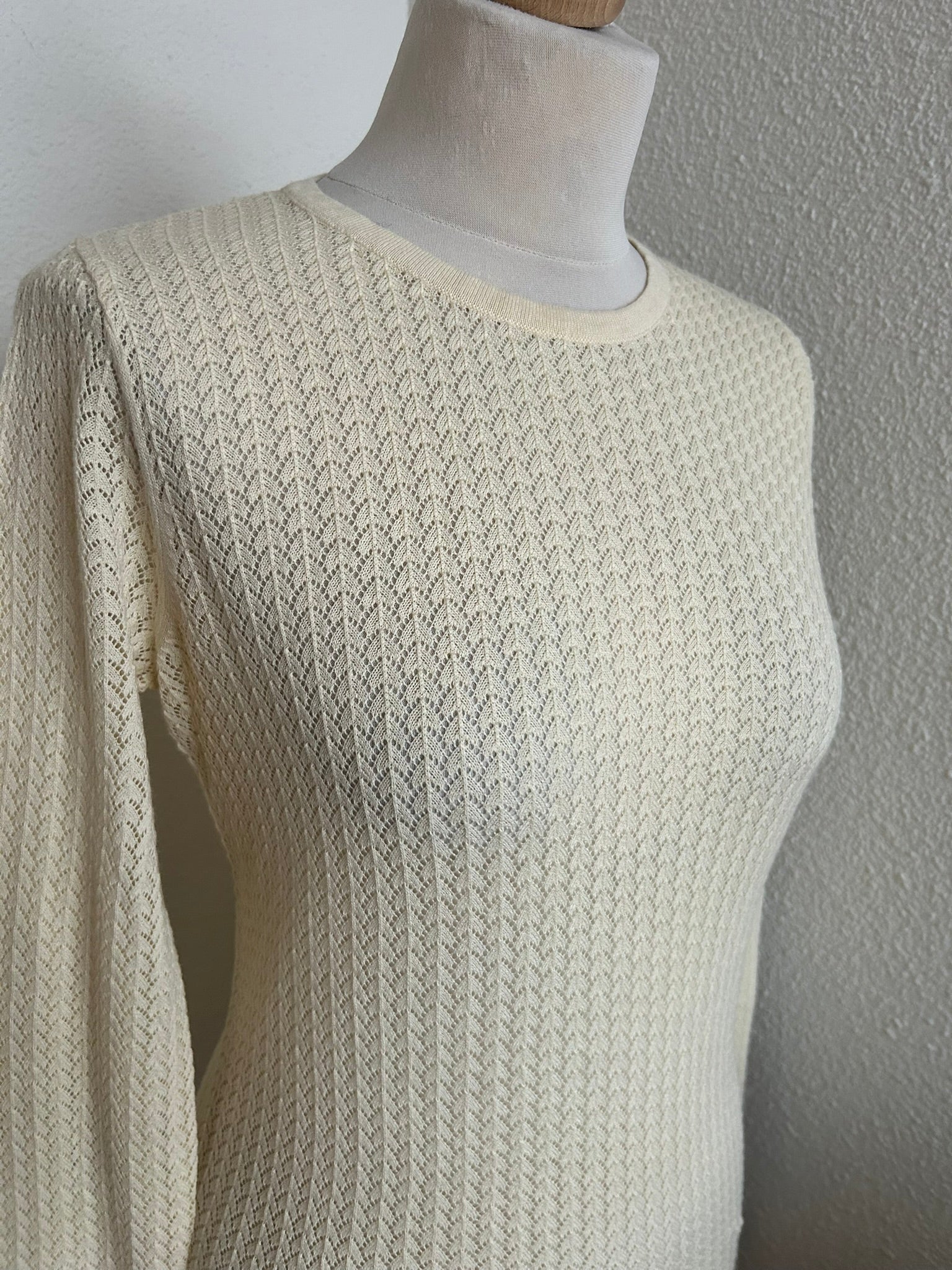 - Prachtige retro opengewerkte creme witte trui top