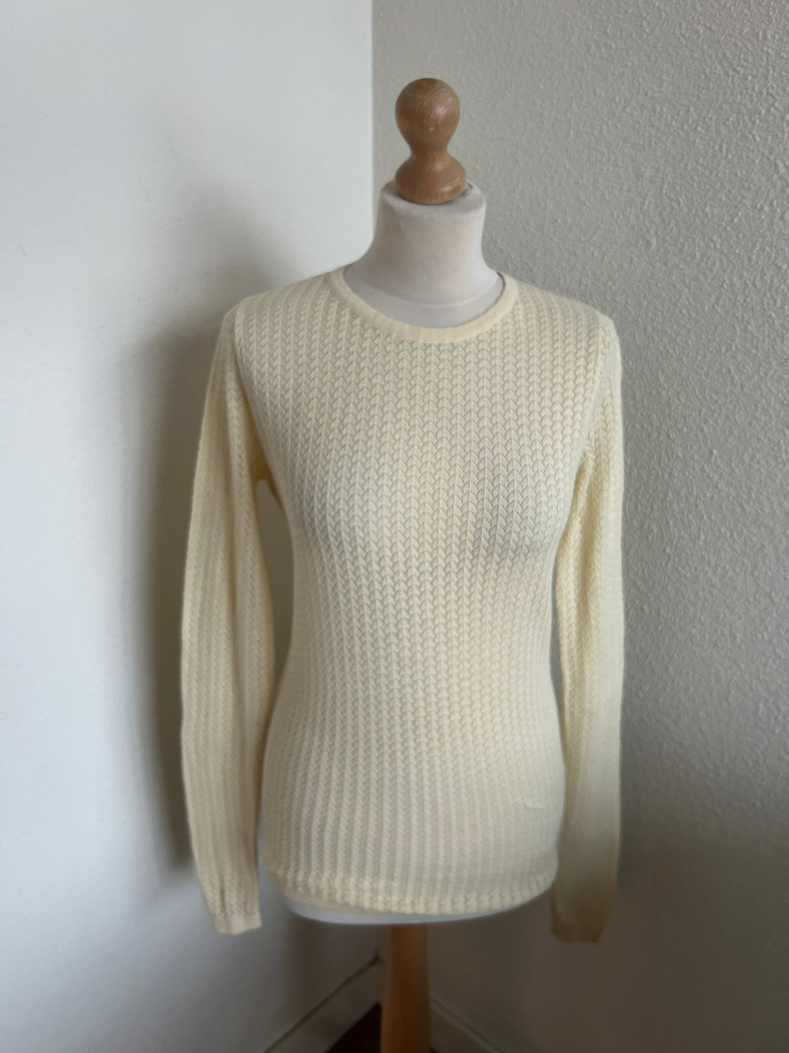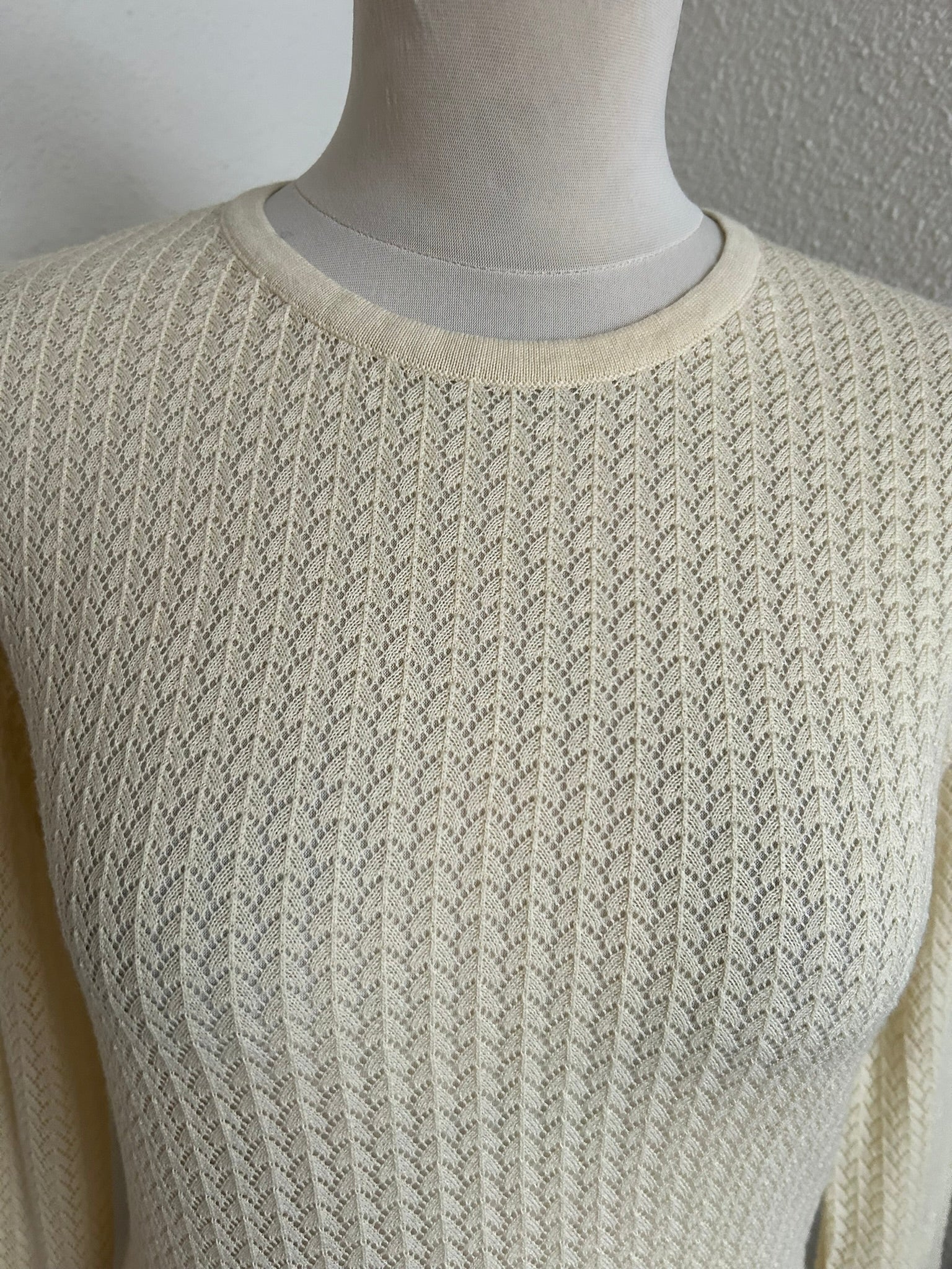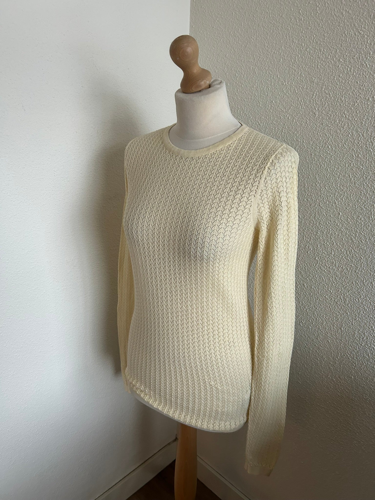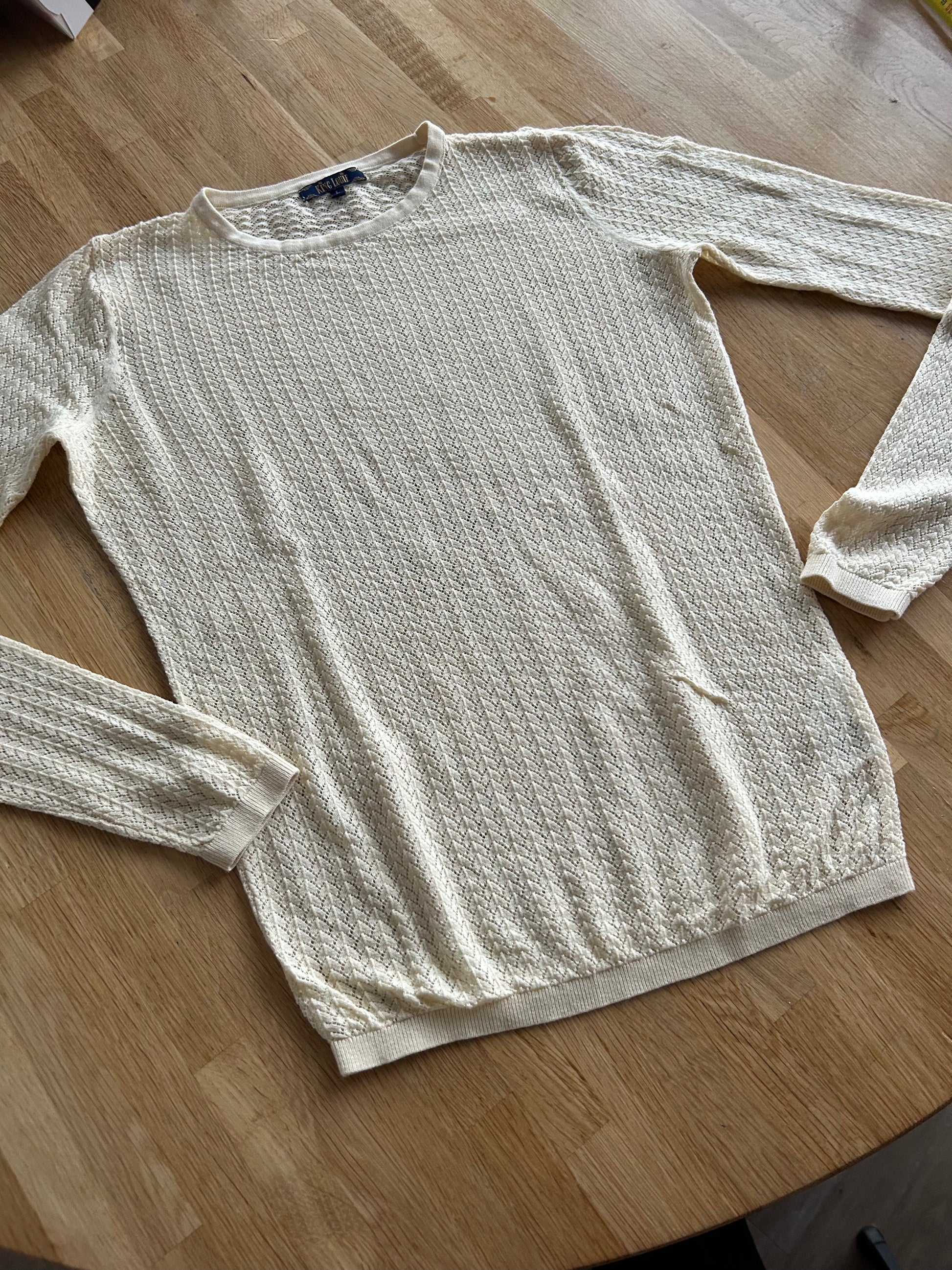 - Prachtige retro opengewerkte creme witte trui top