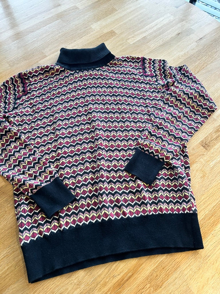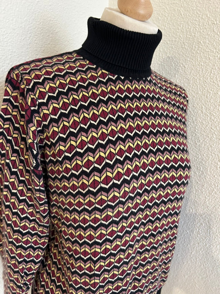 - Leuke halslijn met rolkraag/col, lange wat pof mouwen