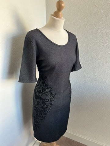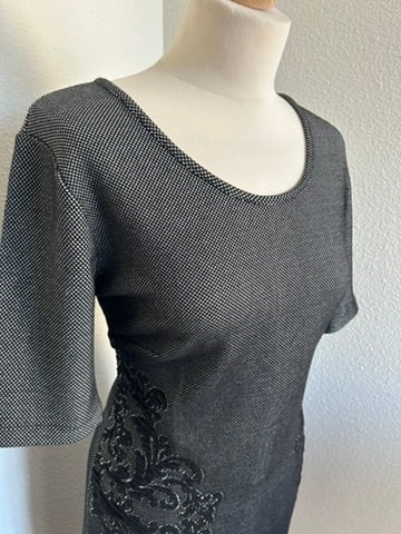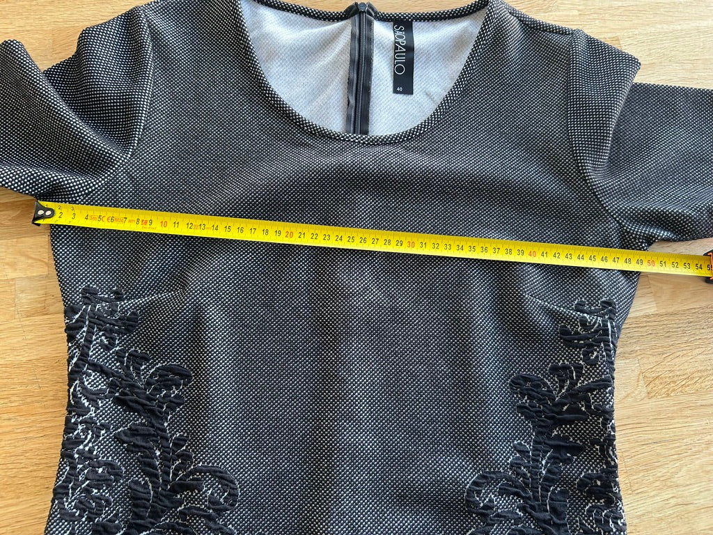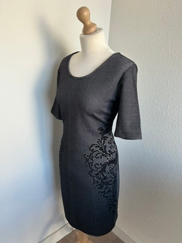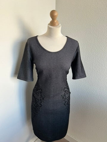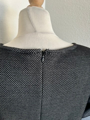 - Mooie ronde halslijn met rits op de rug, korte mouwen, getailleerd