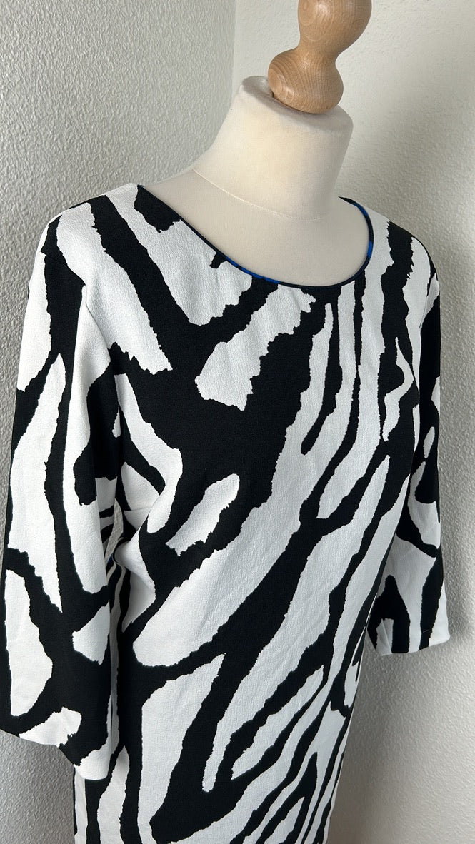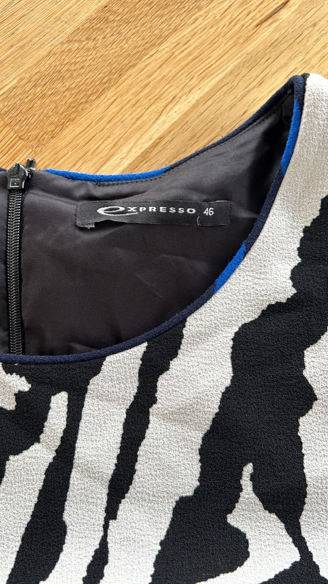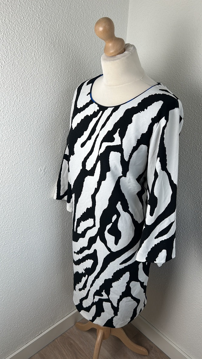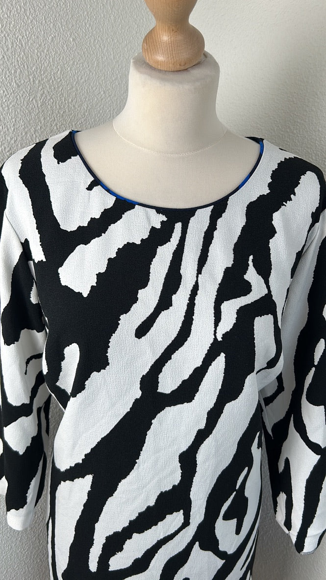 - Zwart witte beetje zebra strepen met kobaltblauw op de rug