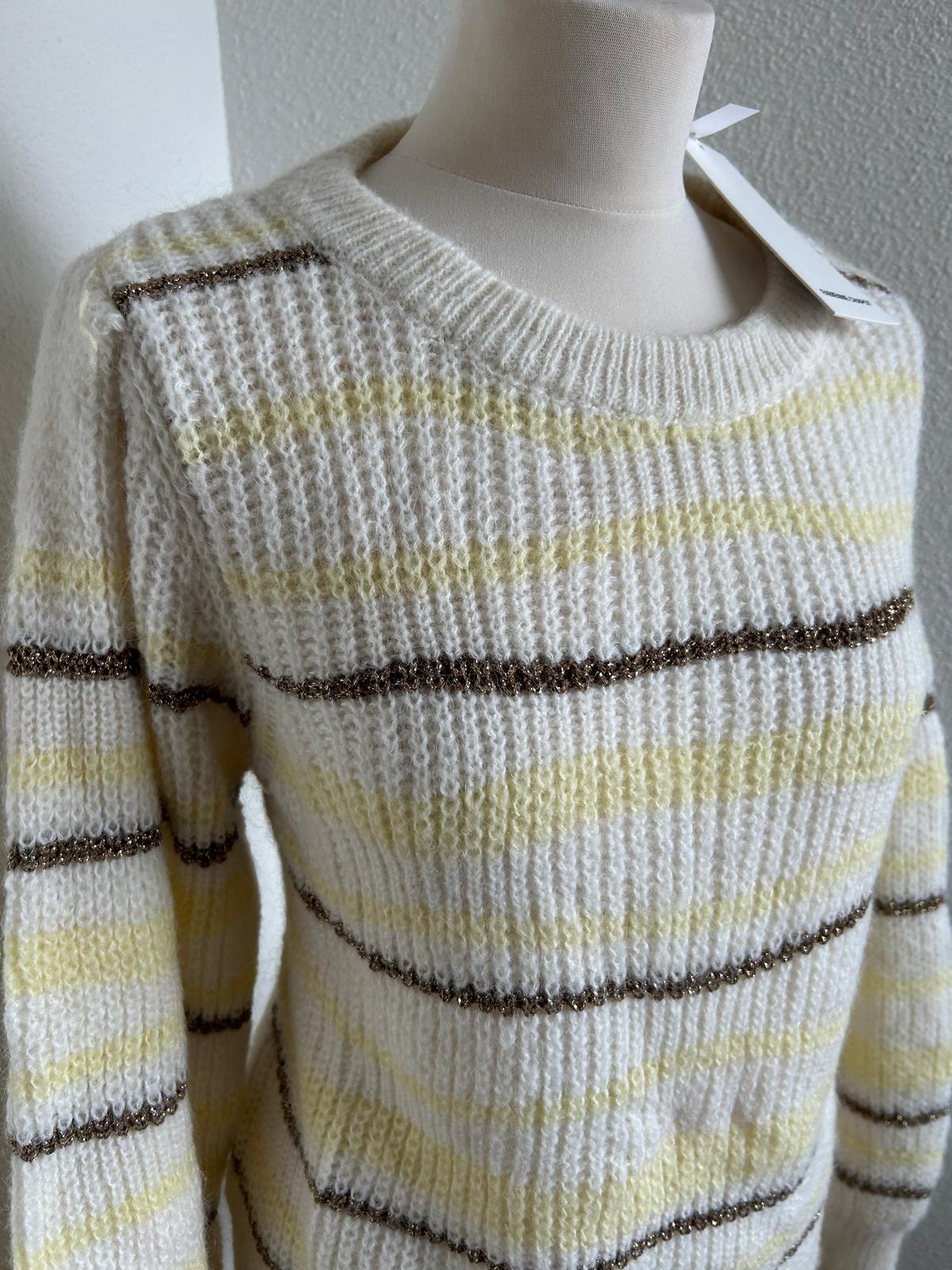 - Leuke retro trui in creme wit met geel en donker gouden strepen