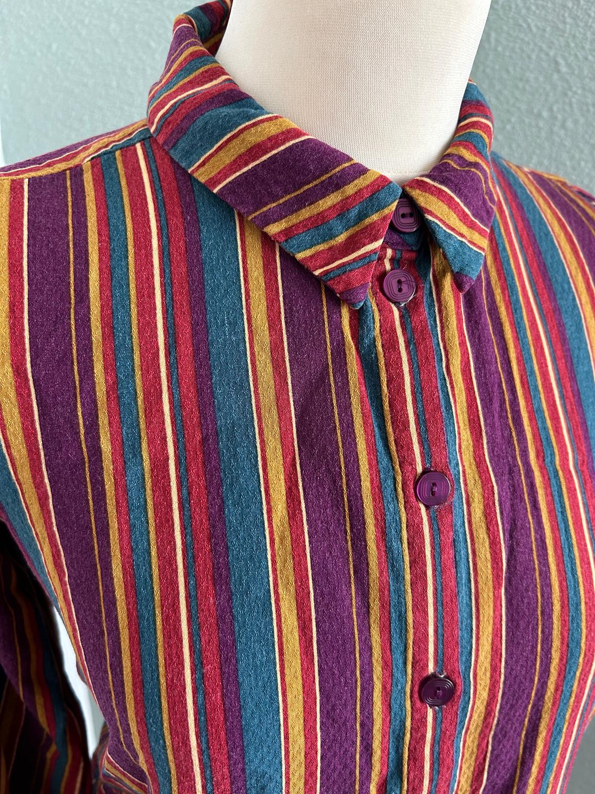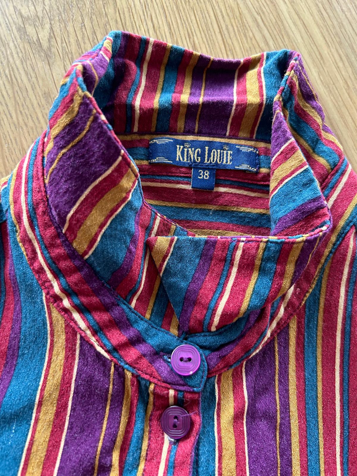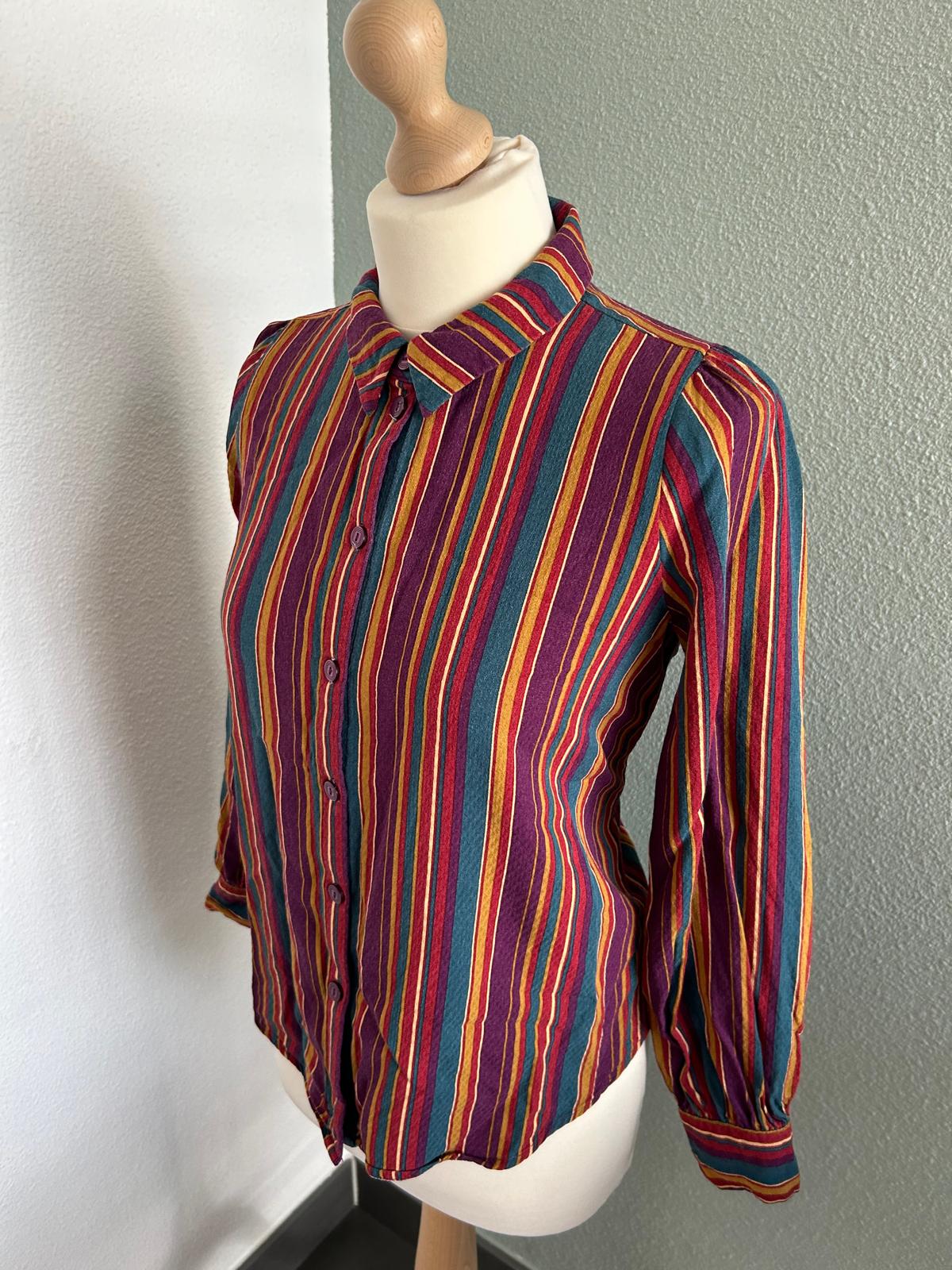 - Kraagje, lange mouwen, leuke paarse knoopjes