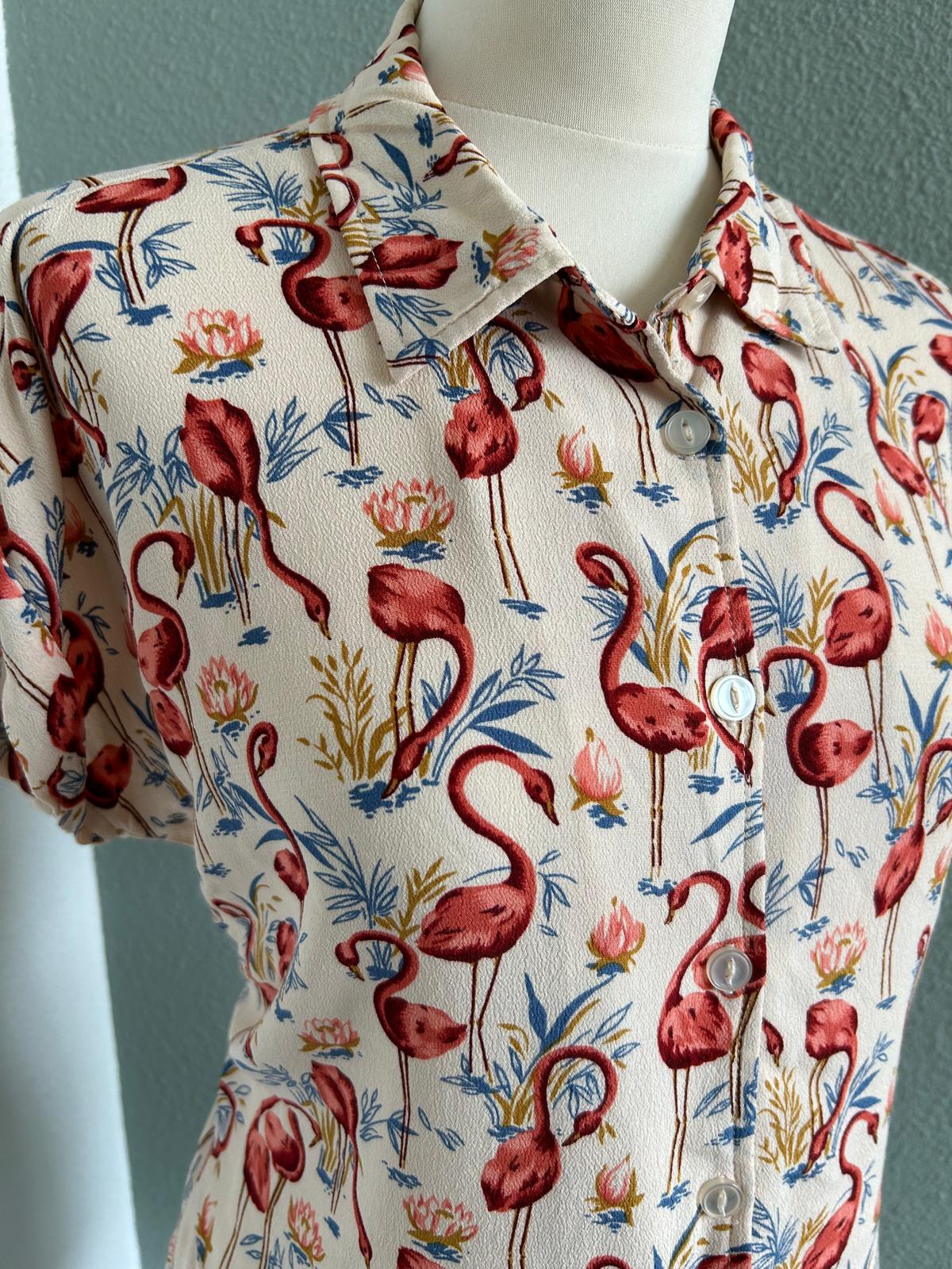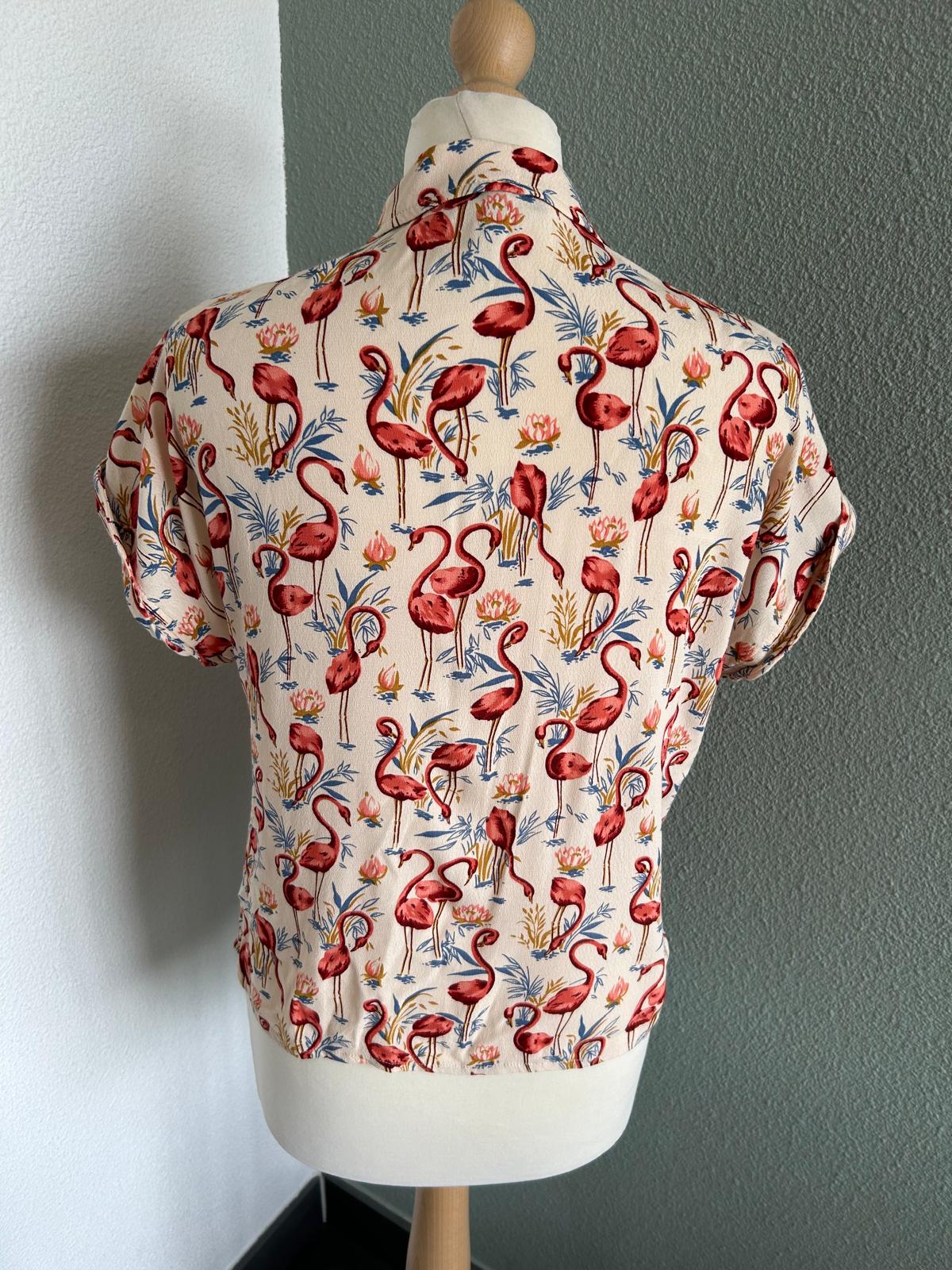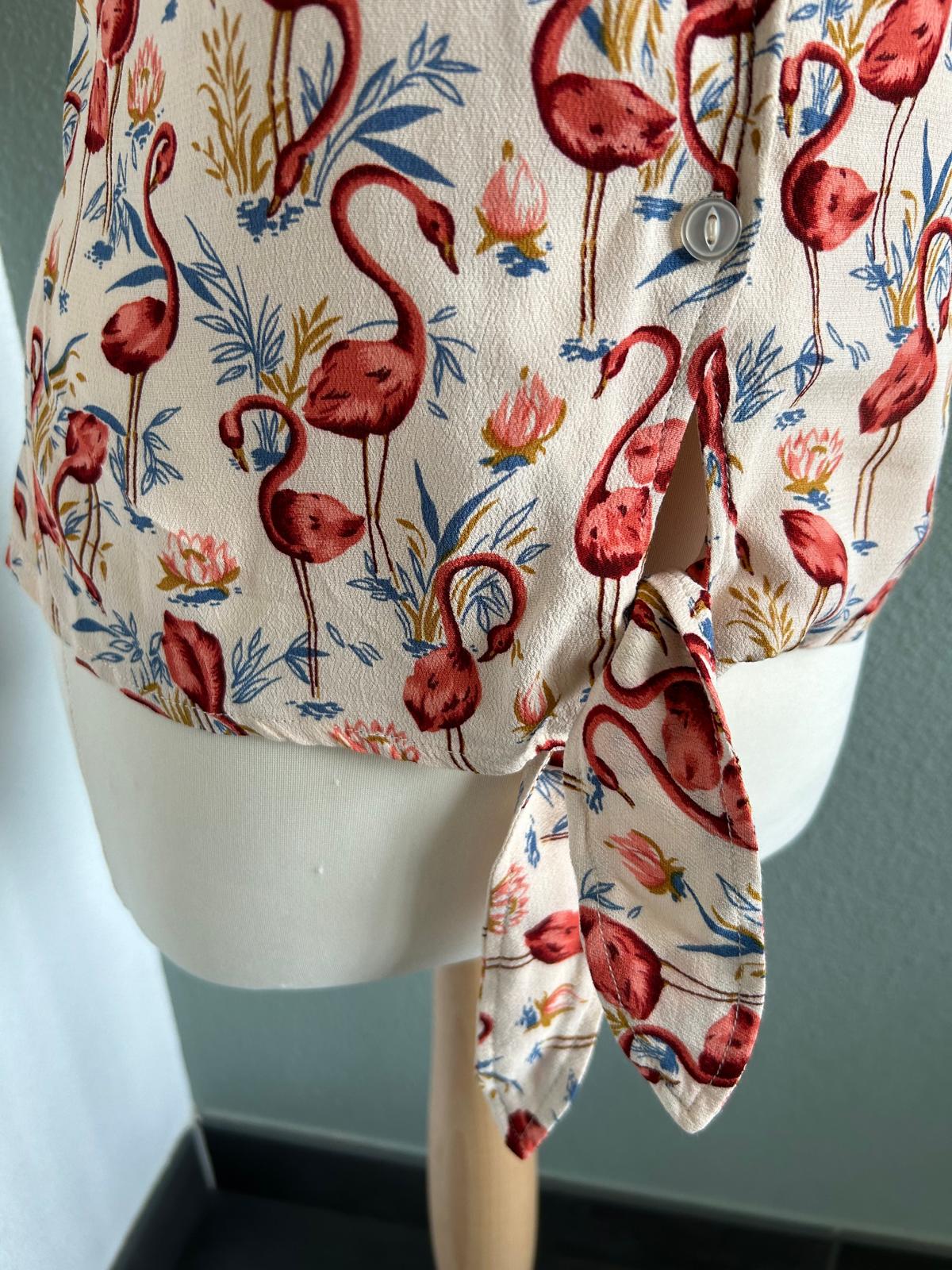 - Kraagje, korte mouwen, leuke knoopjes, knoop detail onderin de top