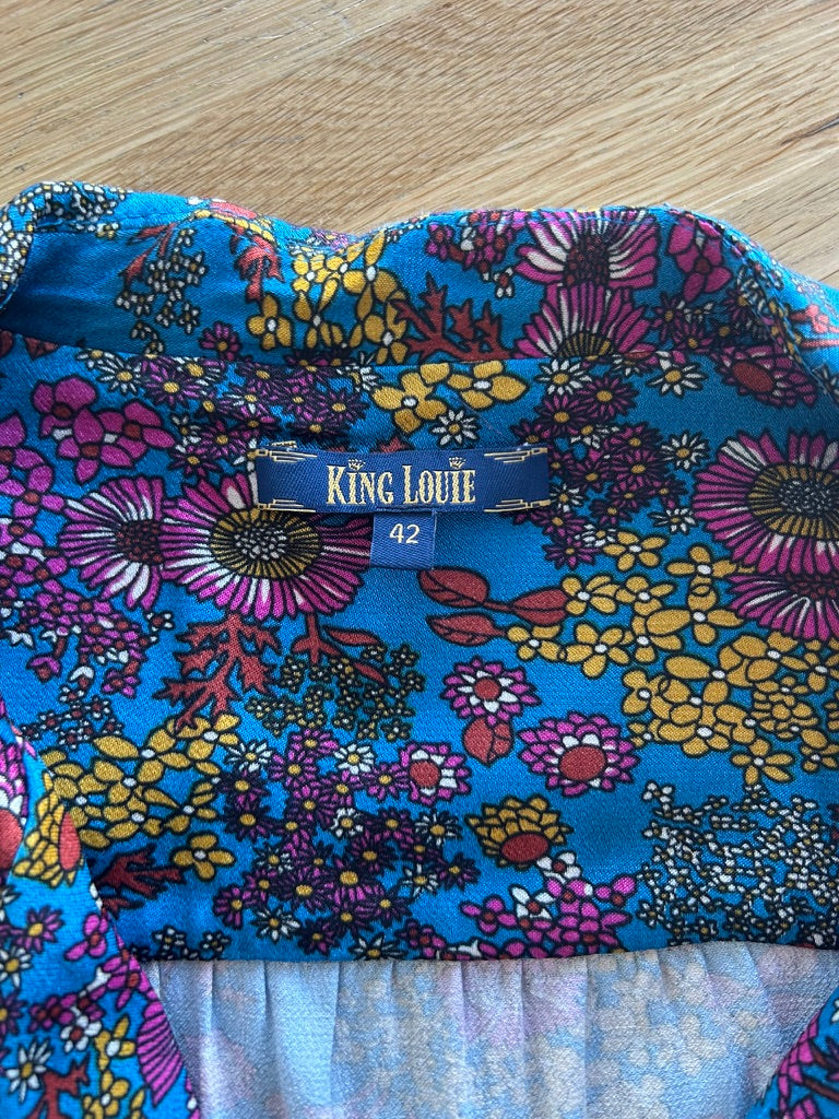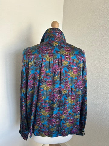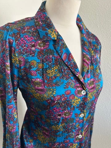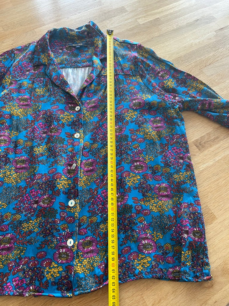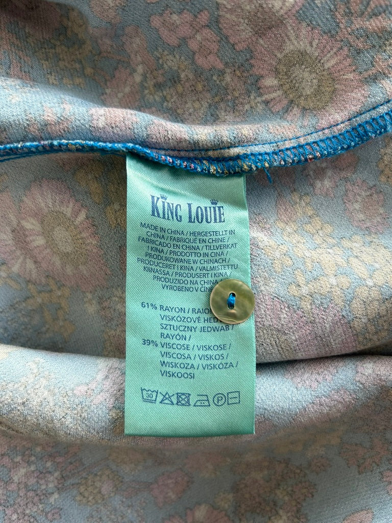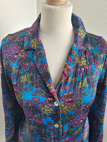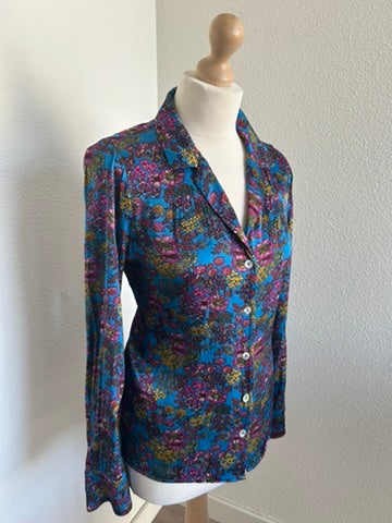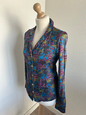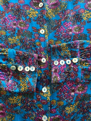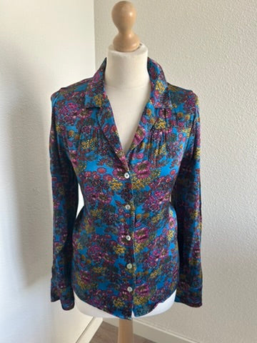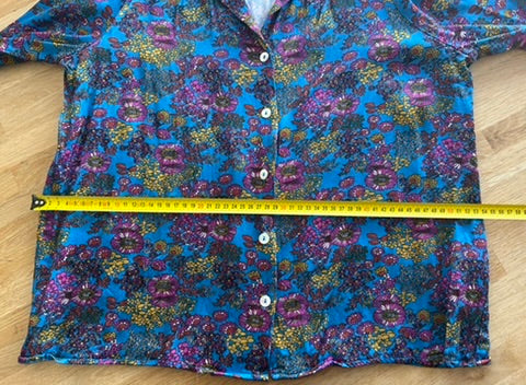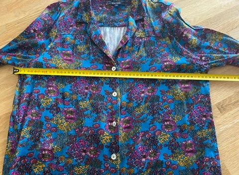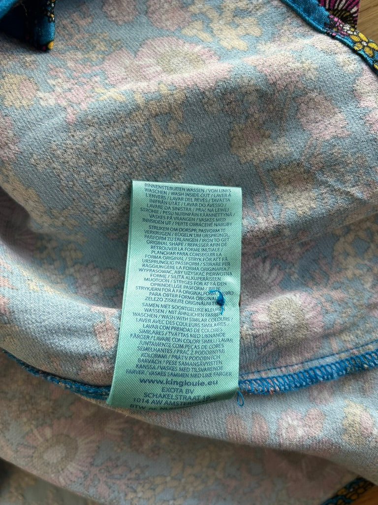 - Prachtige blauwe kleur met paarse mostergele en zwarte bloemen print
