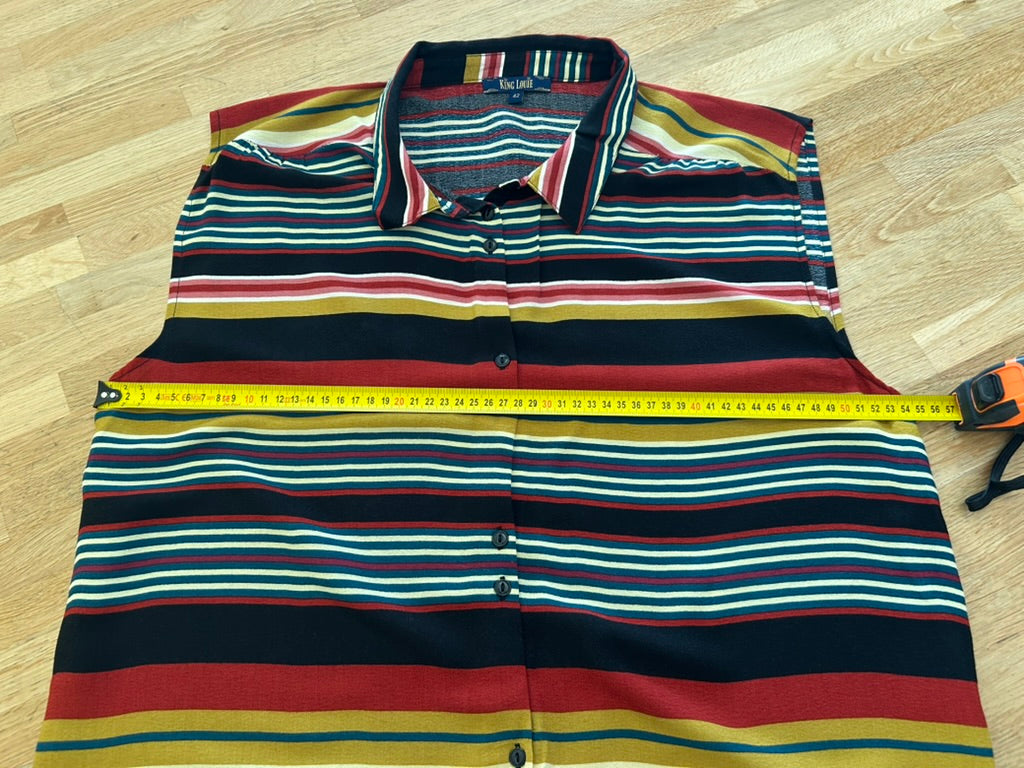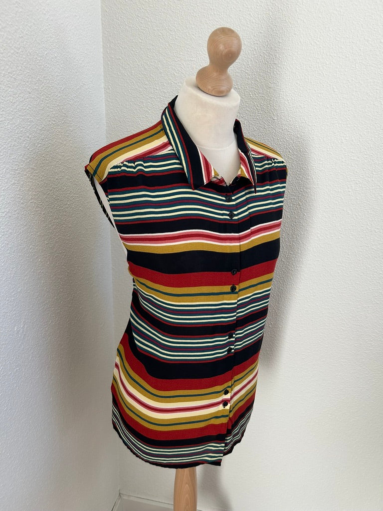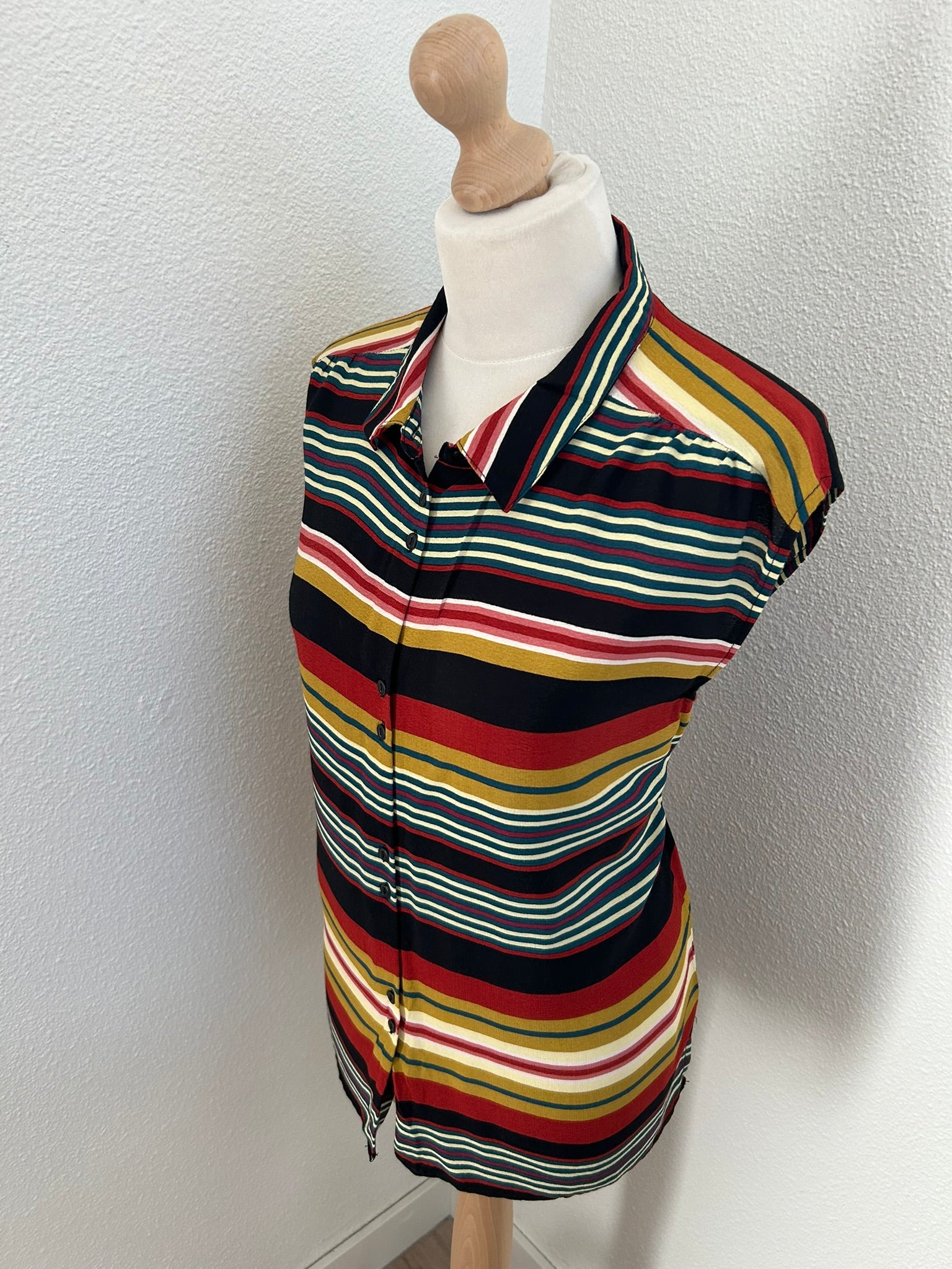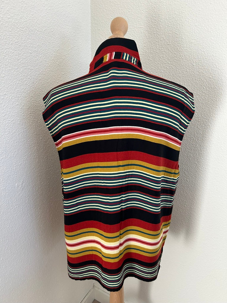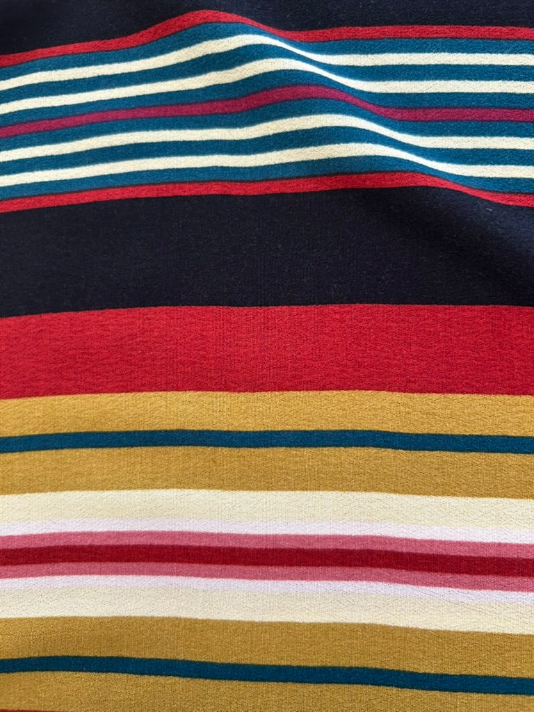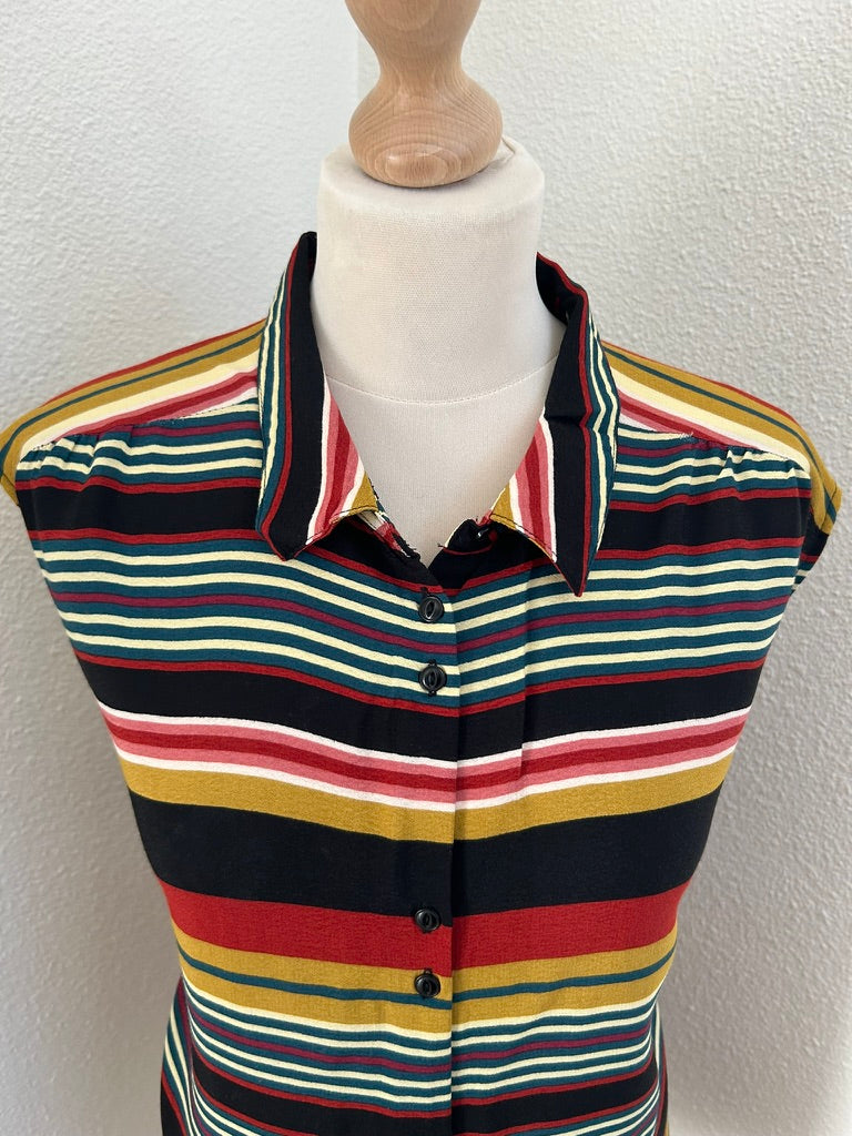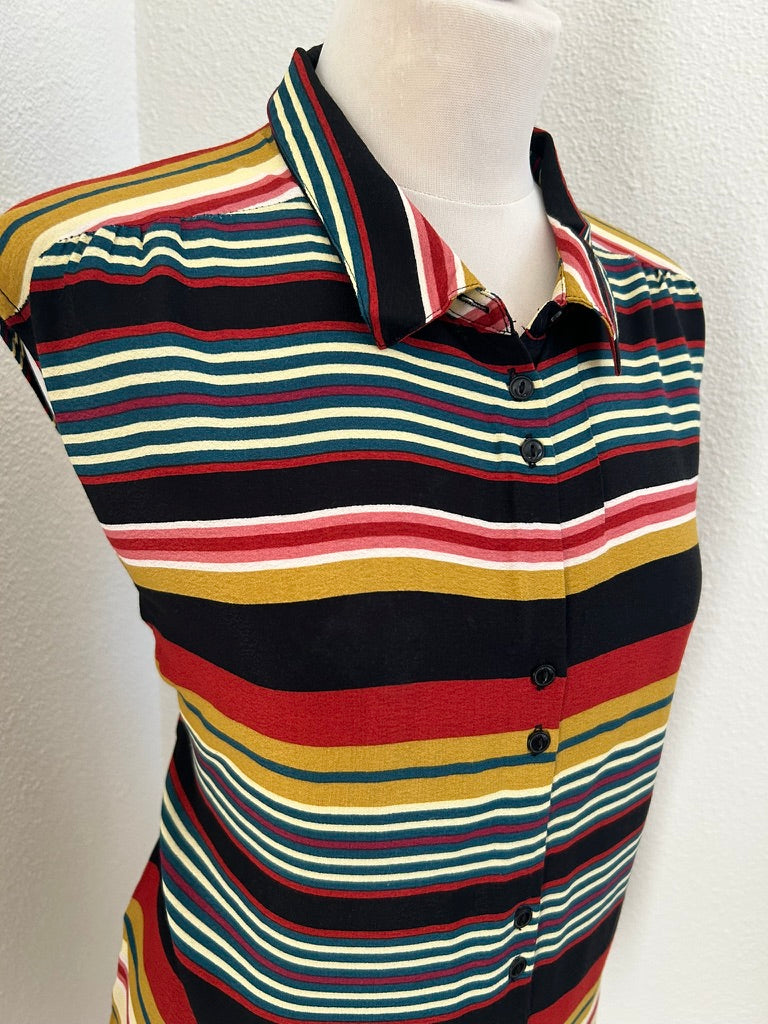 - Gestreepte retro print in zwart rood mosterd geel creme wit en blauw