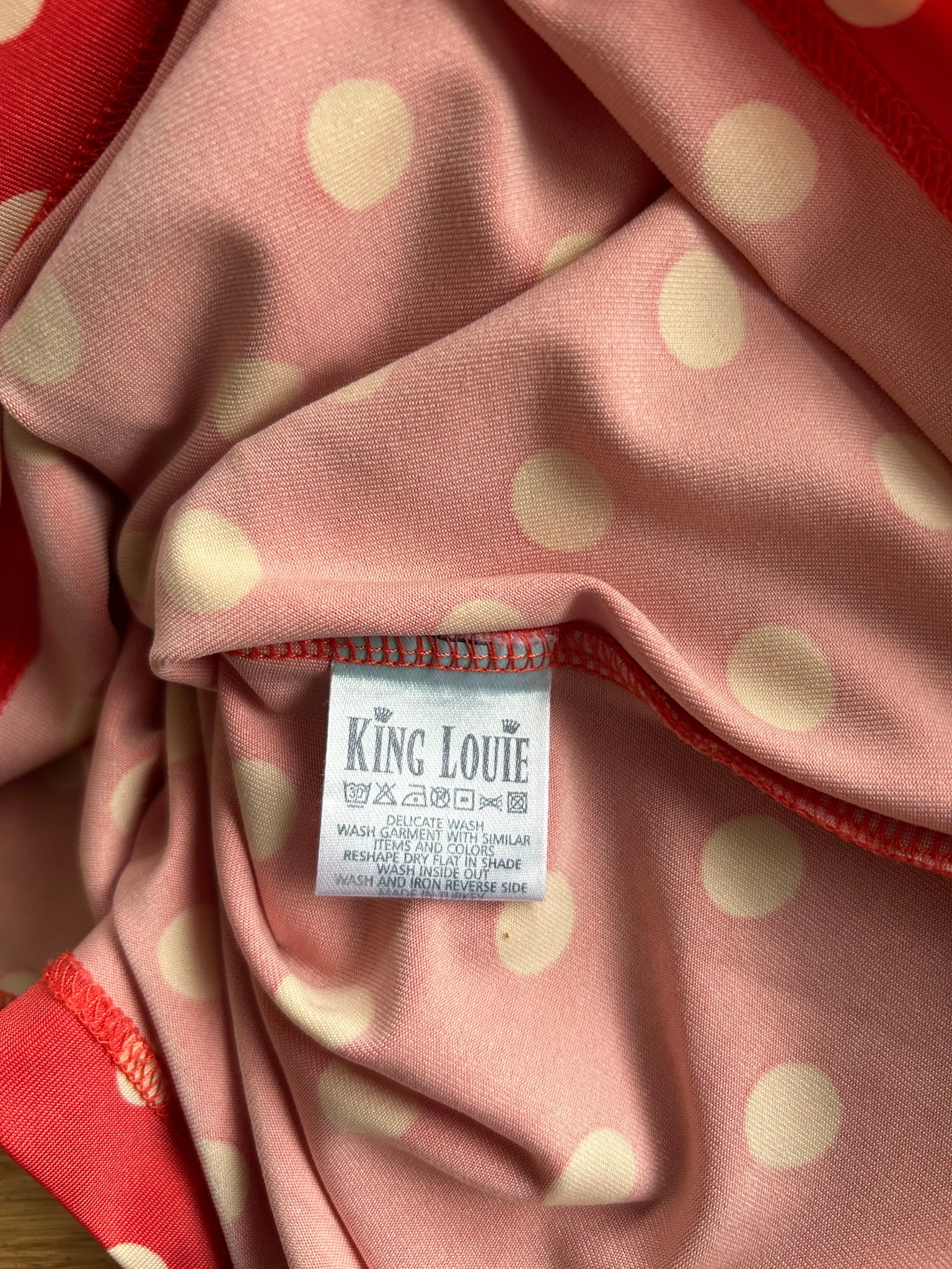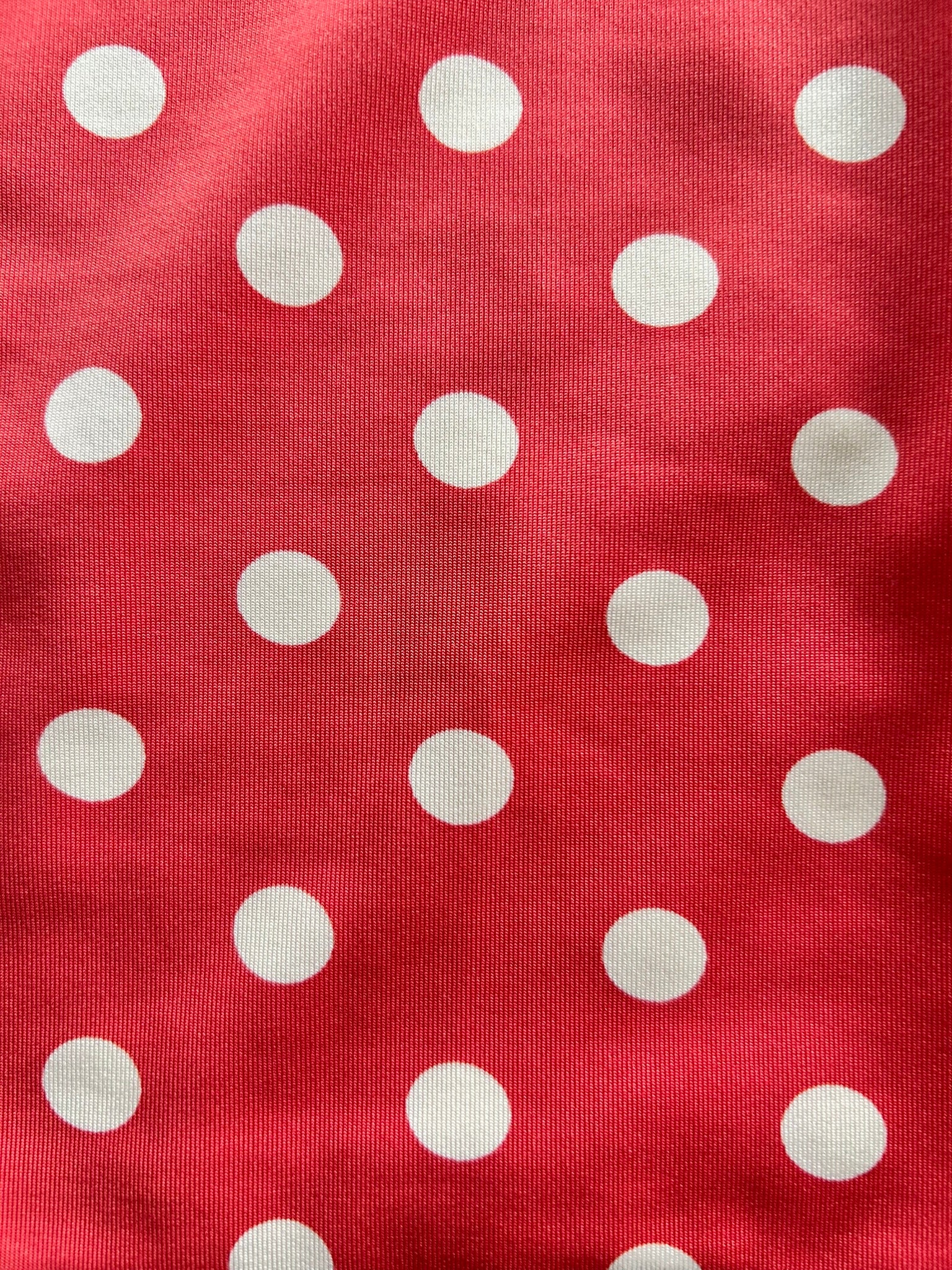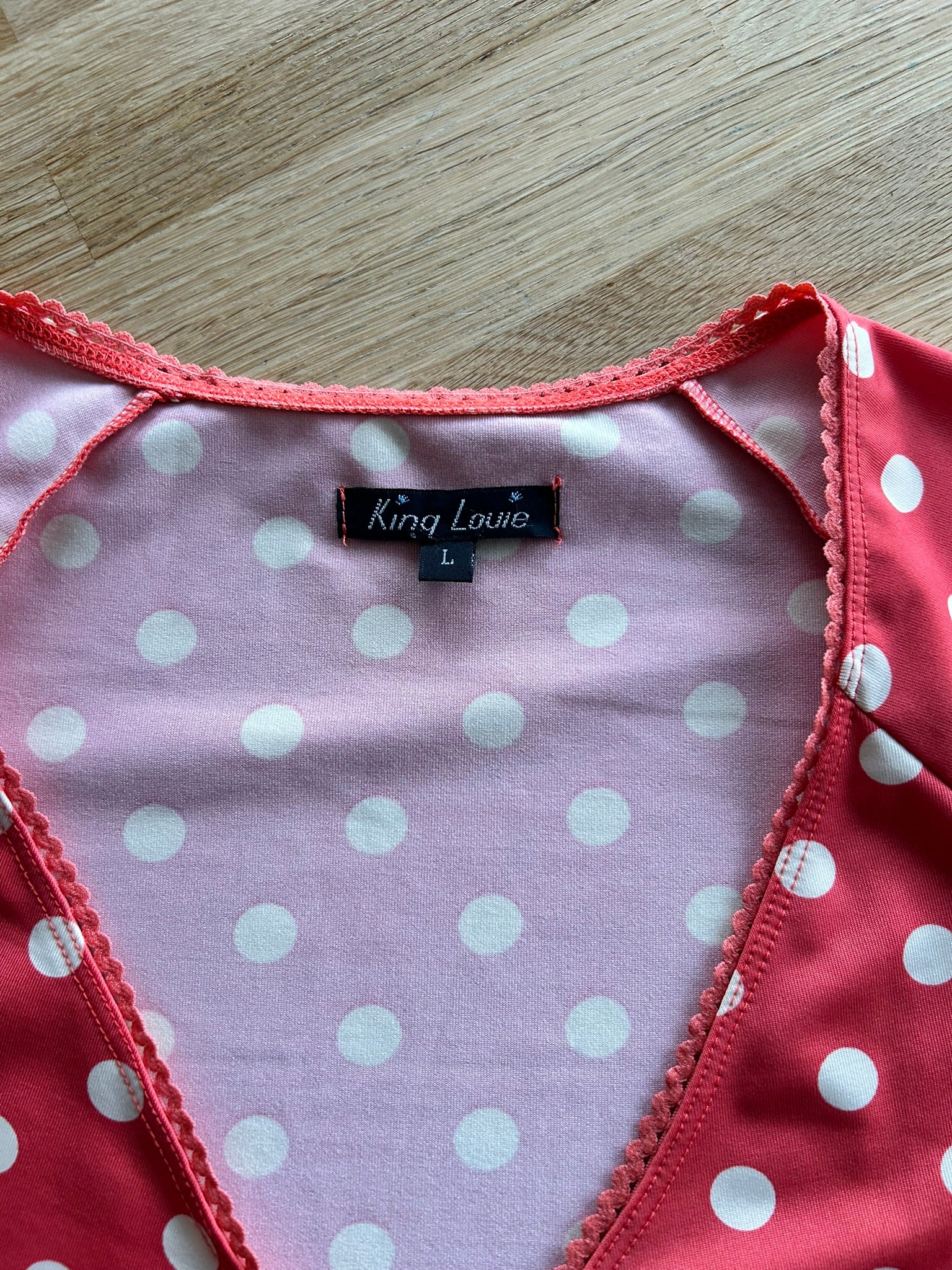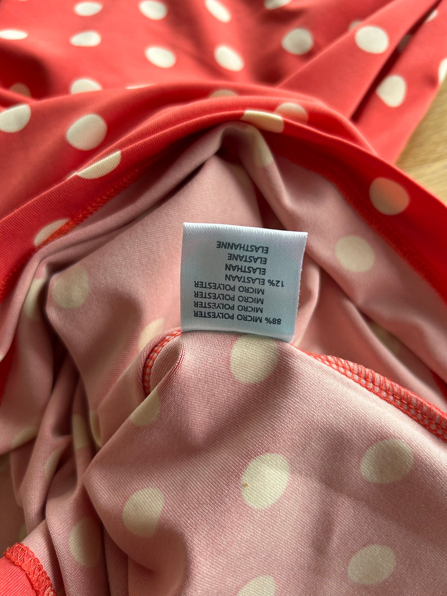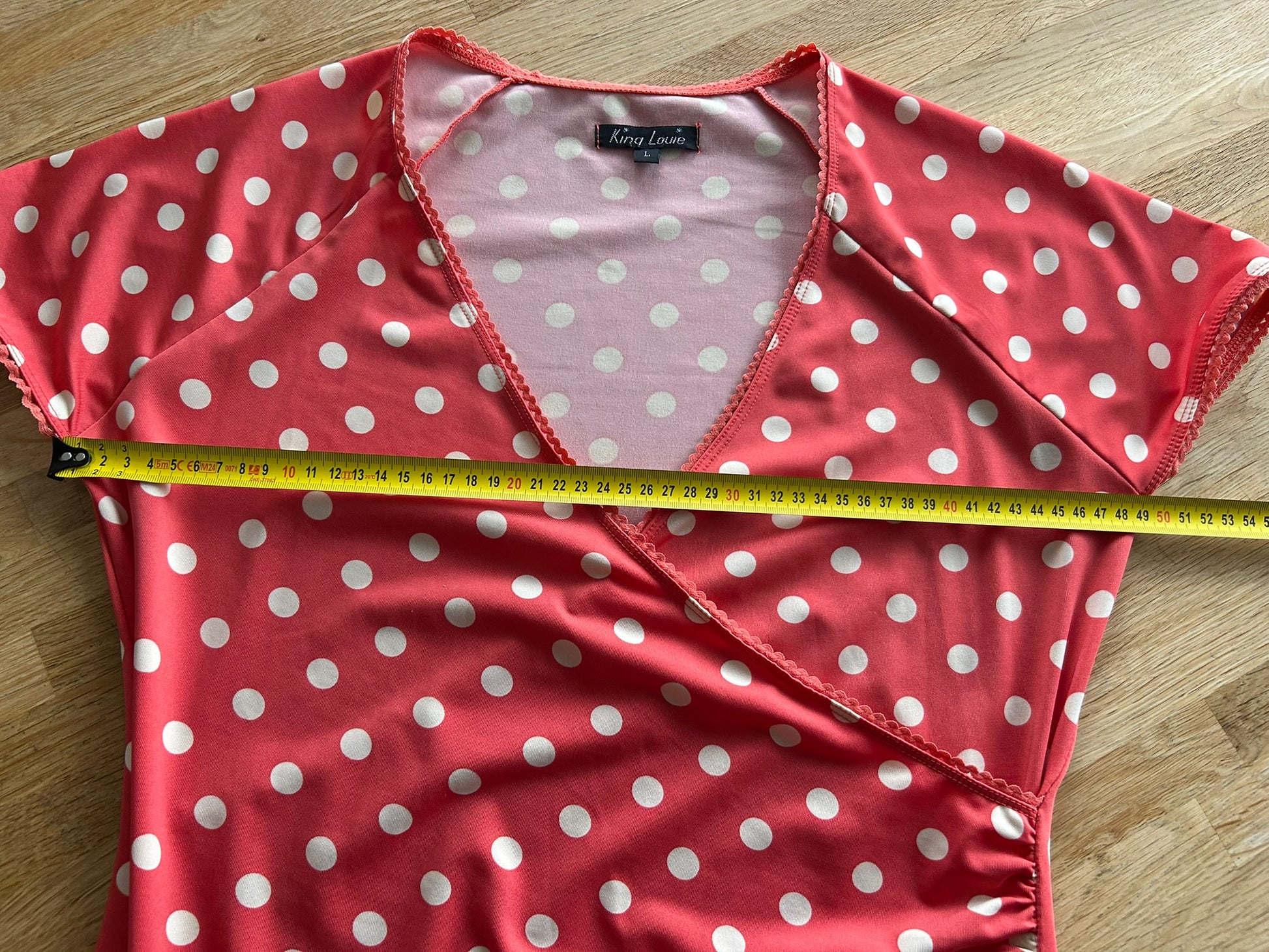 - Leuke retro jurk in koraal oranje-roze met witte polkadot/partypolka stippen print