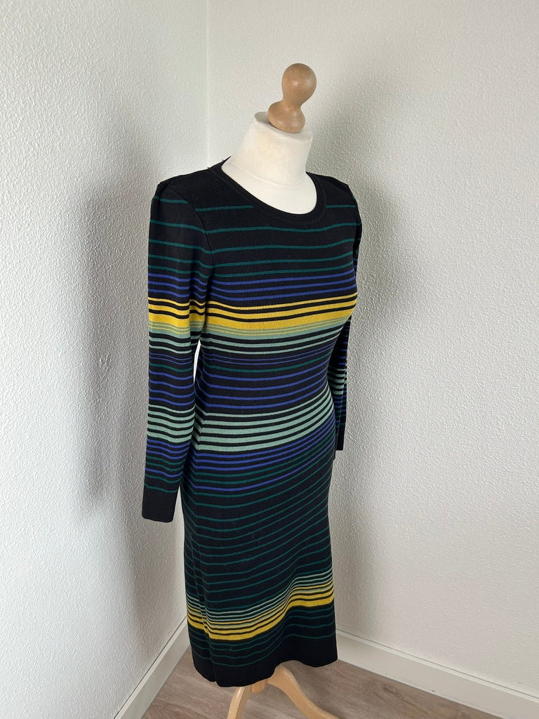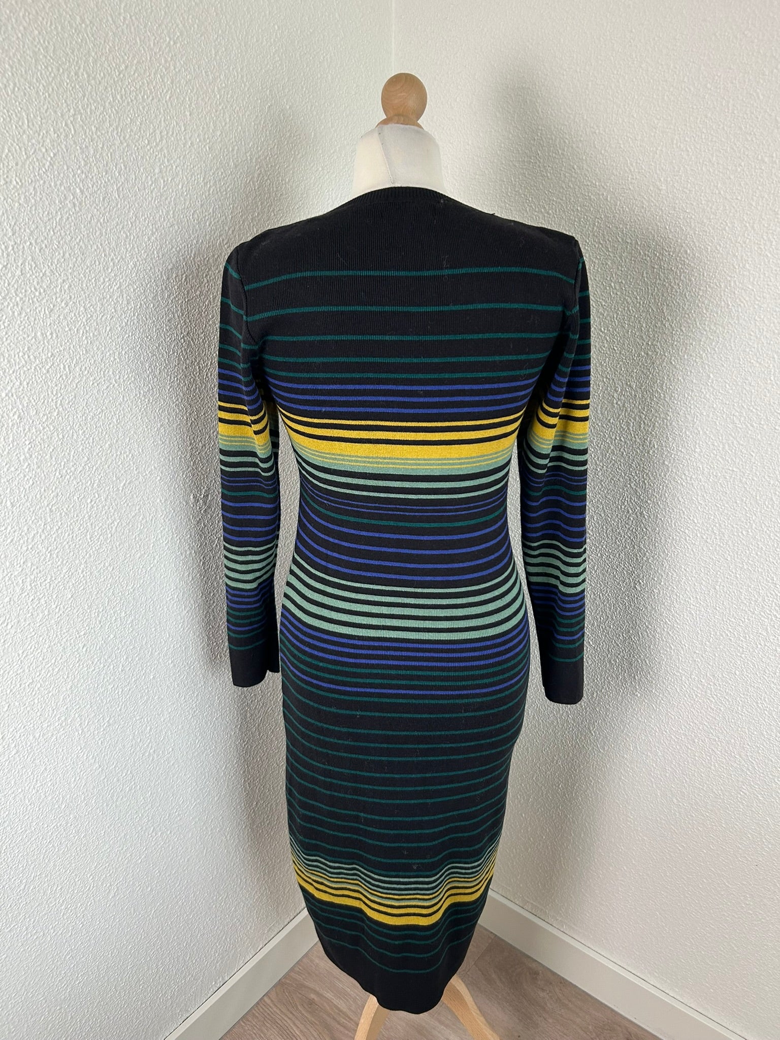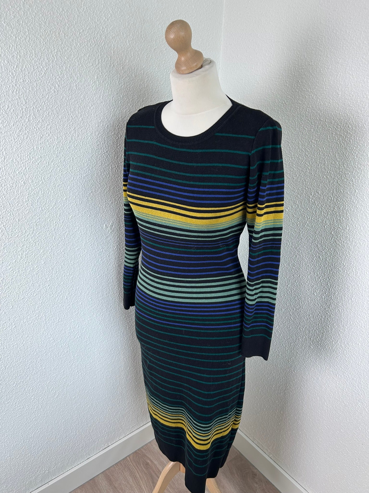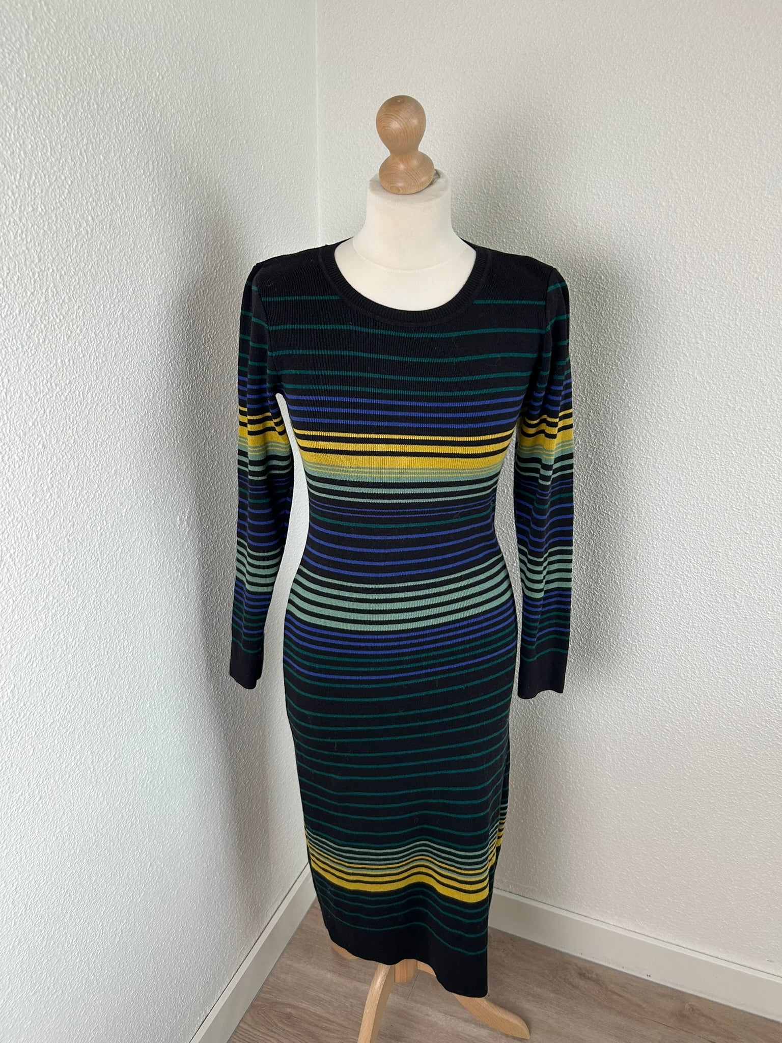 - Prachtige gestreepte jurk in zwart blauw wit geel en turquoise