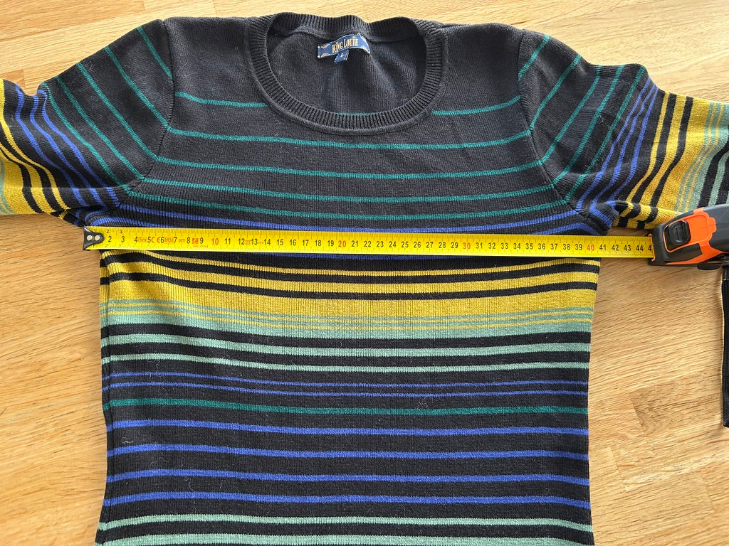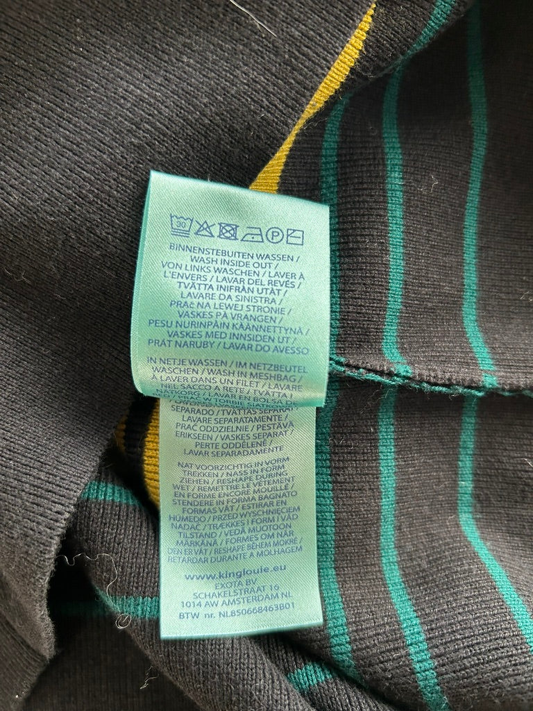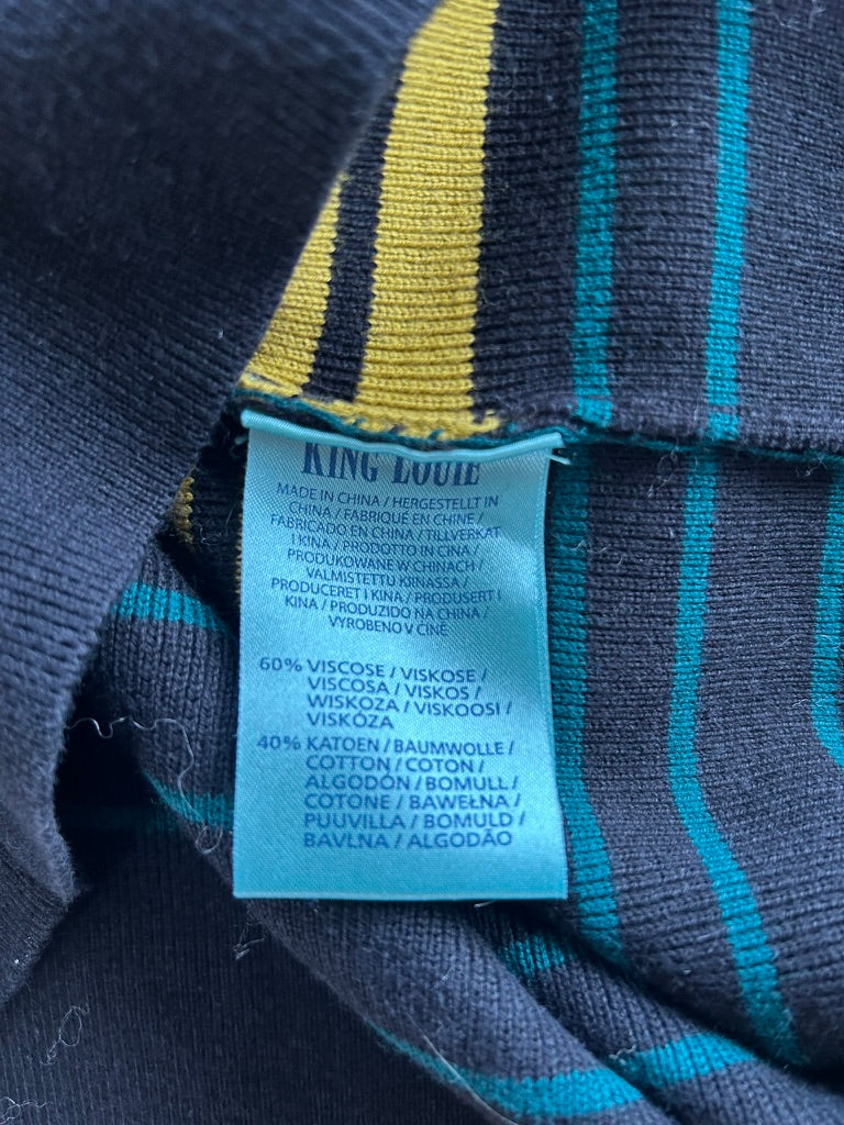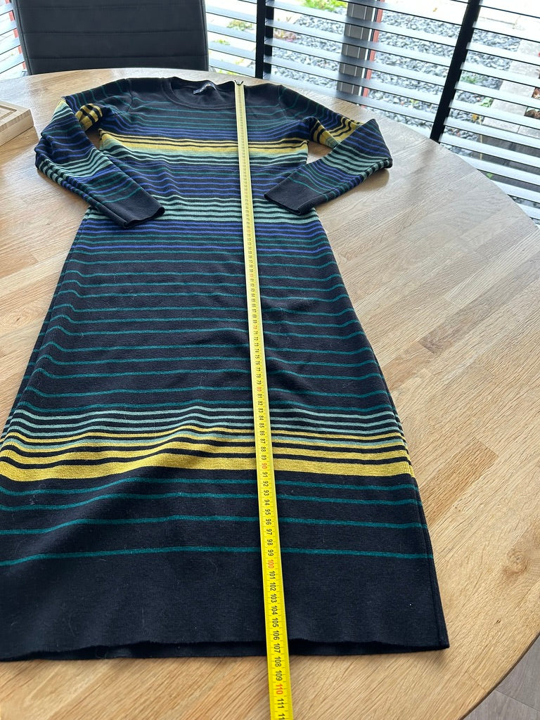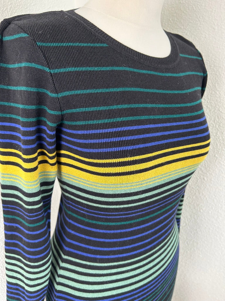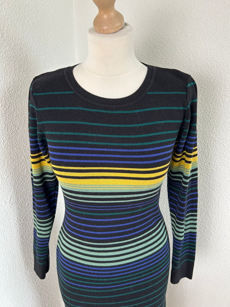 - Prachtige gestreepte jurk in zwart blauw wit geel en turquoise