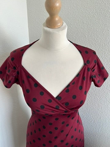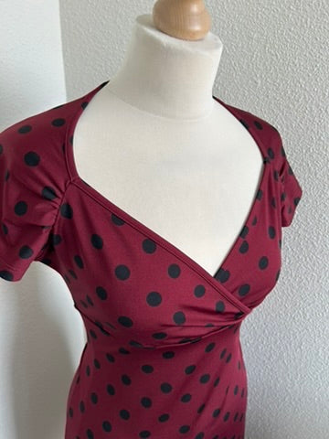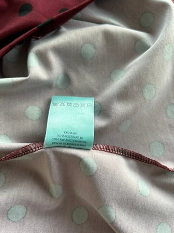 - Wijnrood, donkerrood met zwarte polkadot/partypolka/stippen print
