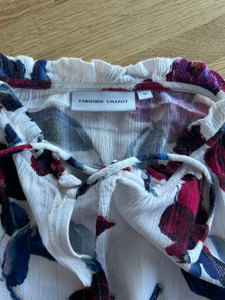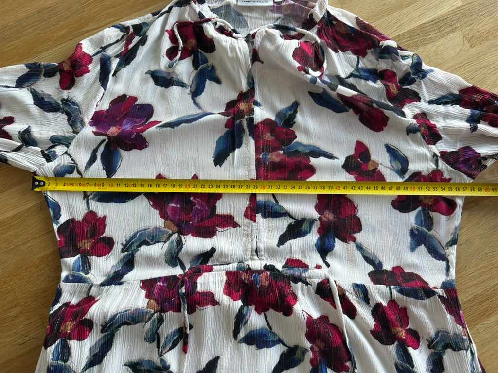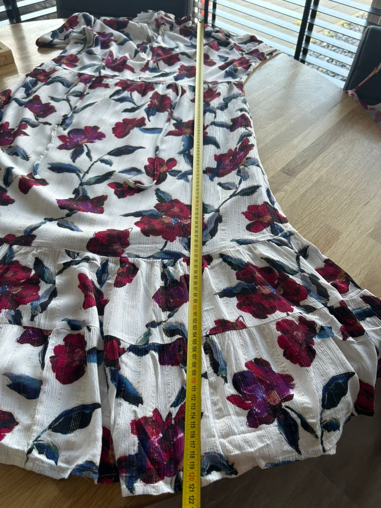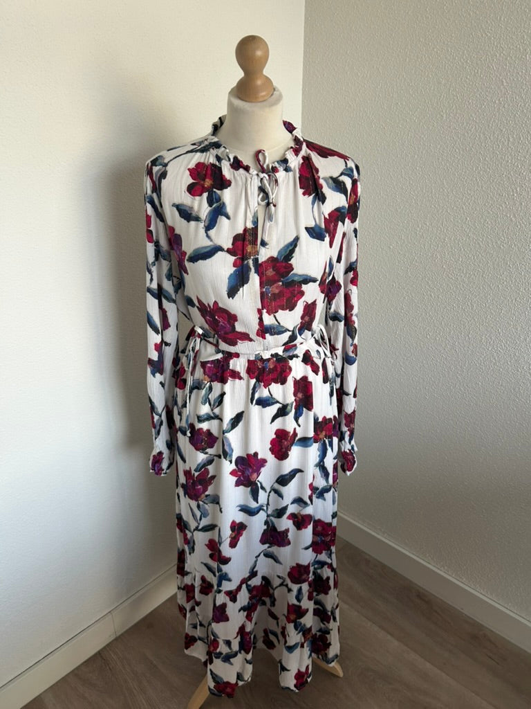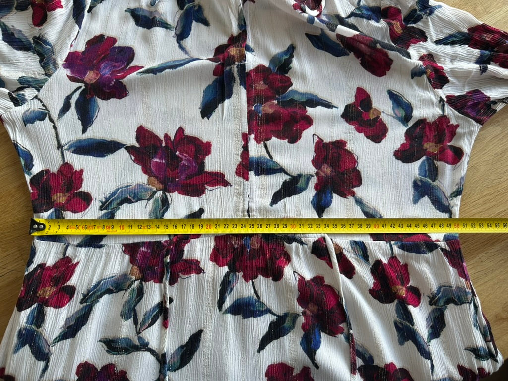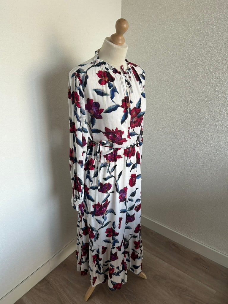 - Roze paarse wijnrode groene roze/bloemen print op witte achtergrond en subtiele gouden glitter in de stof