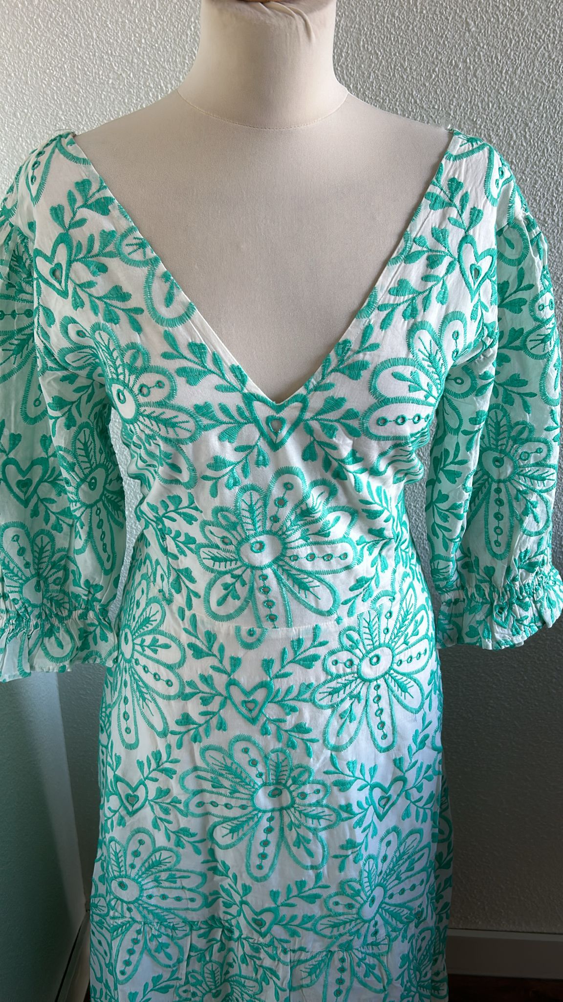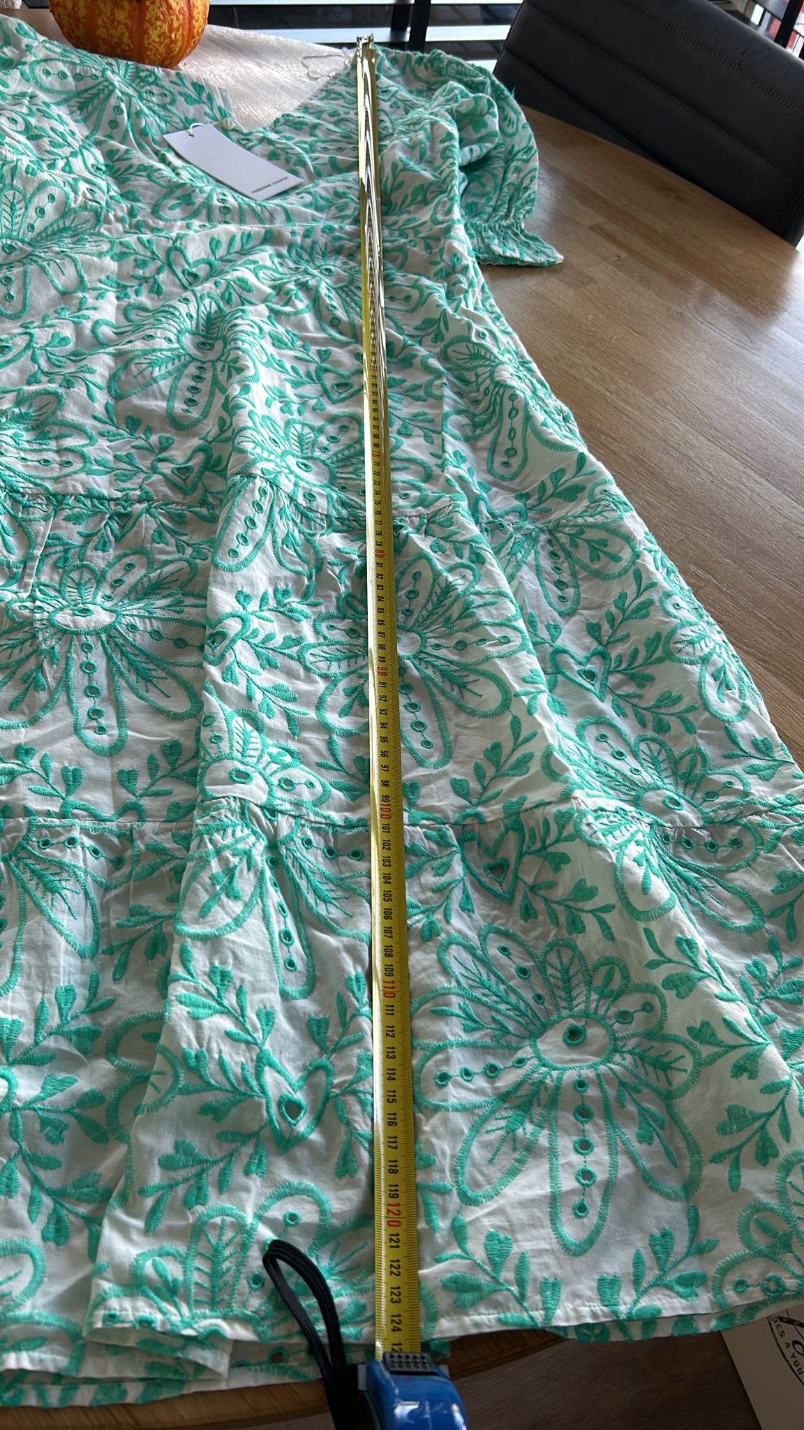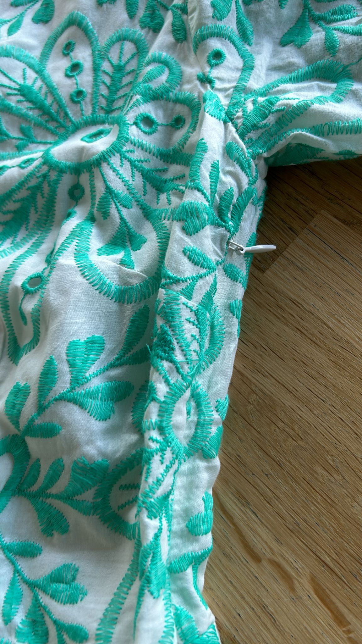 - Wit met turquoise blauw/ lichtblauwe geborduurde print