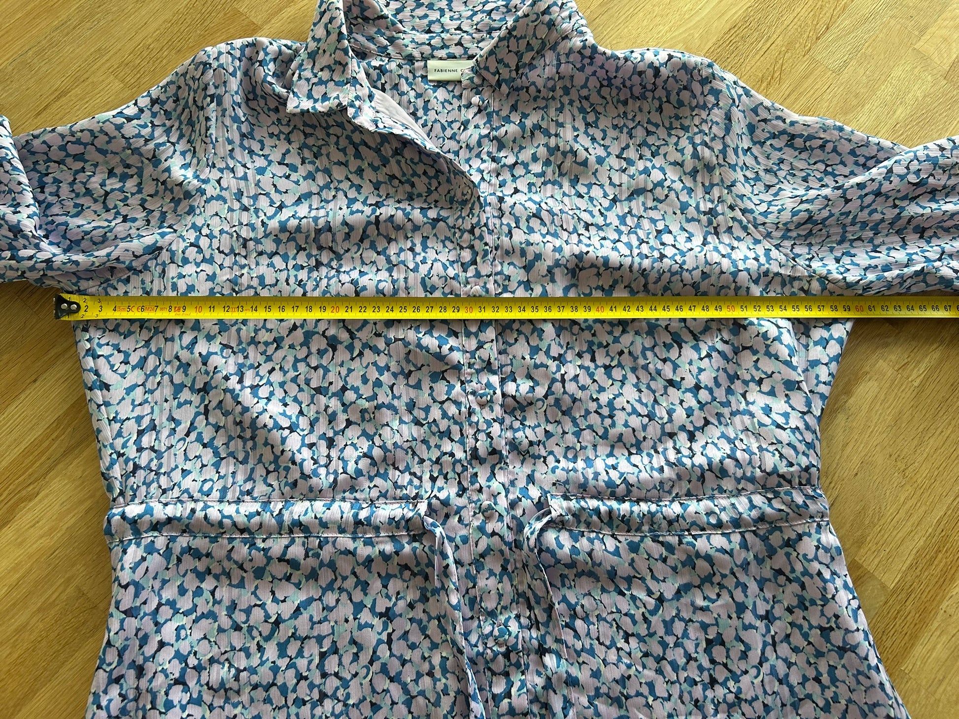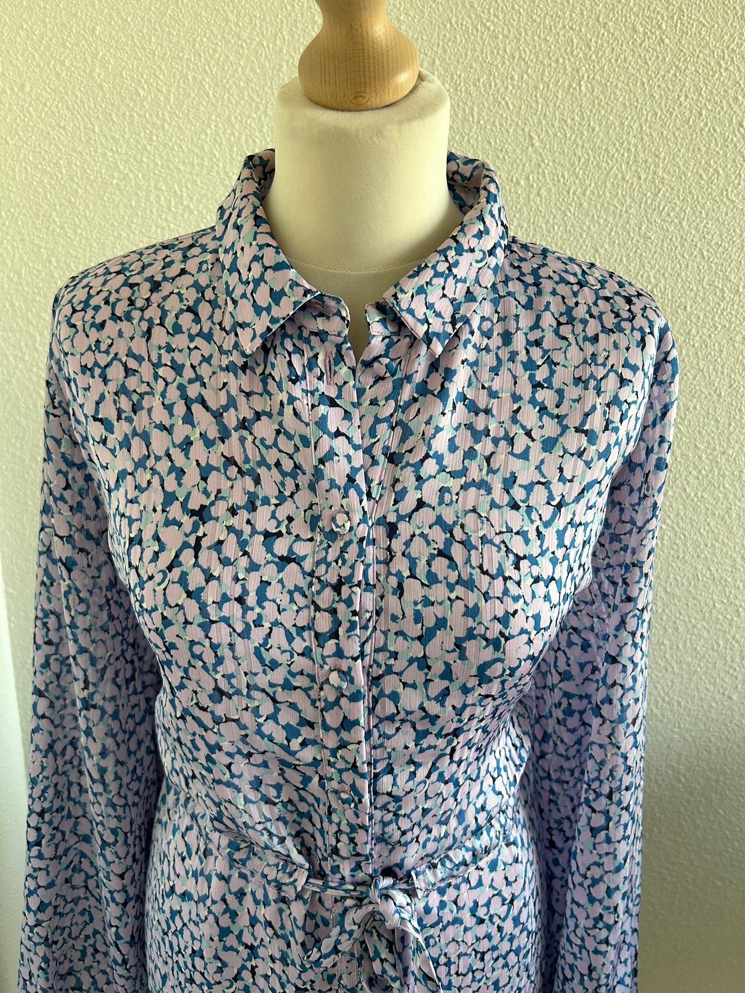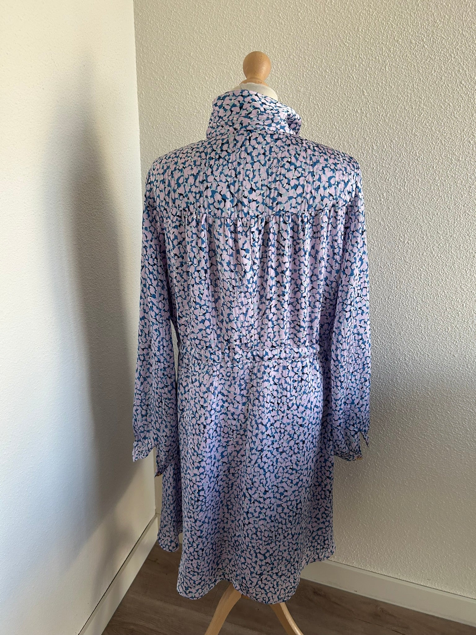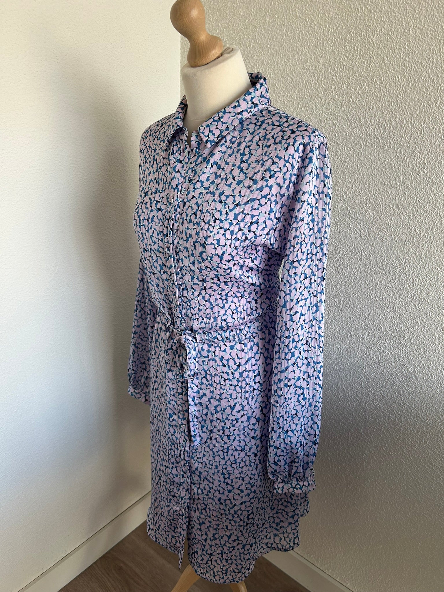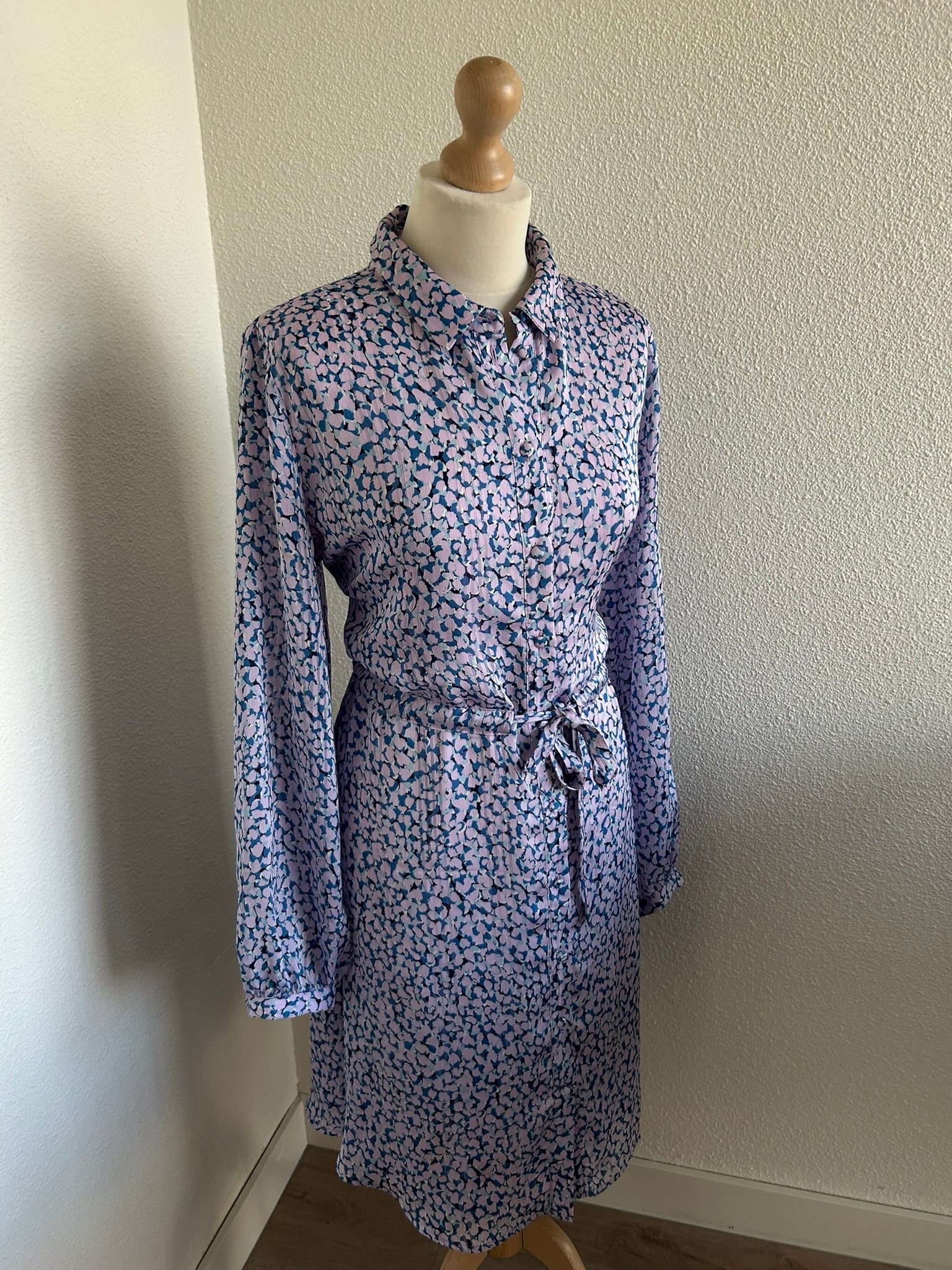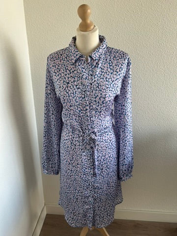 - Kraagje, lange mouwen, knoopjes tot onder, knooplint rond het middel, gouden details