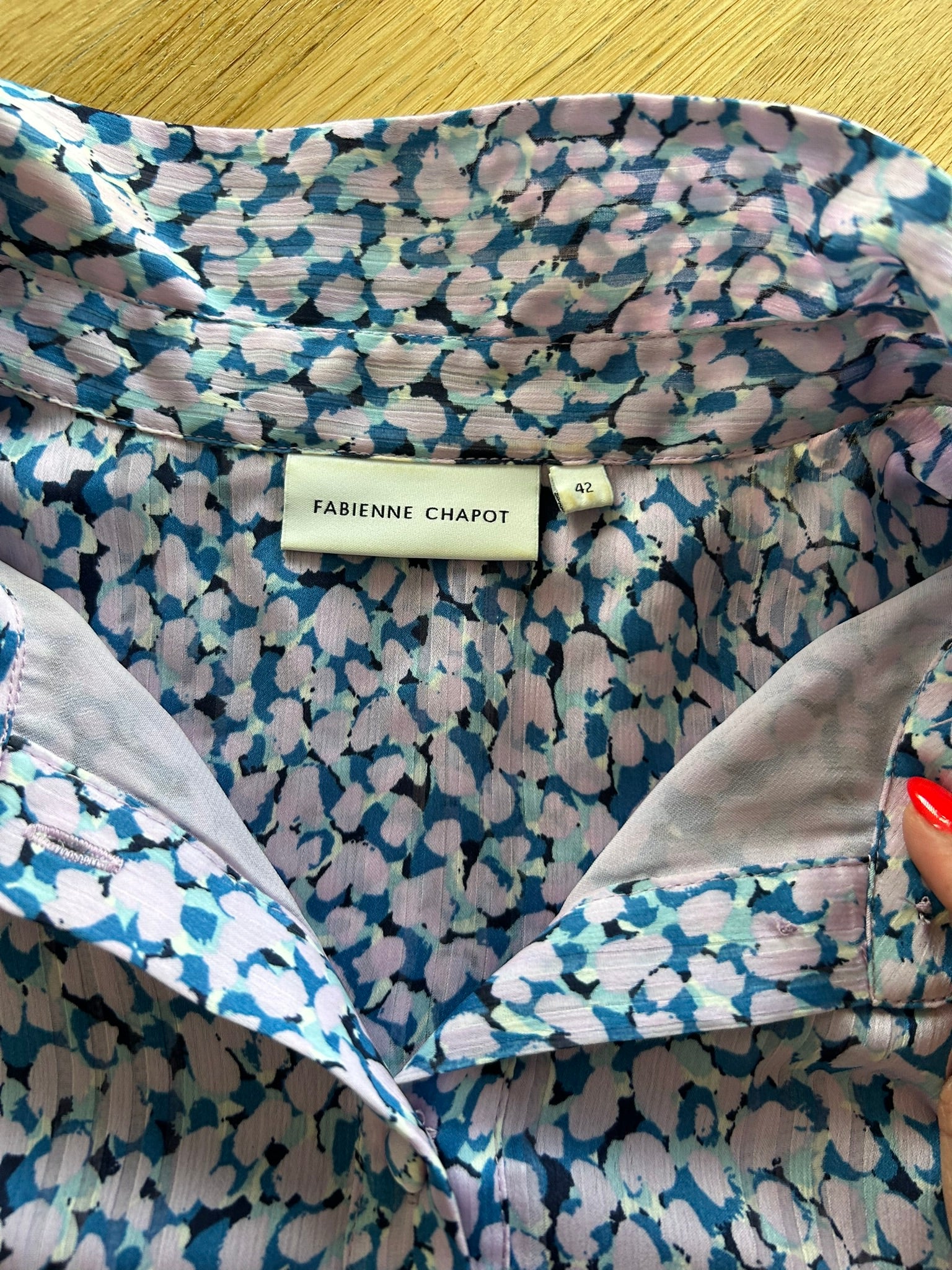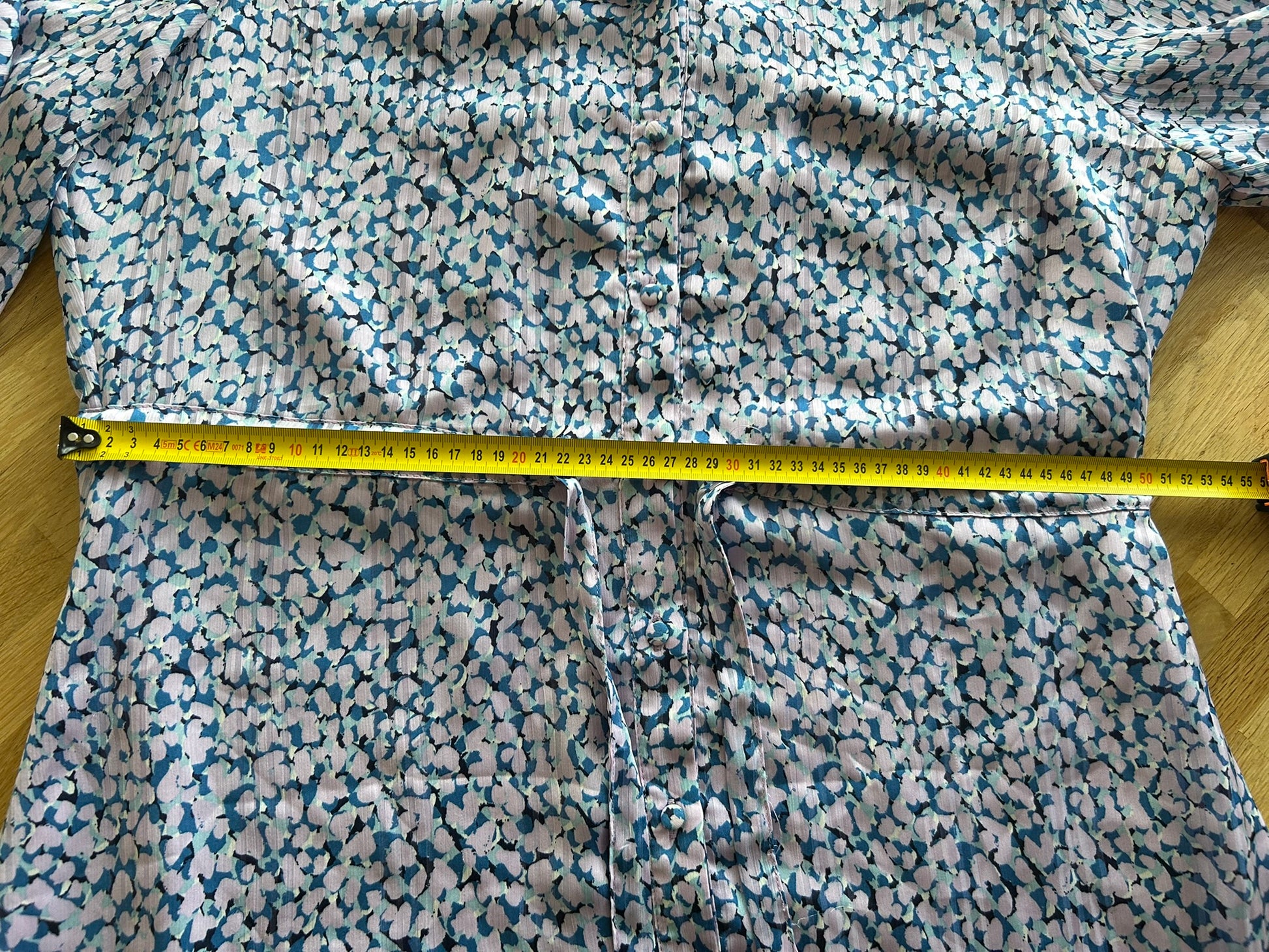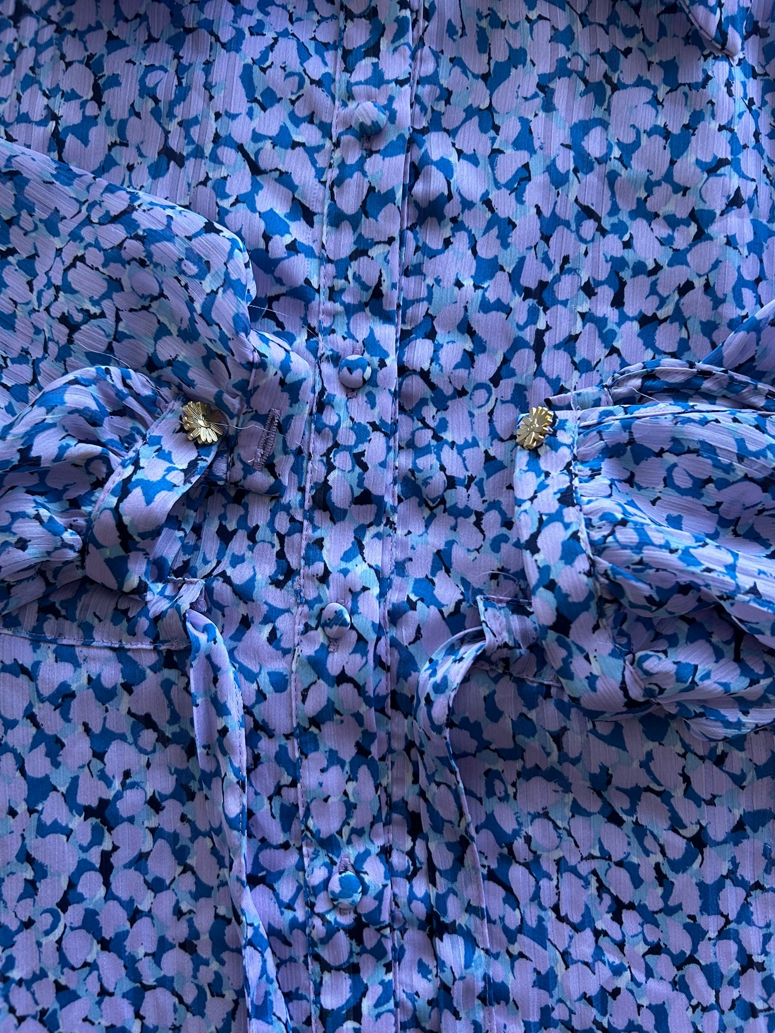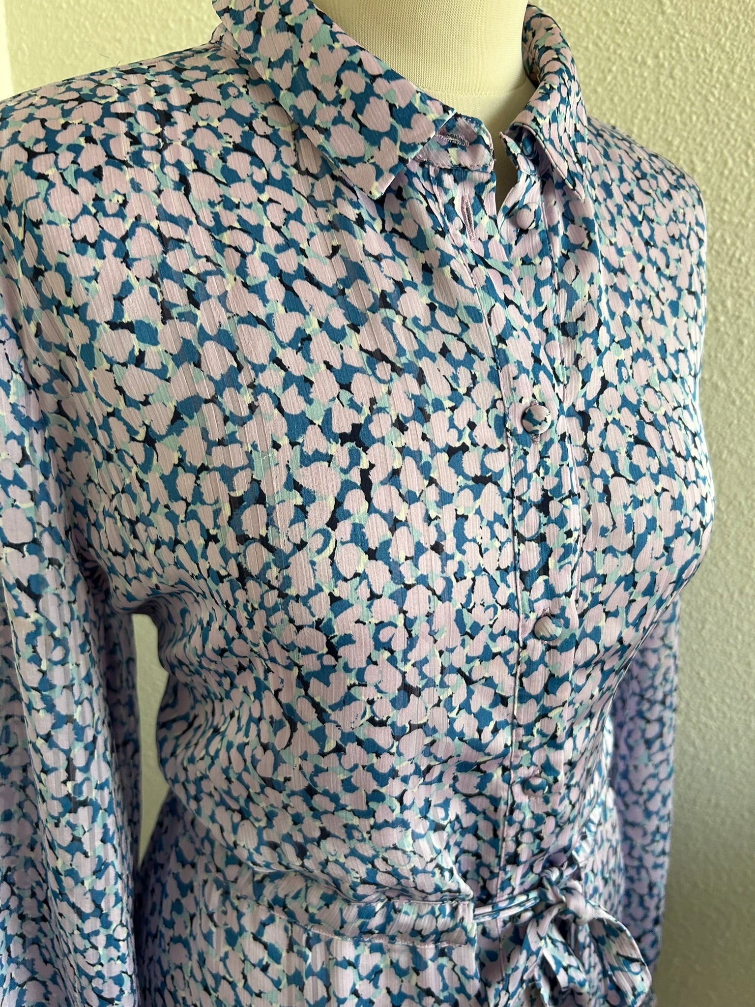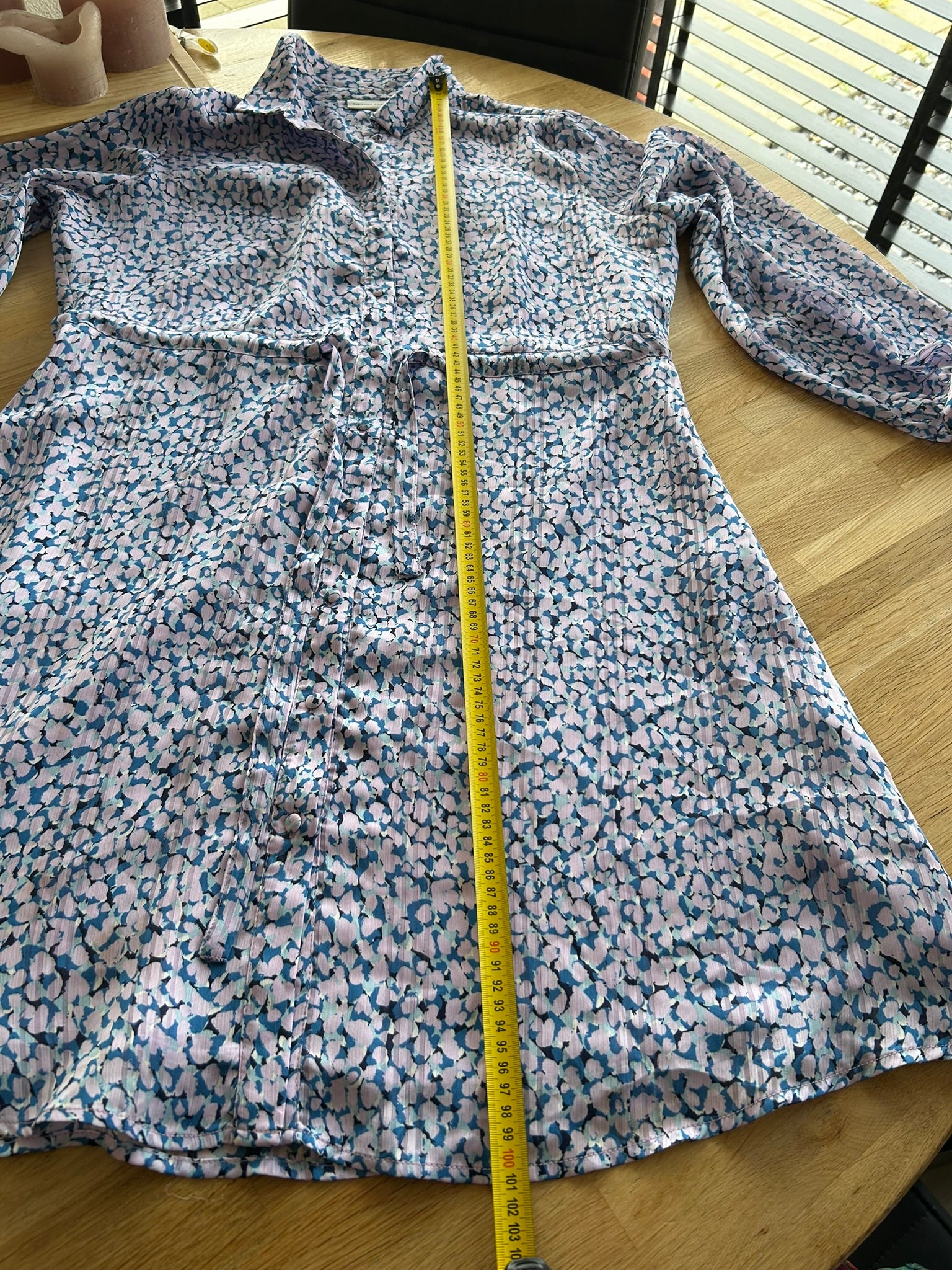 - Kraagje, lange mouwen, knoopjes tot onder, knooplint rond het middel, gouden details