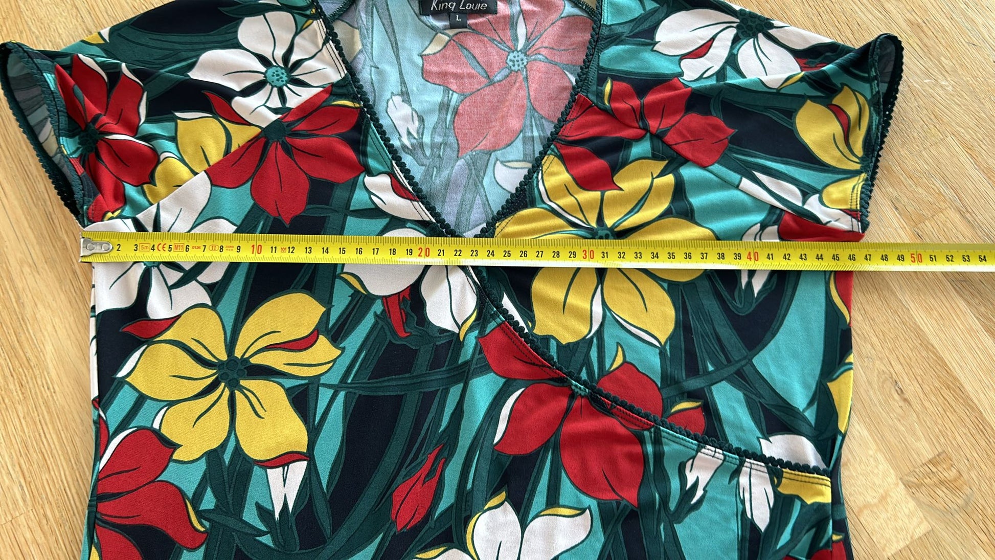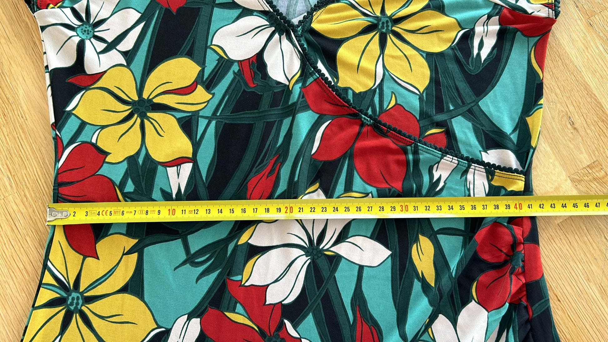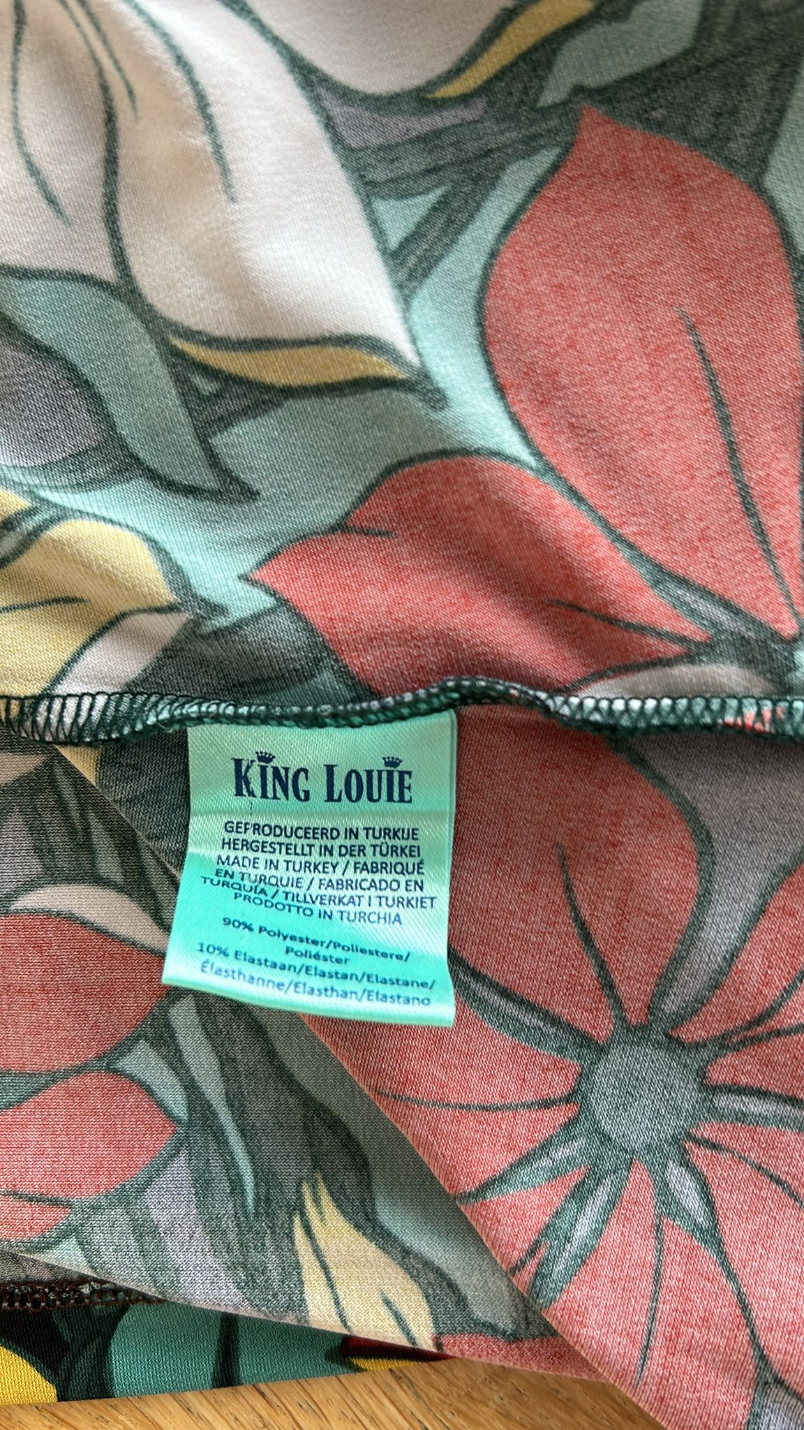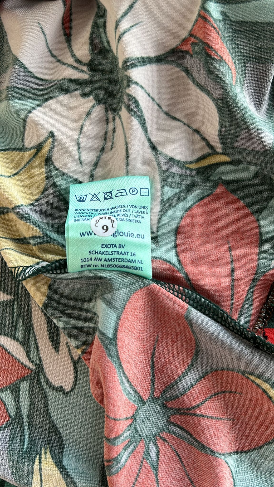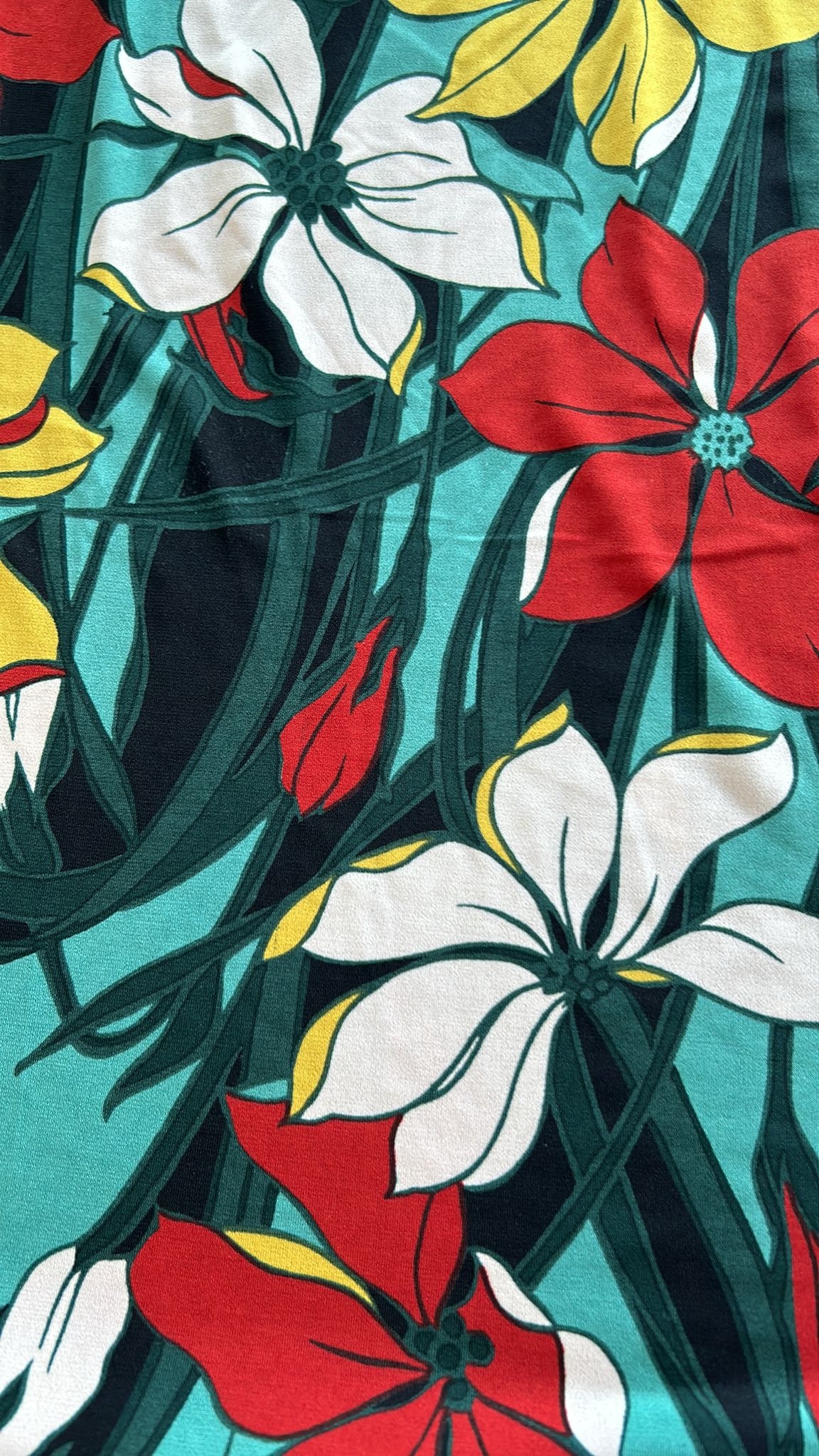 - Turquoise groen geel rood wit en zwarte bloemen print
