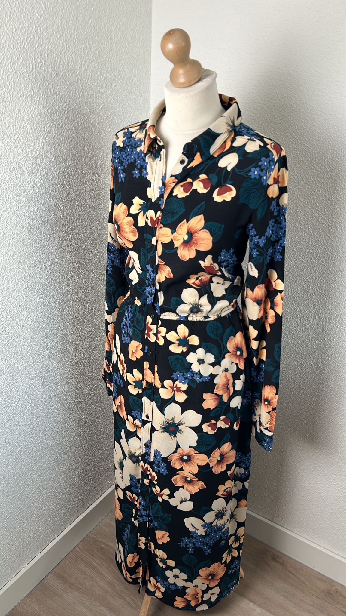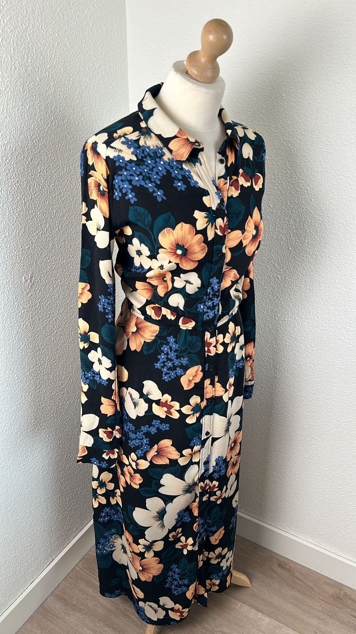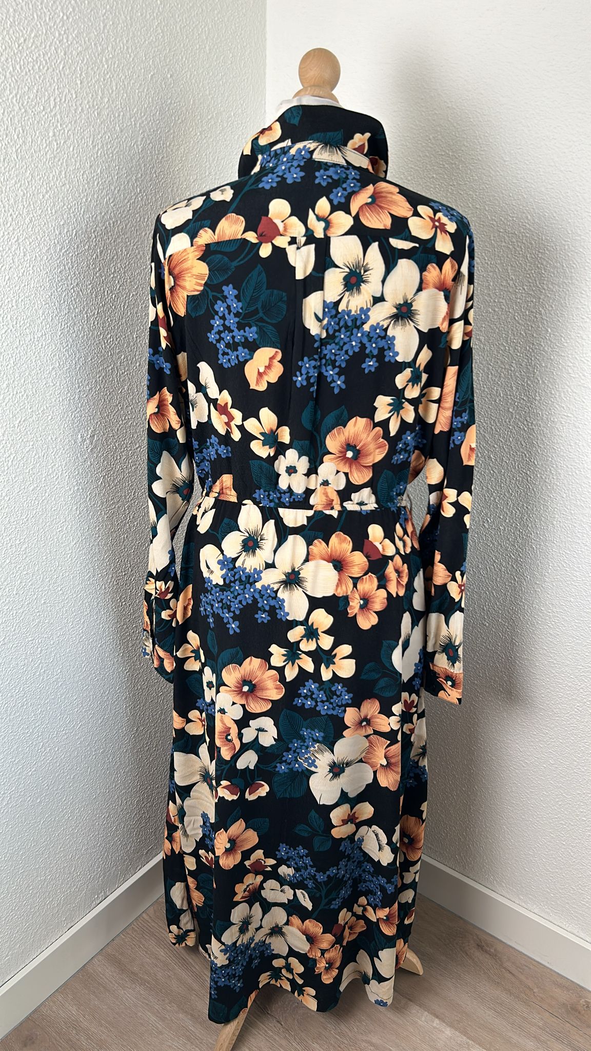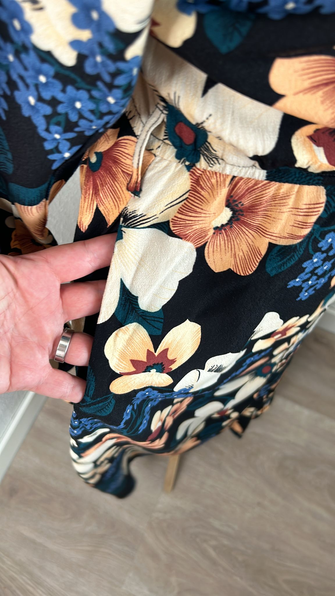 - Zwart met pastel bloemen print in creme beige oranje blauw geel